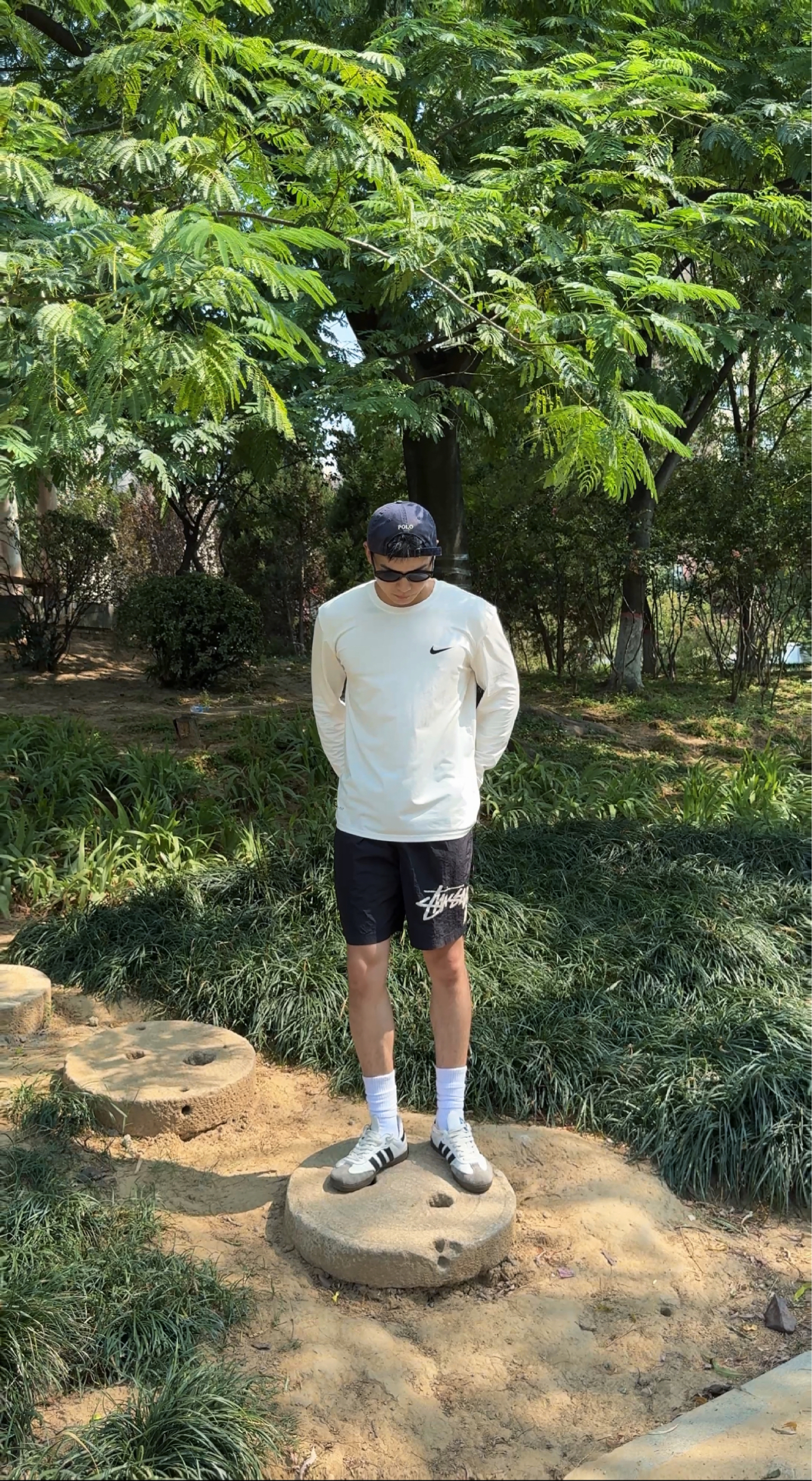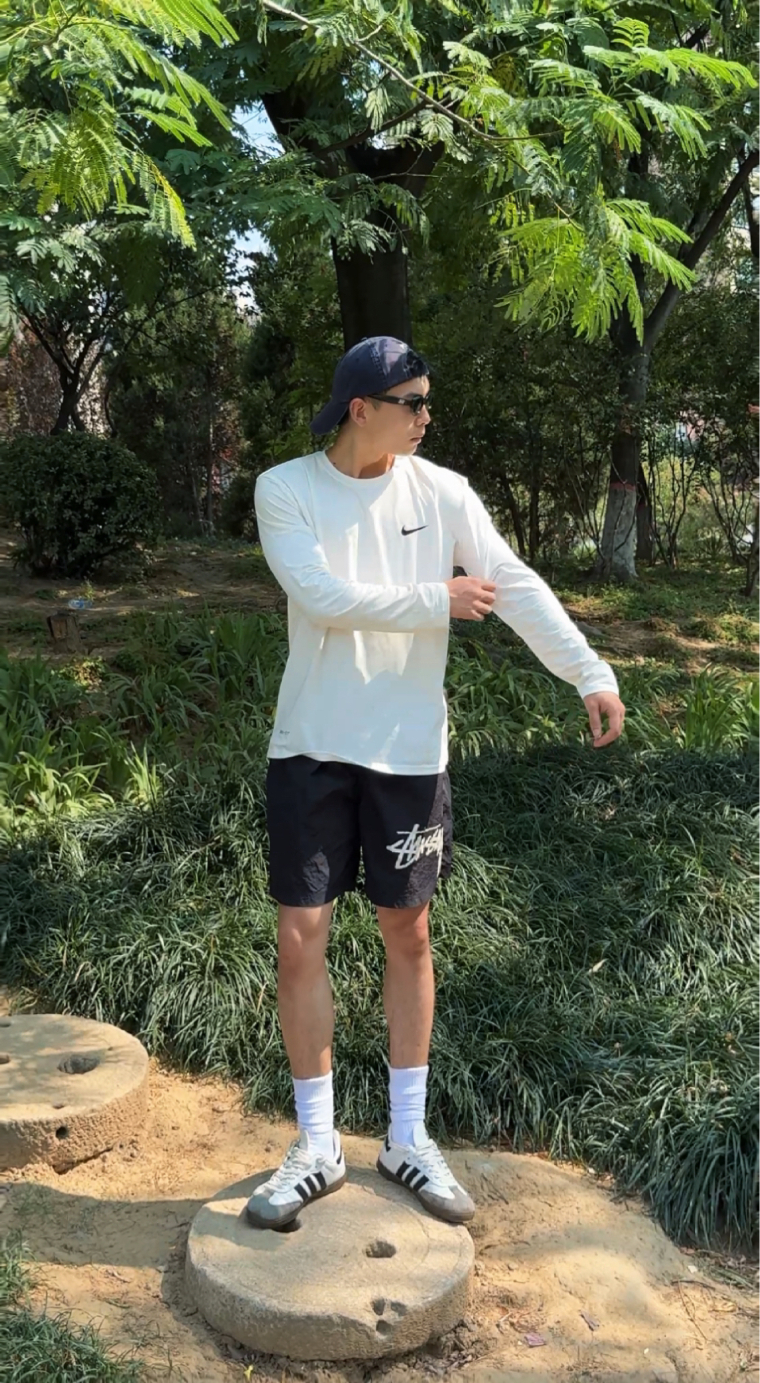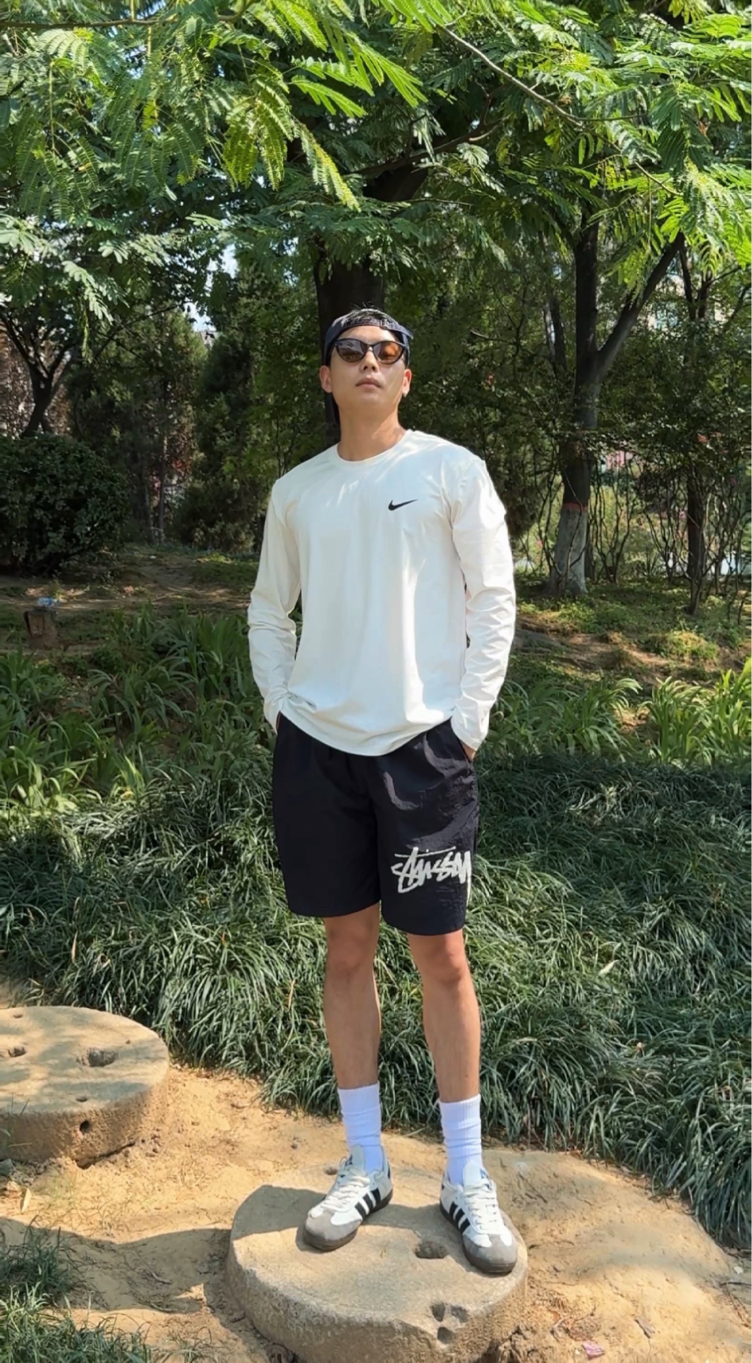 上衣👕: Nike 国际运动品牌质量上不用多说,打球穿🏀出汗也不贴身,好想是Dri-FIT技术,速干透气绝对没话说。去健身有氧都适合,版型正常。根据自己的喜好拍,我是想平常也可以穿就买了个大一号不是紧身的,没想到拍照也挺好看,实现了运动功能与日常穿搭的兼顾。 裤子👖: Nike 耐克和 Stussy 联名,速干的材质,附属美式小短裤。穿上身不贴身,超级凉快🔥