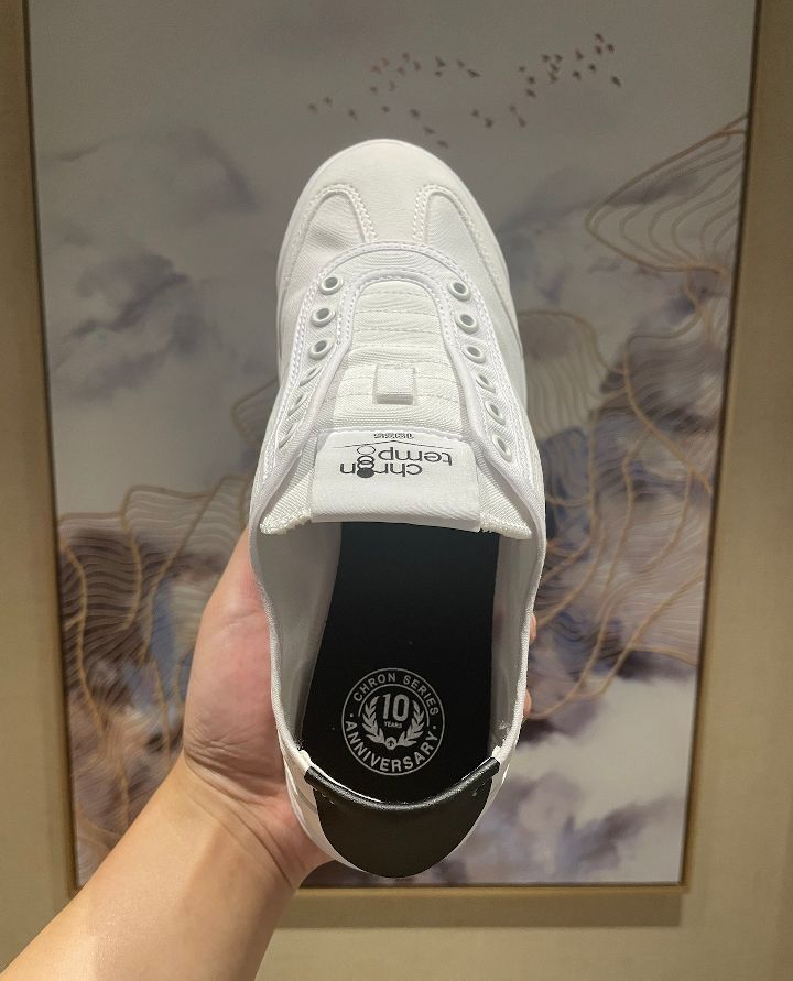 1. 穿脱便捷:一脚蹬设计,不用繁琐系鞋带,抬脚即走,早上出门更从容。 2. 防滑出色:鞋底采用特殊纹路与材质,抓地力强,湿滑地面也能稳步前行。 3. 耐磨耐穿:优质鞋底经特殊处理,耐磨性能佳,能陪伴你走过漫长时光。 4. 舒适脚感:鞋面材质柔软亲肤,鞋垫提供良好支撑,久走不累。 5. 时尚百搭:低帮板鞋搭配白黑经典配色,男女同款,适配各种穿搭风格