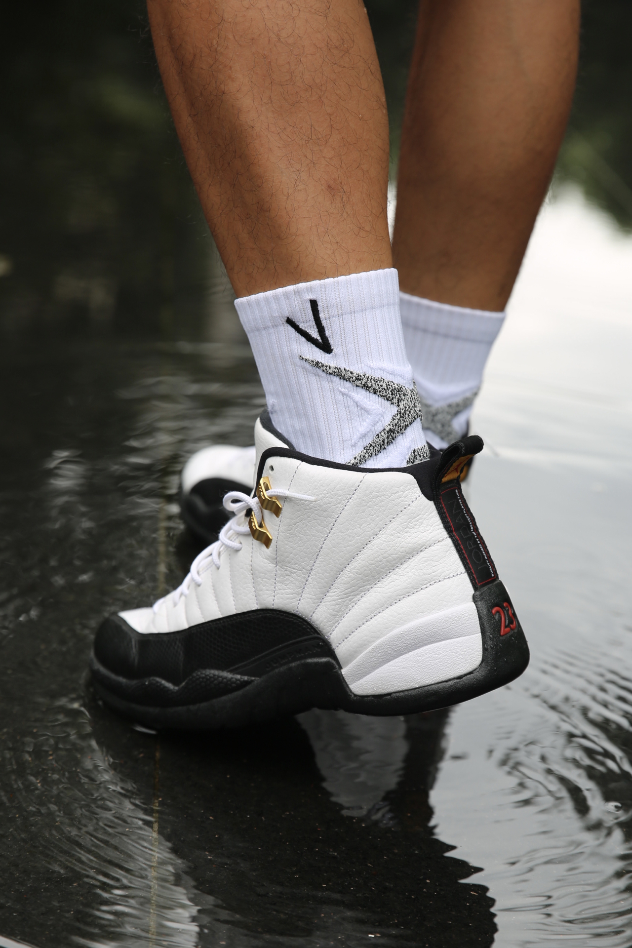 今天上脚的是 AJ12 Taxi,袜子选了 VEIDOORN 闪星 Pro 系列来搭配。 整体穿着体验挺不错的,脚踝部分有加厚设计,提供一定的支撑感;脚背区域用了透气面料,打久了也不会觉得闷热。脚底是偏厚的毛巾底结构,缓冲感明显,下方还有防滑纱,跑动时更稳,不容易打滑。 后跟位置还有个 “X” 字样的小细节,简洁低调,属于实战和日常都适用的款式。 @维动VEIDOORN #经典球鞋不退场 ...