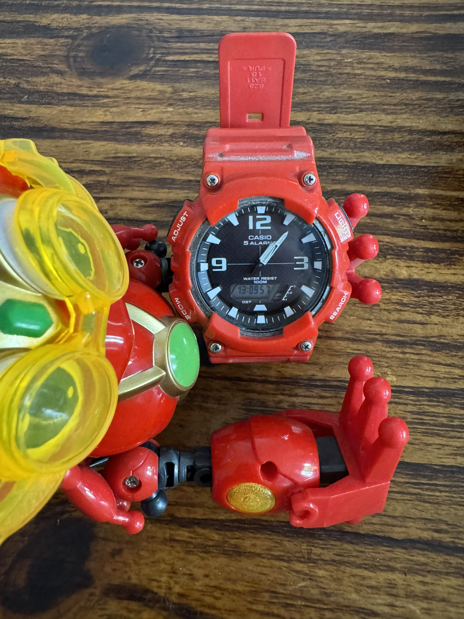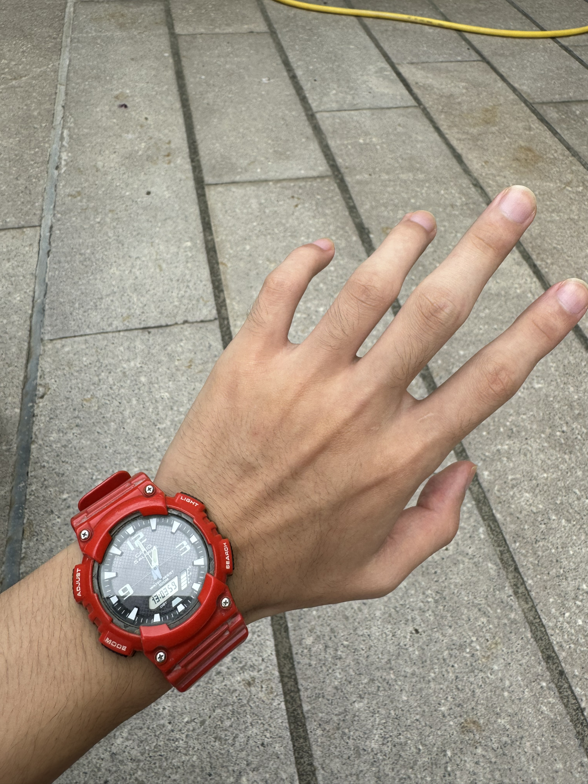 这个卡西欧也陪了我好久 从初二到大一 外表颜色红红火火 非常的喜庆 功能:防震 防摔 倒计时 闹钟 年份 日历 灯光以及100m防水 太阳能电池 有太阳就能充电 非常适合带出去出街 红色比较引人注目 价格合适 学生党可以冲!!!