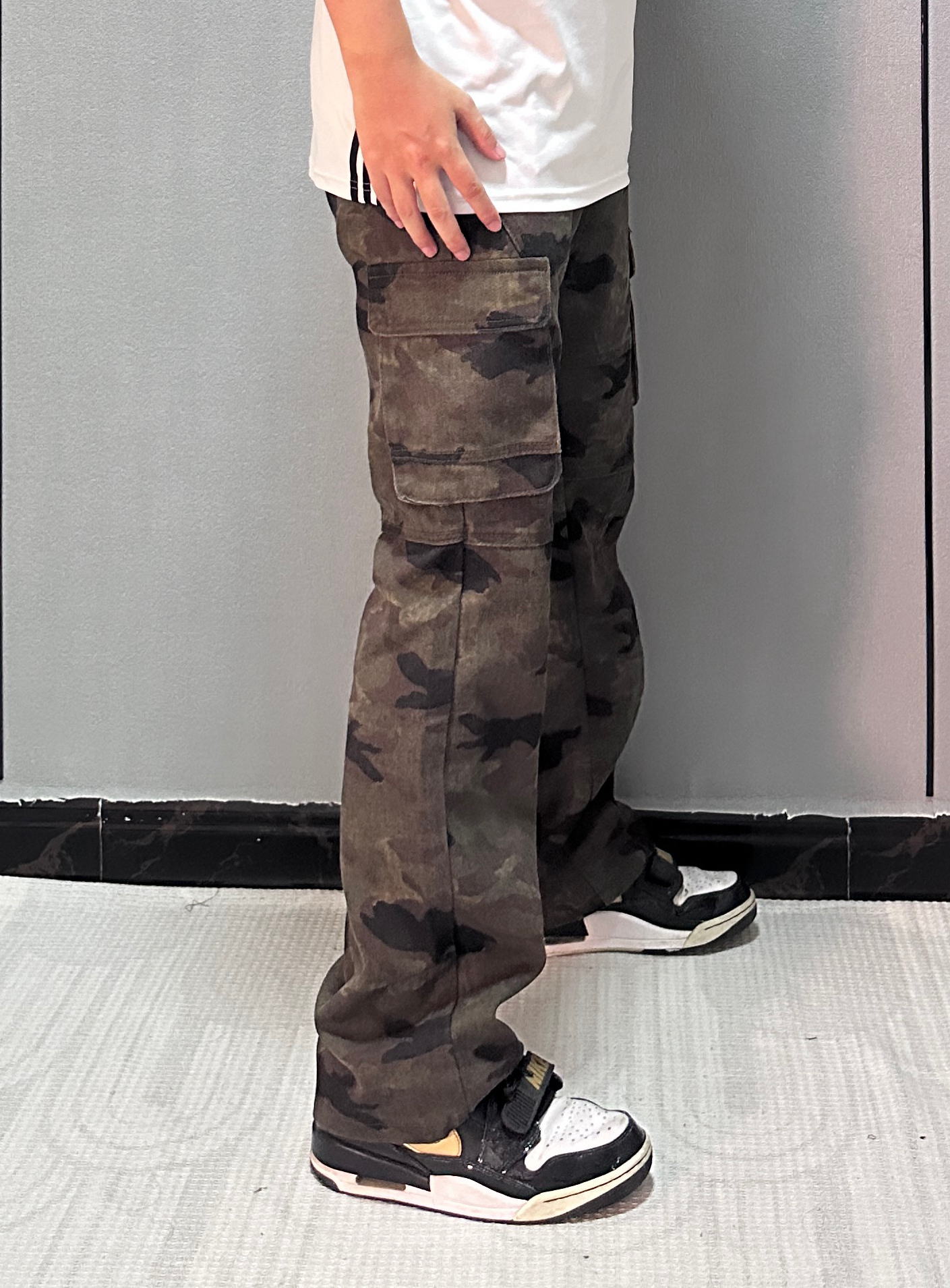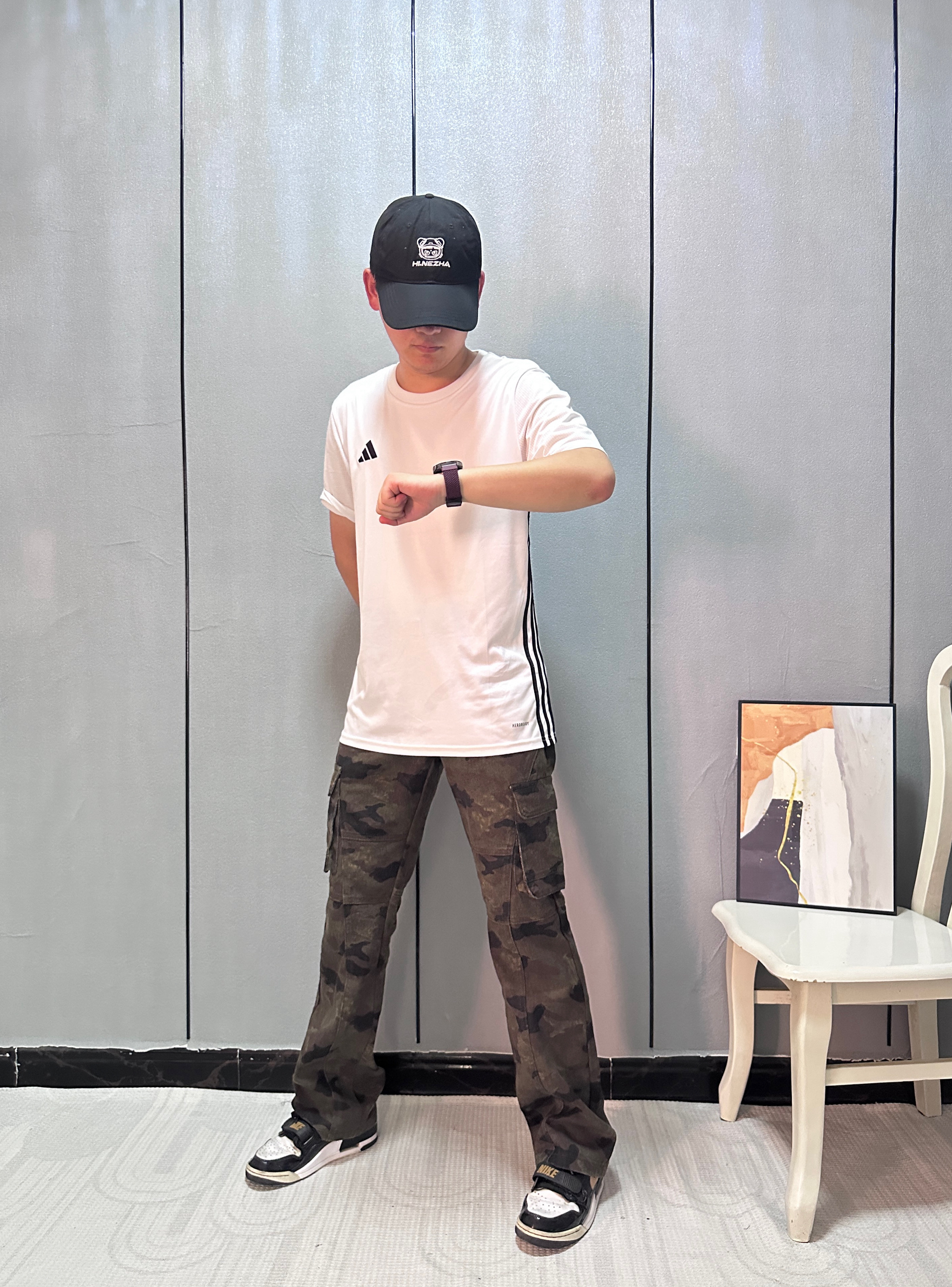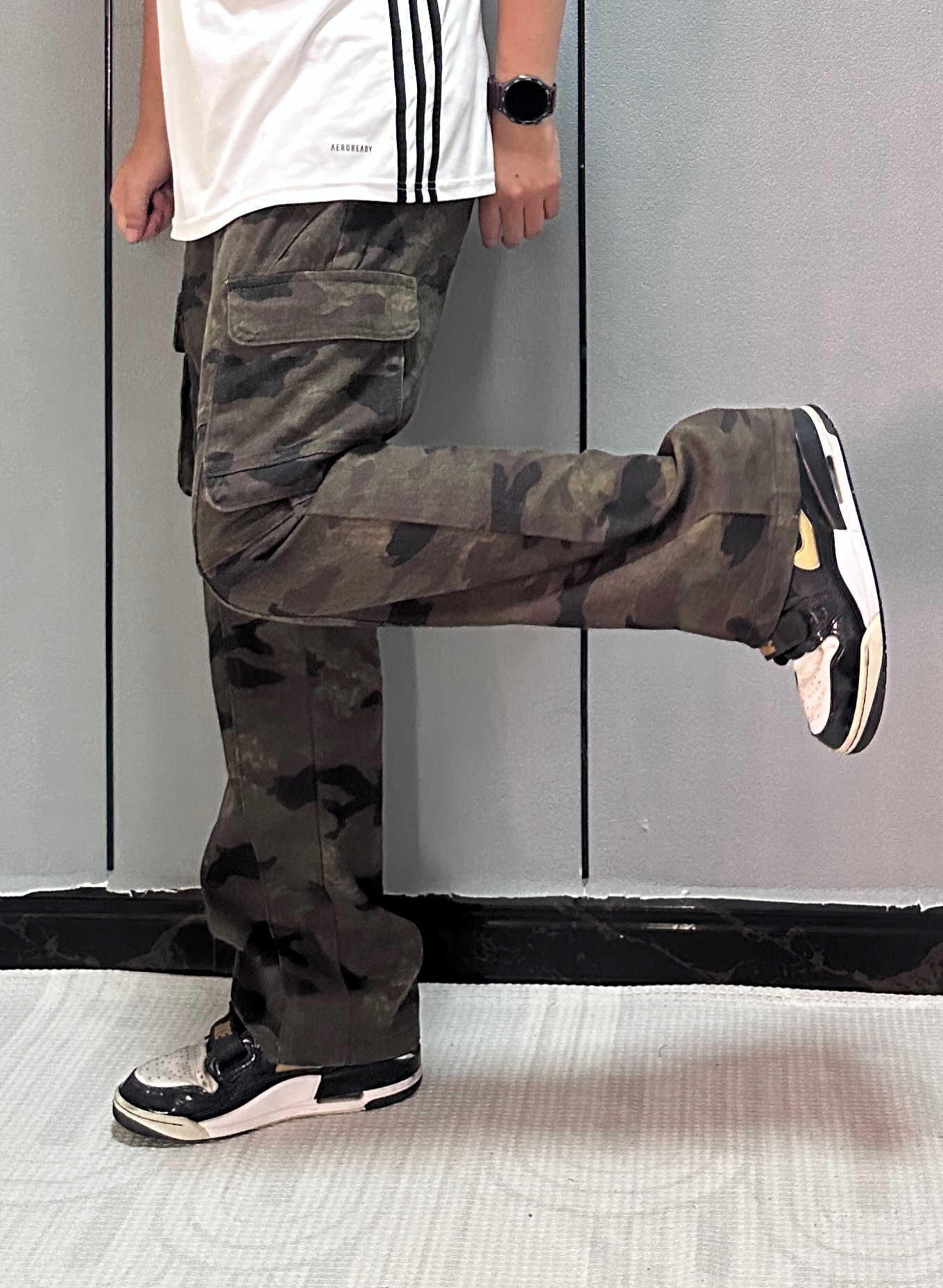 把迷彩伐木裤穿出高街感 秘诀在「松紧对冲」 选微阔版型遮胯显瘦, 裤脚卷两圈露出脚踝更利落。 上搭短款白T平衡厚重感, 不用堆太多配饰, 手上带块手表就够了 让迷彩成为视觉焦点, 随性中藏着小心思。