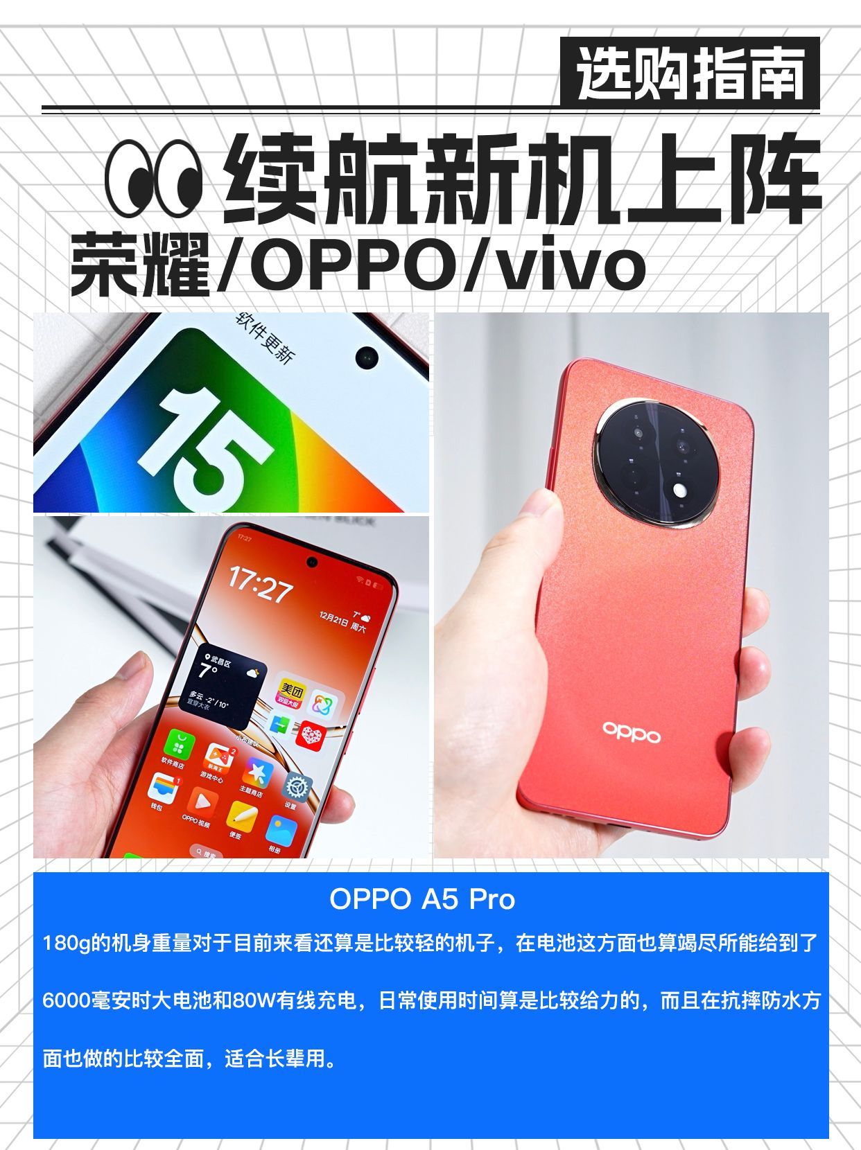 本篇笔记关联了OPPO A5 Pro 5G 手机 战神到来 五年耐用 满级防水2.0 全网通 拍照 耐严苛环境 信号穿墙王 抗摔 大电池 长续航 闪充 快充 双模 流畅芯 耐摔 砂岩紫、HONOR/荣耀 Power 5G 手机 曲面屏 轻时尚 户外拍摄 十面抗摔 大电池 超能续航 超清影像 自研 全网通 轻户外 大底 快充 长续航 耐用 超强信号接收 幻夜黑等商品,为用户提供真实的使用体验和购买参考。