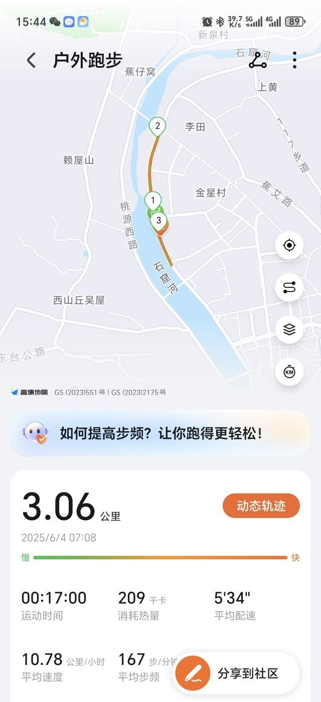 确实是爽翻了,跑了个6分配的3公里,本装备党跑渣在此。 昨天跑了个5分配的6公里,今天状态就有点拉胯,后面都没怎么跑下去了,就坚持了3公里多一点,2公里的时候就开始暴汗了,算了,就当今天是休息日吧... 有一说一,荣耀Fit各方面数据都还挺准的,步频、步幅、速度等等都算的比较准确,我自己还戴了一个华为WatchGT5一起跑的,数据基本保持一致。 而且,荣耀Fit同样能给出比较全面的分析,包括...