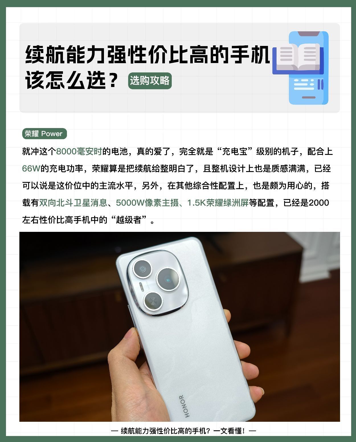 打算在母亲节给长辈换机的宝子可以看过来了,目前2K预算的机子里比较合适的,我觉得有以下三个,即荣耀Power、vivo Y300 Pro+、OPPO A5 Pro,都是目前续航能力强性价比高的手机系列,下面,我来说说选购建议! 荣耀Power,就冲这个8000毫安时的电池,真的爱了,完全就是“充电宝”级别的机子,配合上66W的充电功率,荣耀算是把续航给整明白了,且整机设计上也是质感满满,已经可以...