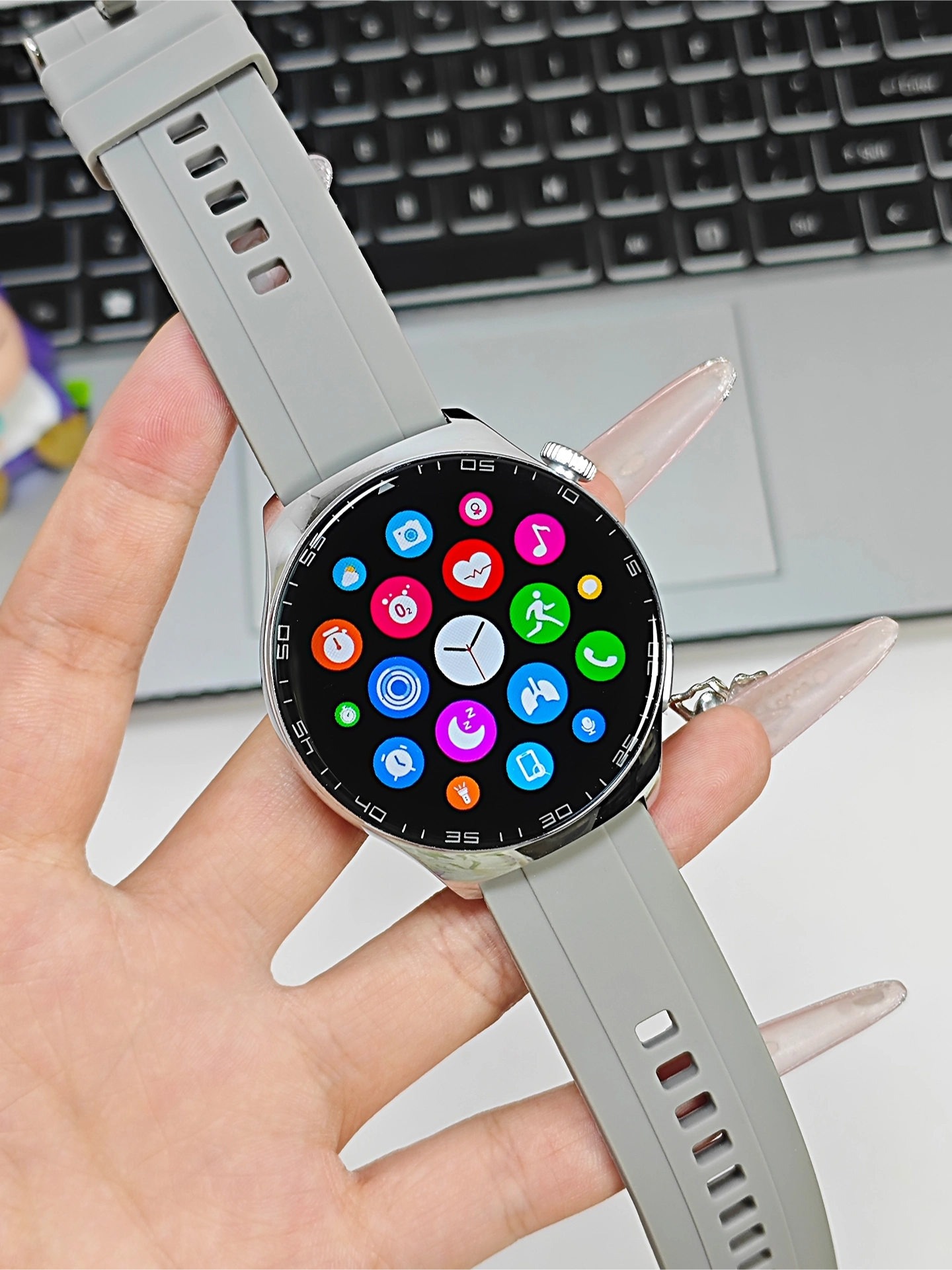 最近入手的这块智能手表超合我心意👏。圆形大屏清晰又好看,硅胶表带戴上舒服还百搭🥼。它功能超全,连手机就能打电话、接收消息📱,平时出门付款、刷门禁,抬抬手就搞定,太方便啦。运动时还能监测心率等数据,像我这种爱运动的人真的很需要。续航也不错,充满电能用蛮久。整体很值,学生党、运动爱好者都可以考虑~