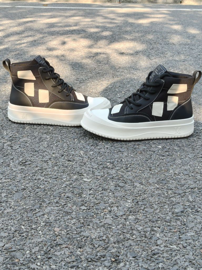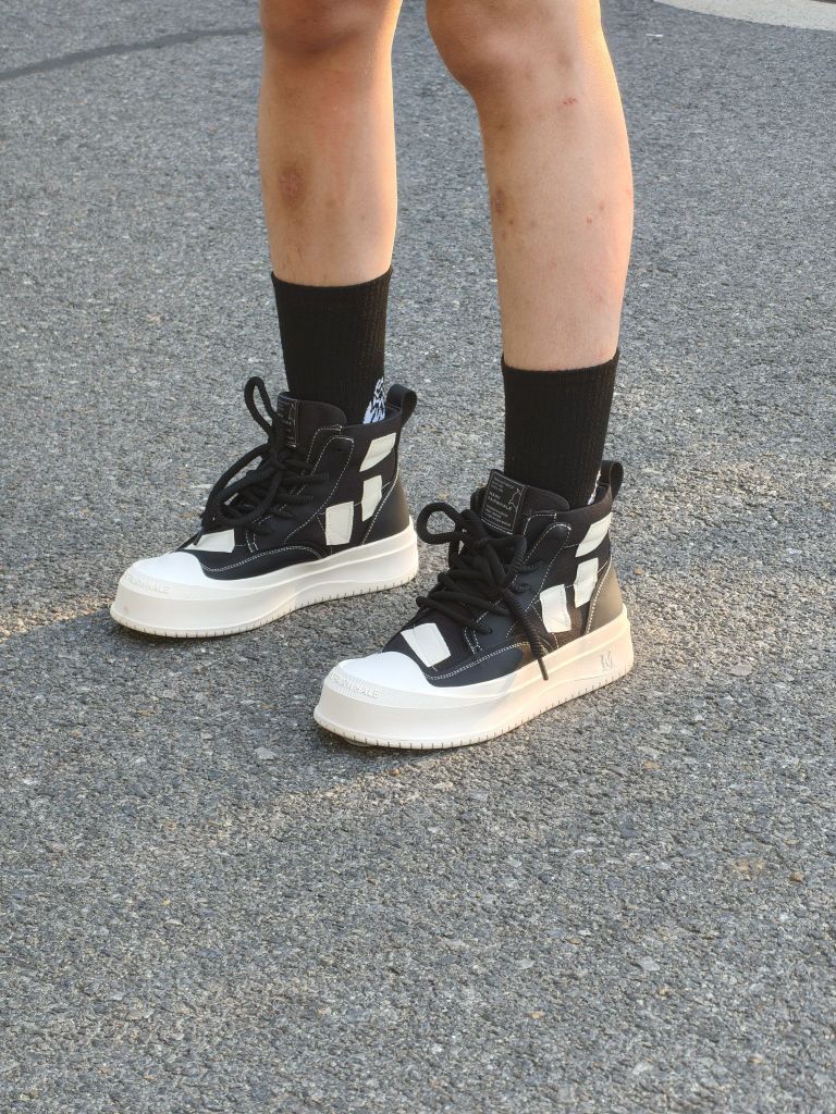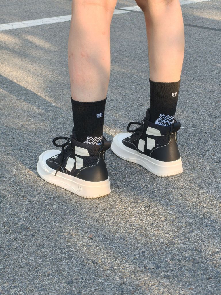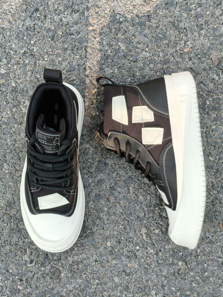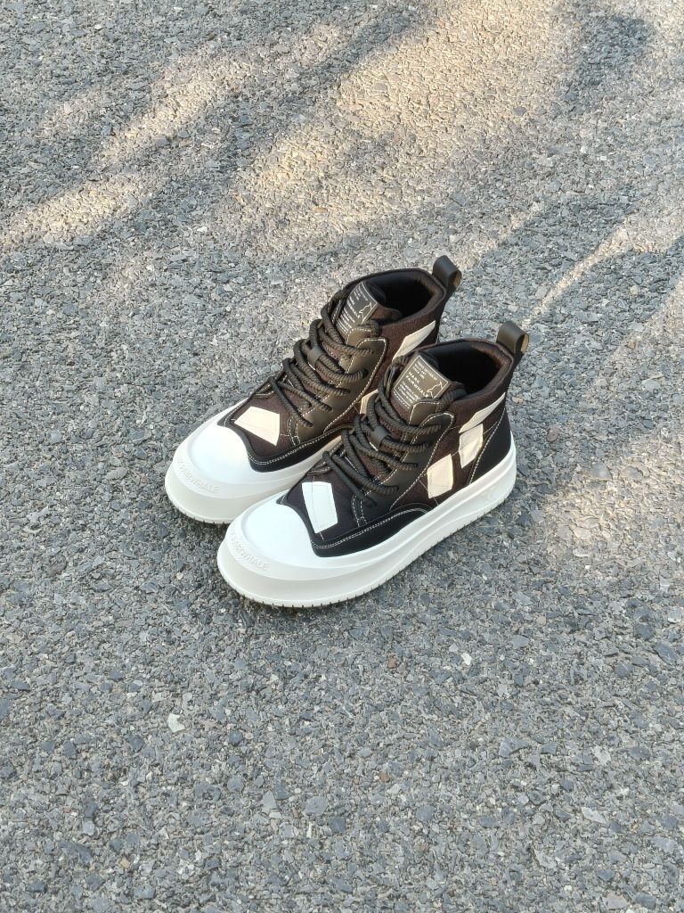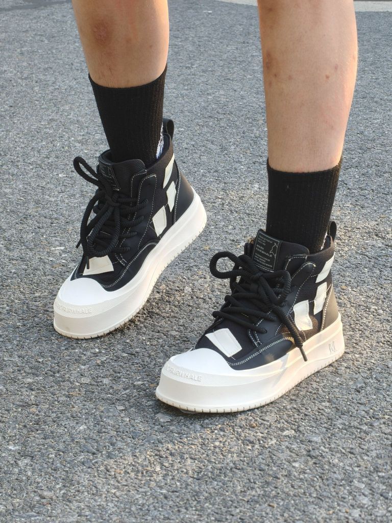 设计方面,街头酷盖专属,厚底潮鞋,高帮款式➕黑白配色,低调又有范儿,出门玩还是上学,都挺适配的[机智_blue]鞋面采用帆布材质,透气性还可以,就是夏天出去玩的时间长了,有点闷脚🦶,鞋底采用橡胶材质,防滑又耐磨,还是挺不错的[赞_blue] 🦶脚感方面,上脚的第一反应,这鞋怎么这么轻?别看它底厚,但是穿起来走路还是挺轻的,帆布面软乎乎贴合脚,不挤脚趾,不压脚背,走路还带有弹性,整体感觉挺不错的[...
