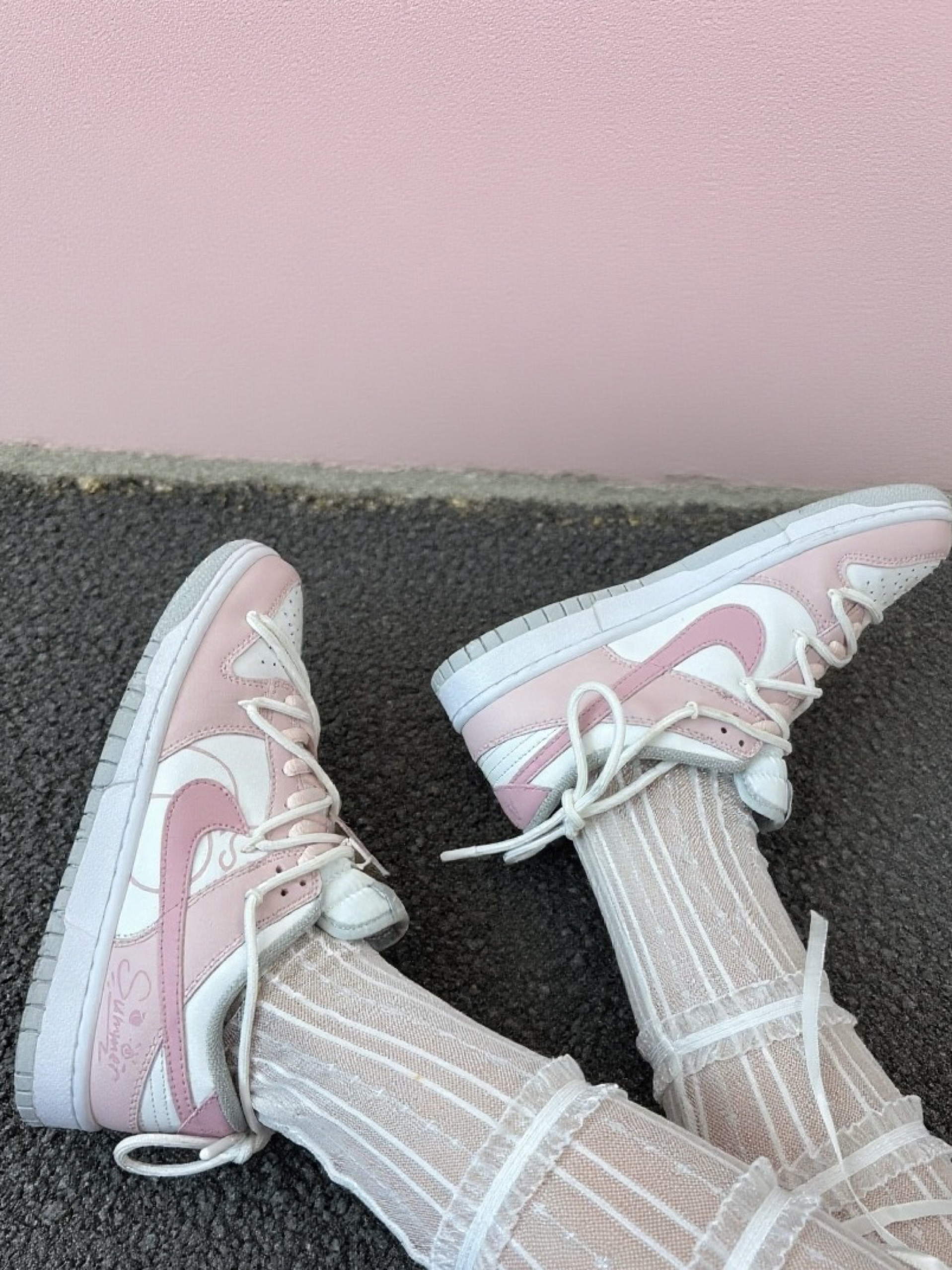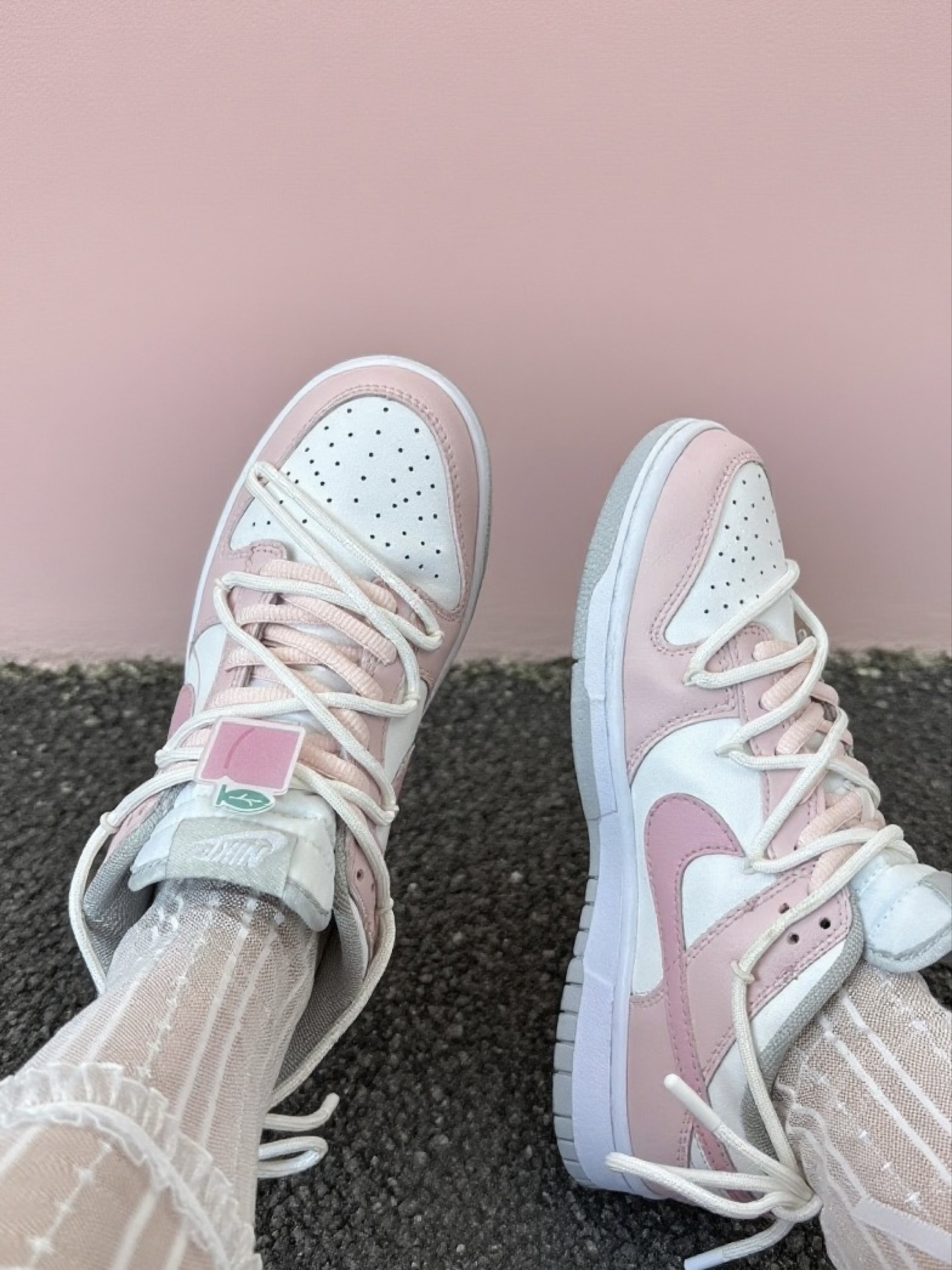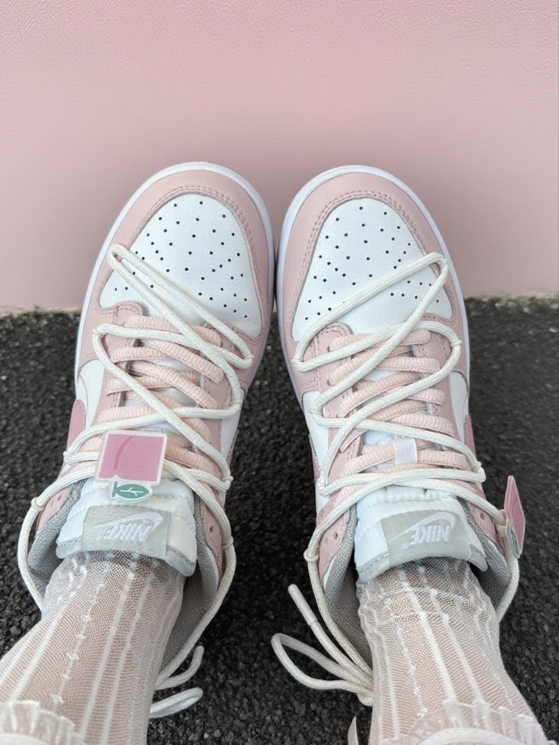 好喜欢 Nike 的这款Dunk板鞋呀, 白桃乌龙的粉白撞色自带清甜少女感🍑 简约利落的设计真的越看越爱呀🌸 低帮版型超百搭,不会显得笨重拖沓👟 上脚清爽又元气,简约中透着小精致✨ 鞋底防滑又耐磨,走路稳稳当当,舒适度拉满啦👍