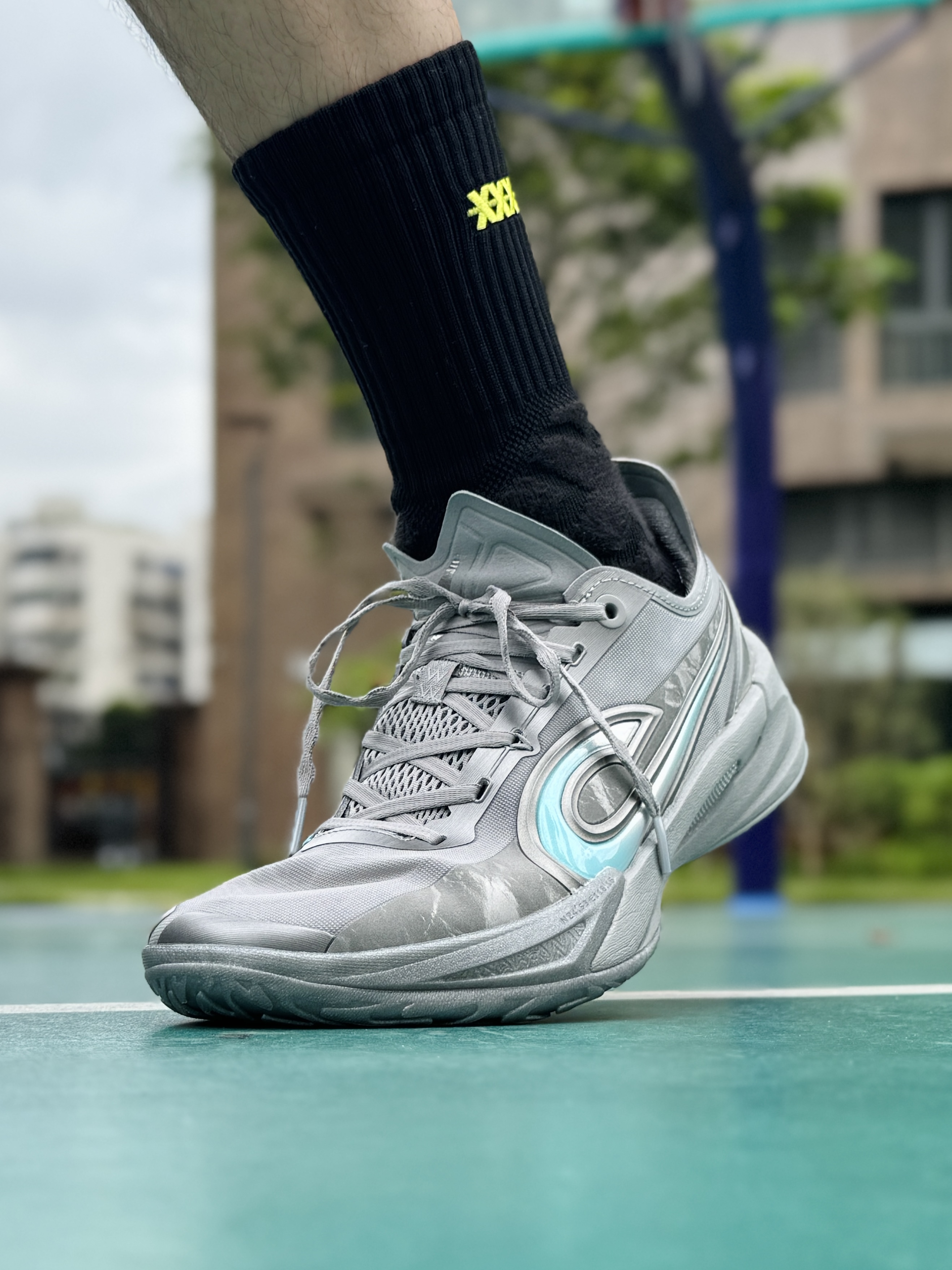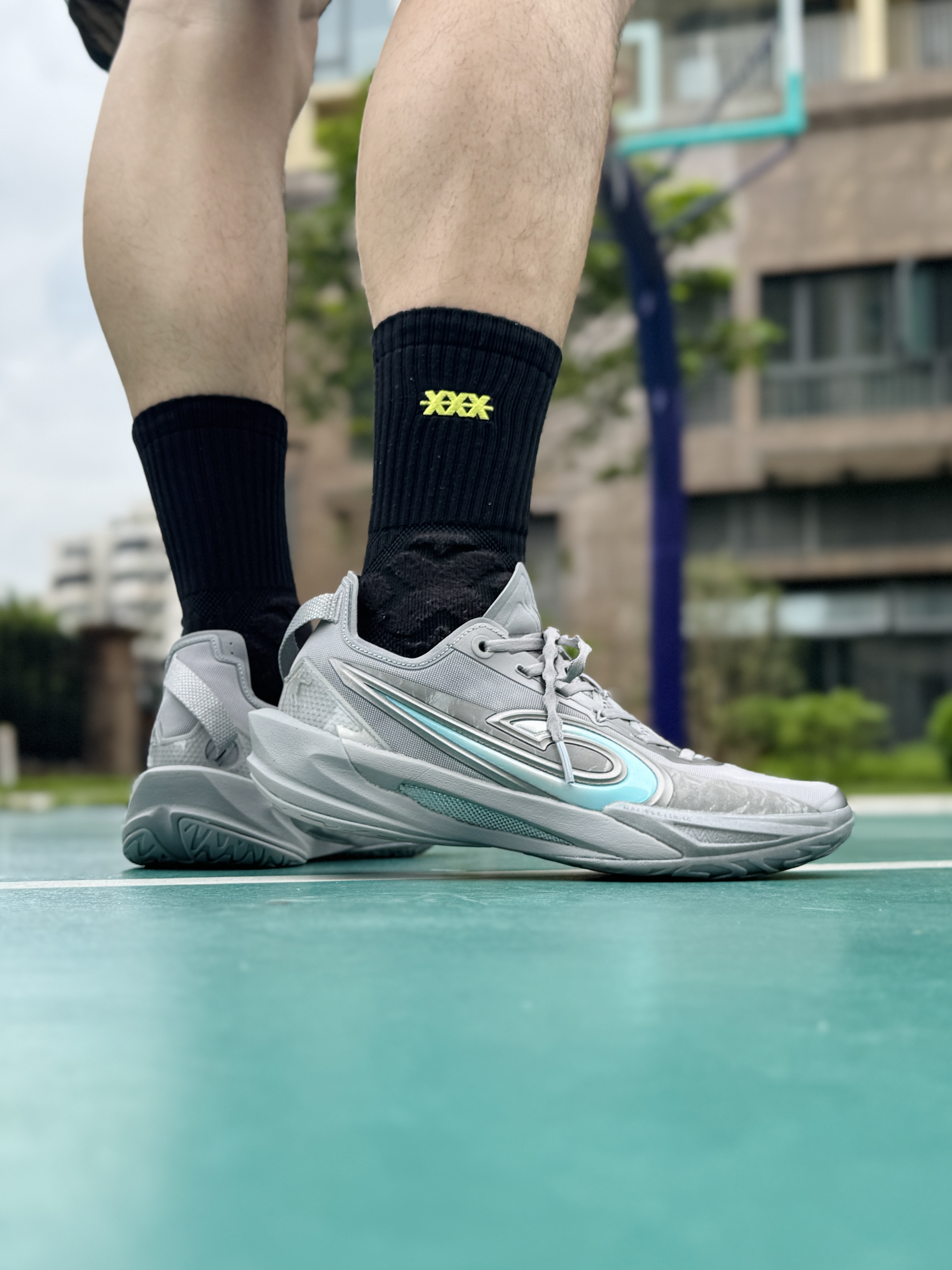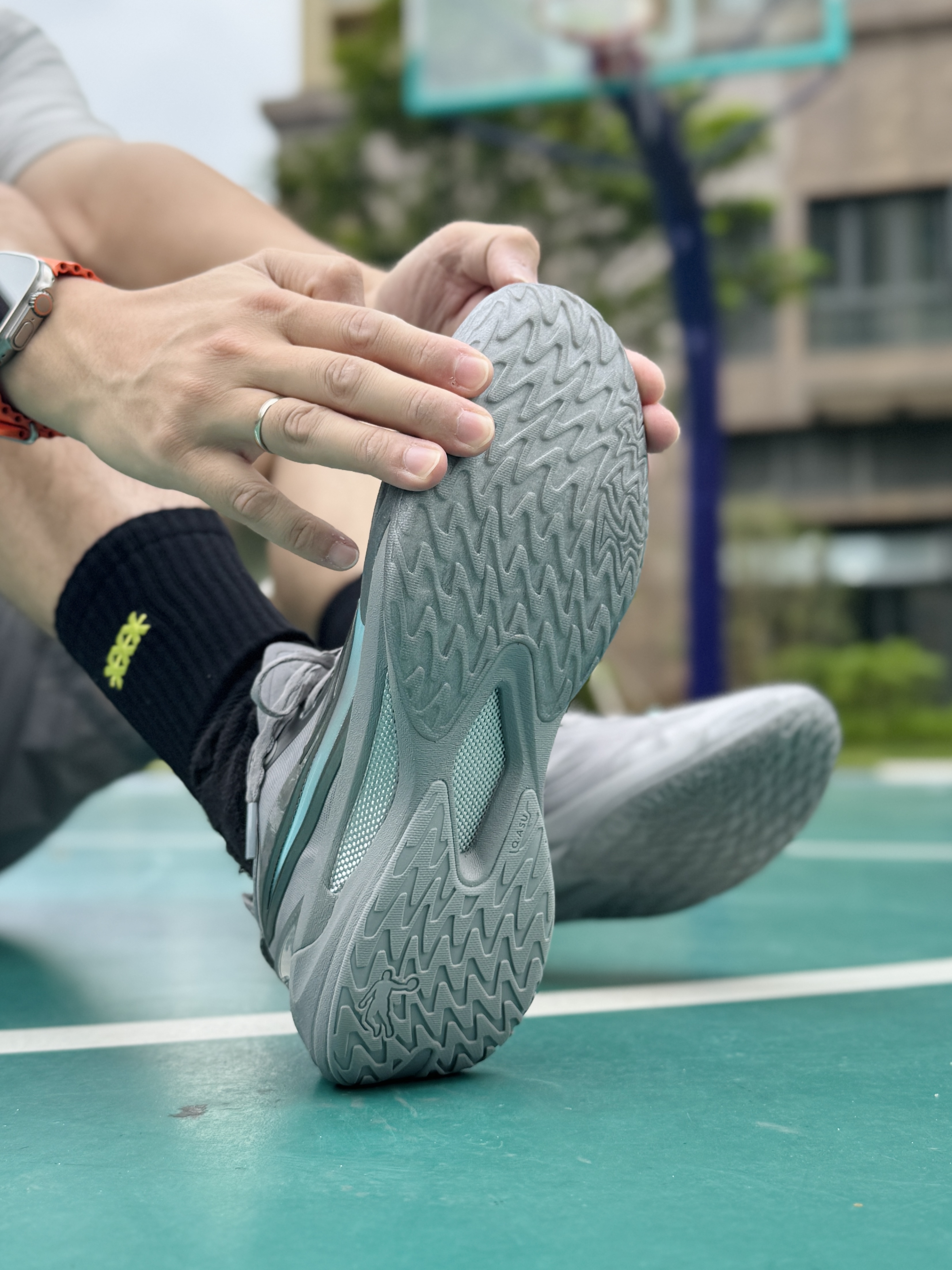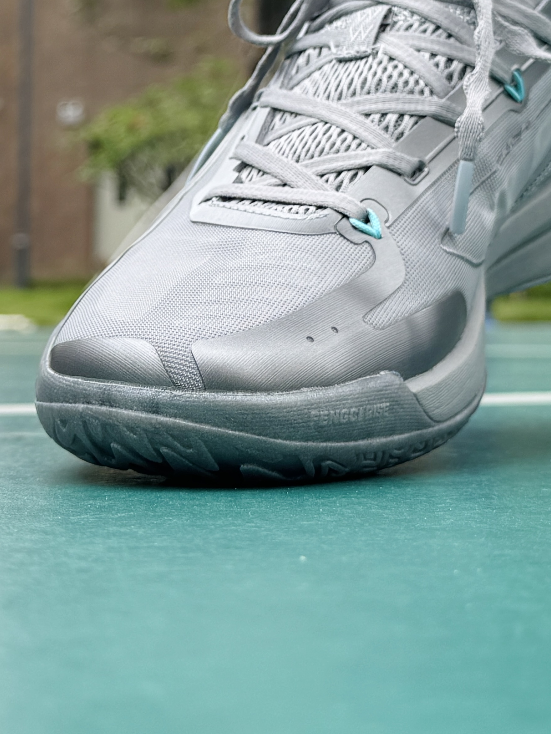 前一阵子 在室内场穿过 中乔这双锋刺Rise2.0 感觉很不错 喜欢薄底快靴的我 今天练球翻出来到室外场 简约帅气的绝对零度浅灰配色 上脚颜值确实不错 在室外场穿同样透气 低趴的鞋型贴和包裹感都很明显 但有些压脚背 高脚背的朋友建议先试穿 双密度中底在外场依旧 有着出色的贴地脚感和响应速度 鞋底抓地力出色 频繁变向移动都很稳 所以如果你是 喜欢薄底快靴的中小体重选手 同时会有室内外场 不同场地打球...