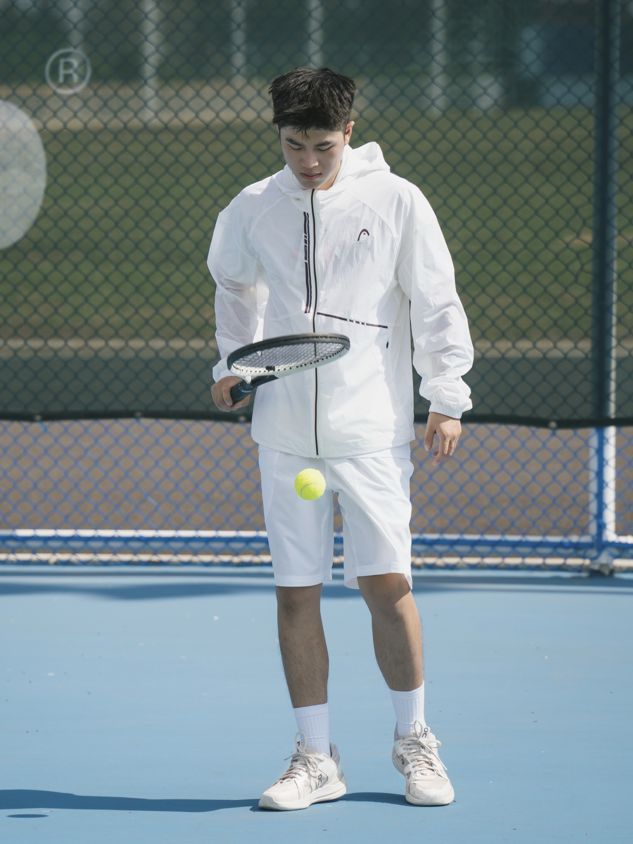 夏日网球怎么穿, All White,海德舒适夹克 下午抱着试试的心态去打了场室外网球,因为这个网球场实在太美! 地面还在发烫,热浪裹着风扑面而来🌪️ 轻盈透气的防晒服像第二层皮肤🧊白皮一点不担心晒黑 夏日专属的优雅,不是躲在空调房,而是拥抱阳光! 防晒到位,才能在球场上 更自信、更持久、更耀眼地发光🌟