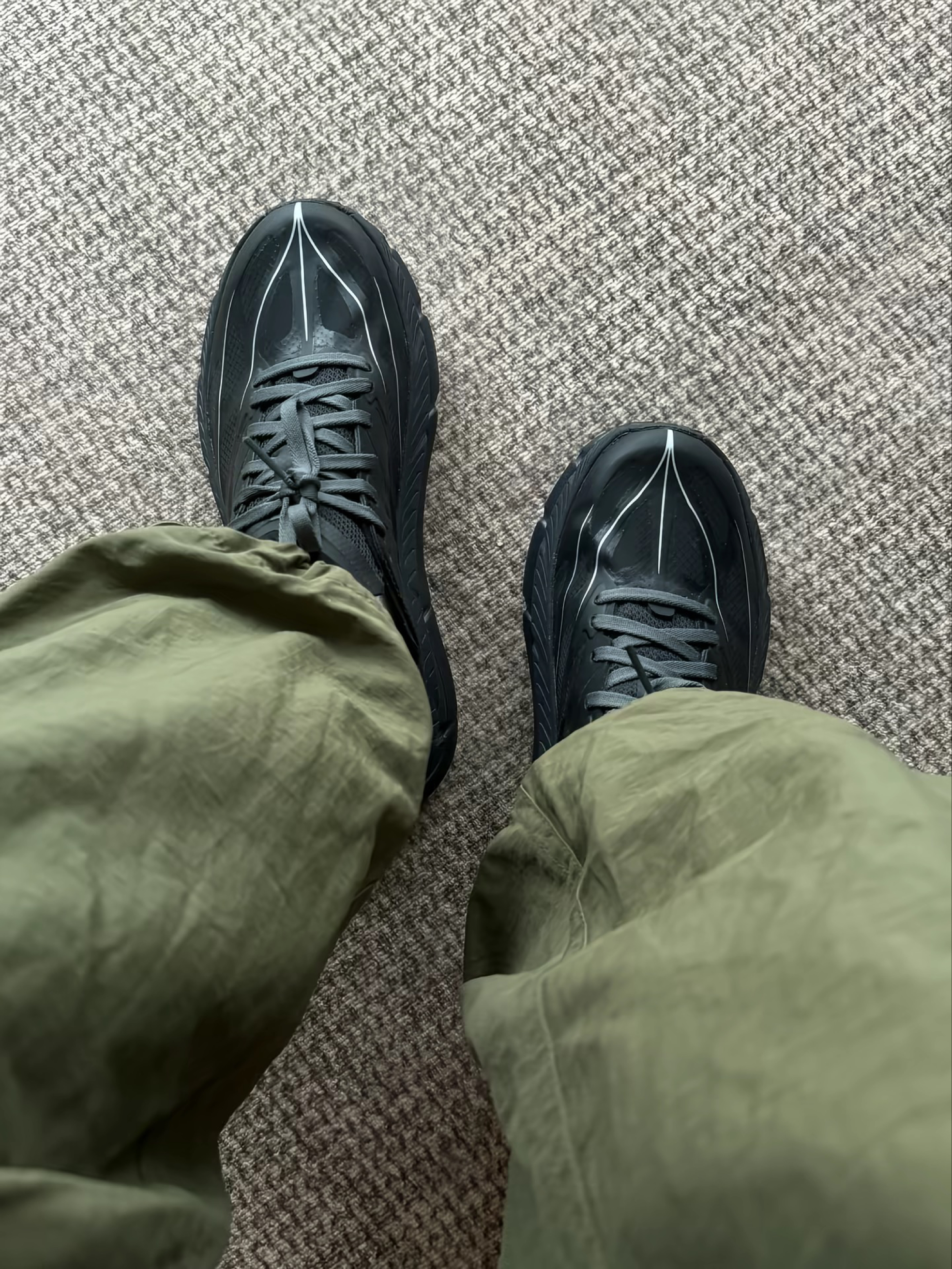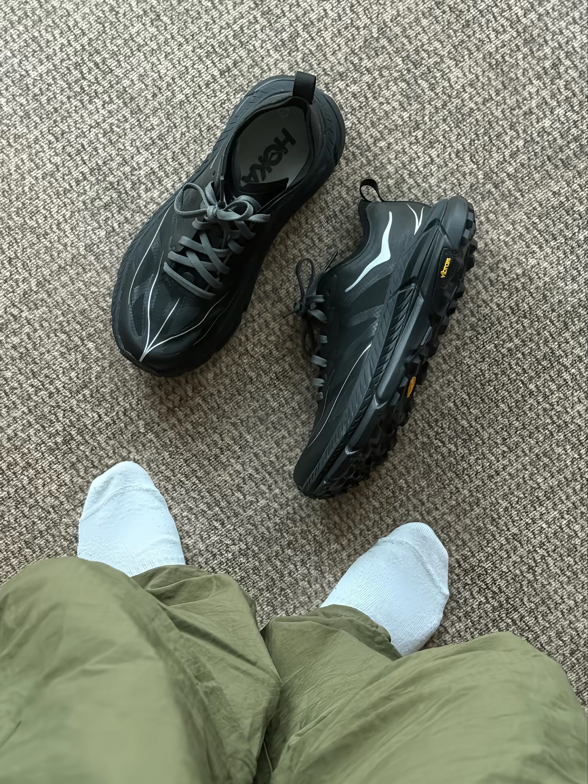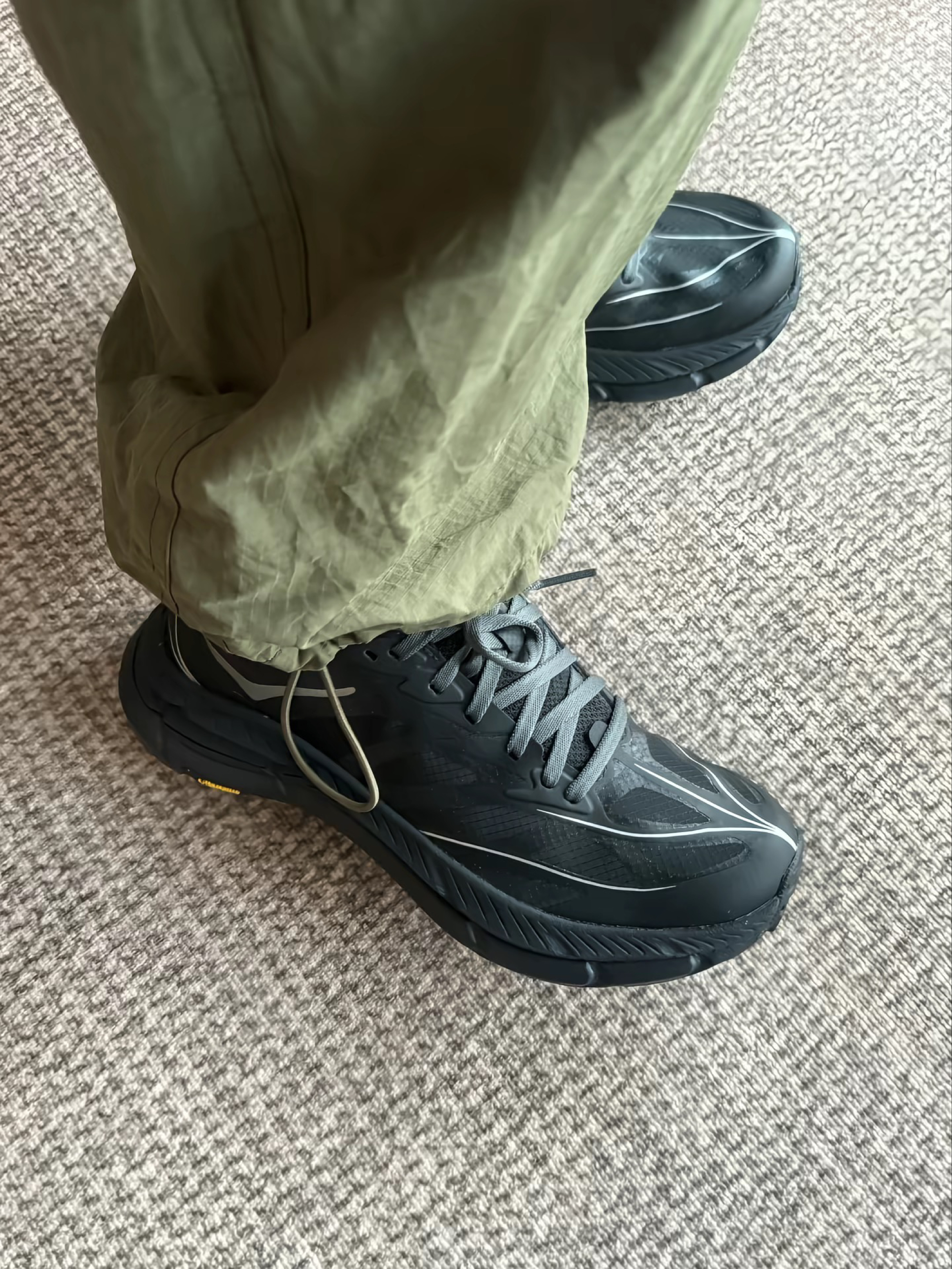 8月第一天拍的第一双鞋子,其实是之前就买好了的一双越野跑——Hoka Mafate Speed4。这款出圈应该是因为去和Satisfy的联名,但那几个配色现在的价格有点夸张了,不如直接像我一样买普款黑色平替一下。Hoka 的几个当家型号中能在夏天穿的确实不多,这双的鞋面可以说是很薄的,微微透光,透气的同时还有v底的加持,非常舒适。外观方面我觉得它是很低调的,除了运动,通勤也可以穿,唯一比较显眼的就...