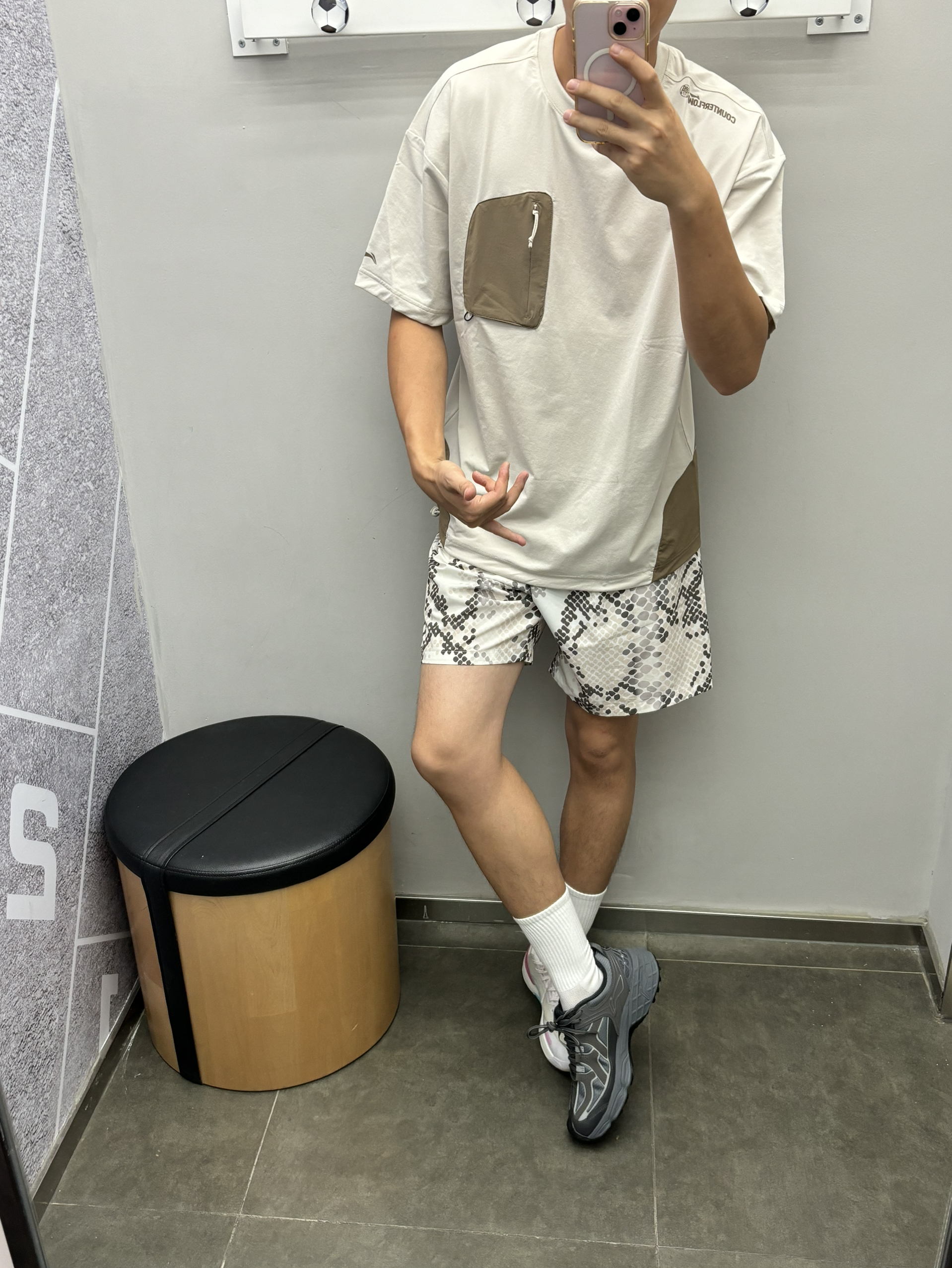 #脚步随韵而动 👔户外溯溪的短袖 很适合上身穿搭配户外场景 衣服有很大的弹性很舒服的面料 速干透气 👖uzis短裤蛇纹很野性 👟林影户外运动越野鞋 城市也可以轻户外、徒步都可以