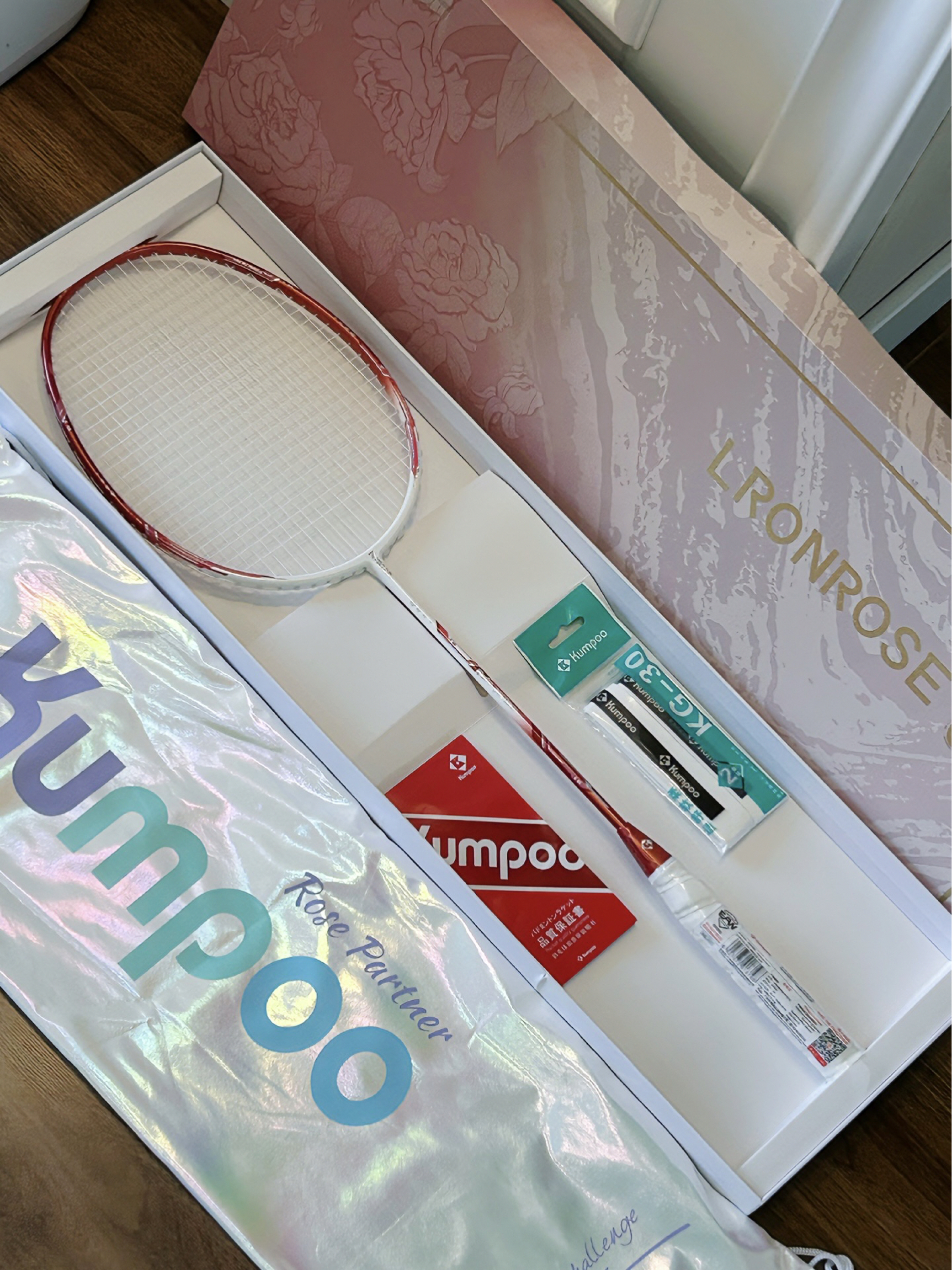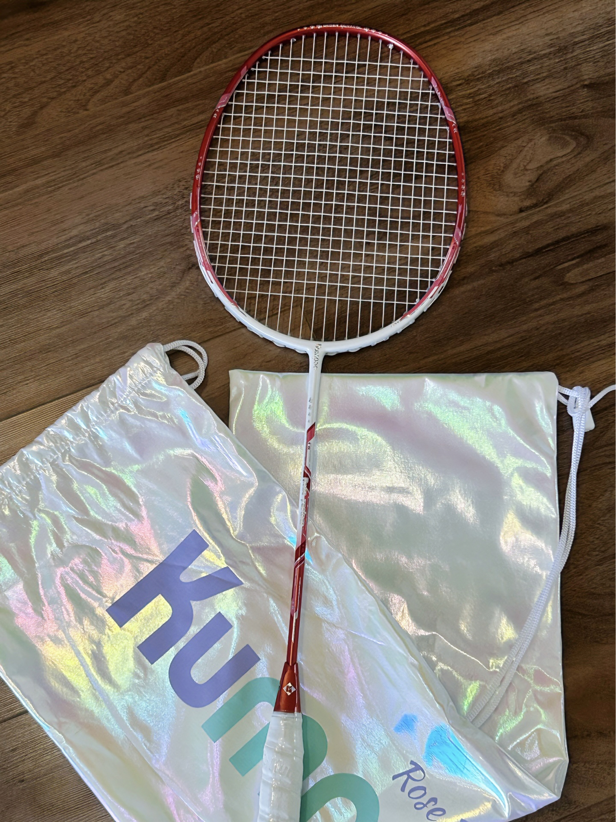 这拍子是来撩人的吧… 薰风你真的好会做球拍 红白配色的钢铁玫瑰太貌美了 握在手里像捧着一束玫瑰 连挥拍都自带少女感滤镜 打球的时候击球声音很清脆 拍子全碳素的 重量比较轻 配上这个炫酷的袋子背出门也方便多啦
