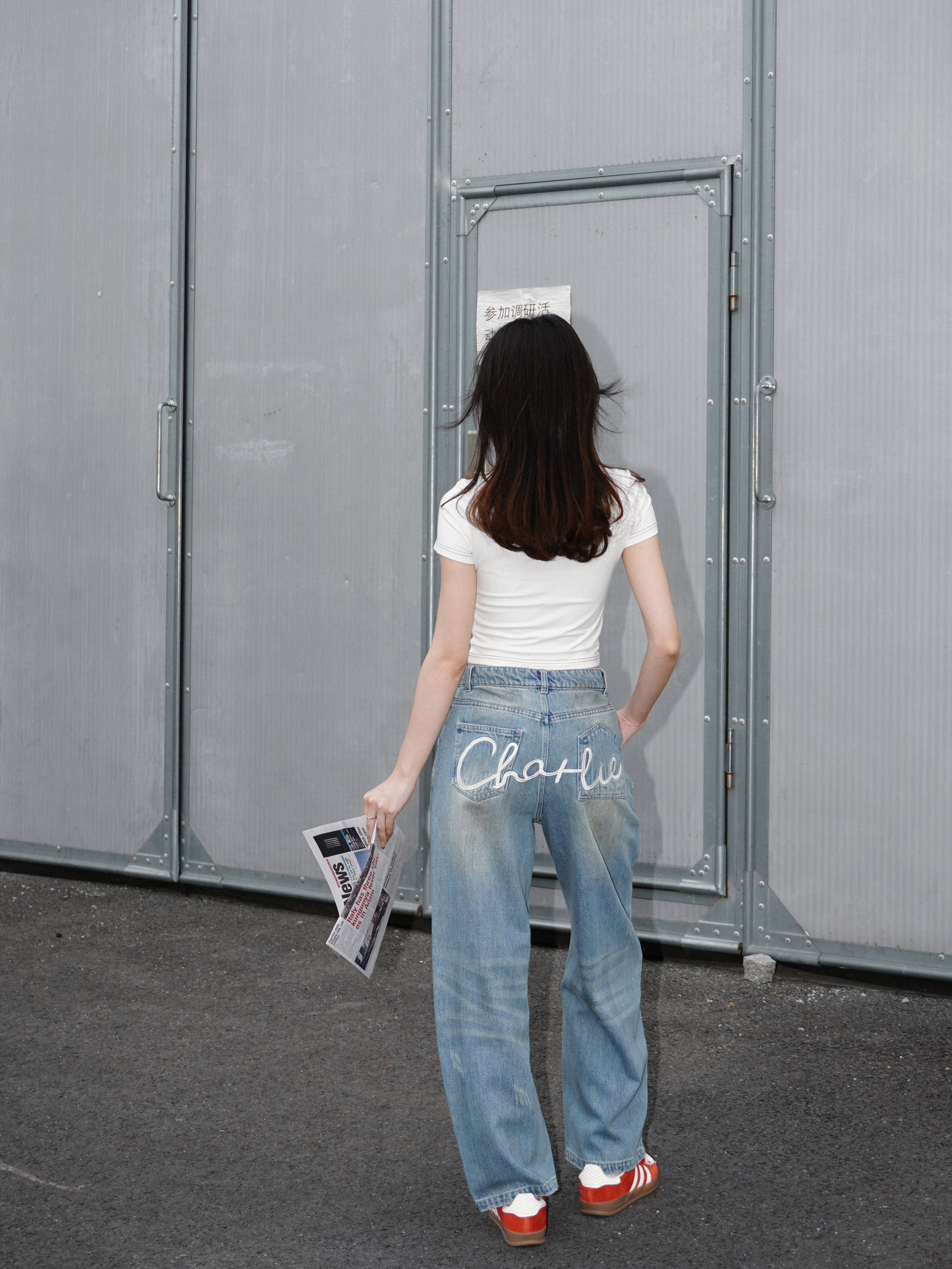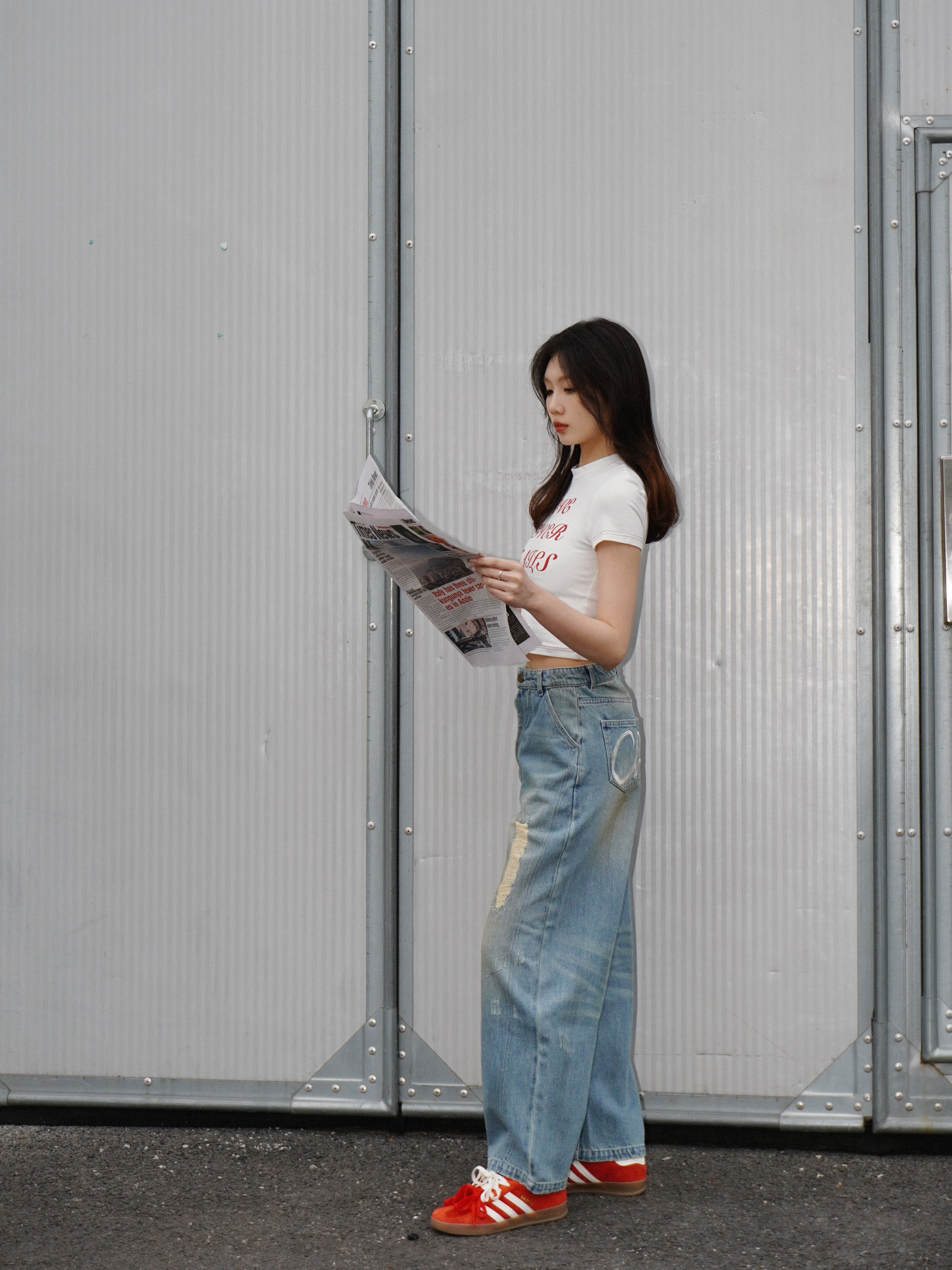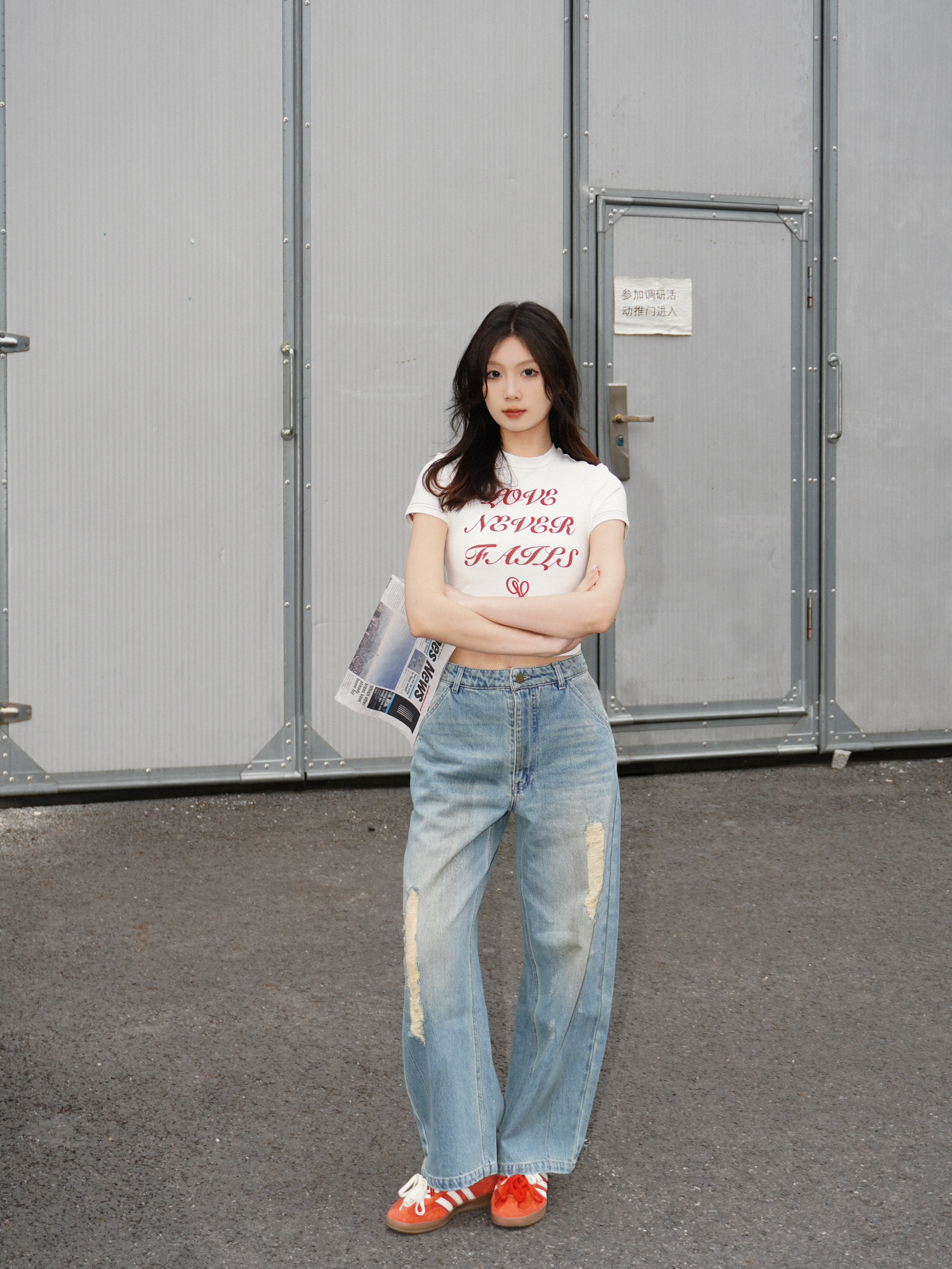今天就小帅一下吧 紧身的字母t会让上半身更加的饱满🎈 搭配宽松的牛仔裤更好的呈现上窄下宽的视觉效果 无论怎么看都是显高又显瘦⬆️ 自信就是最顶的时尚秘诀 果然这种简约时尚感就是我的本命✨ 👟 : Adidas
