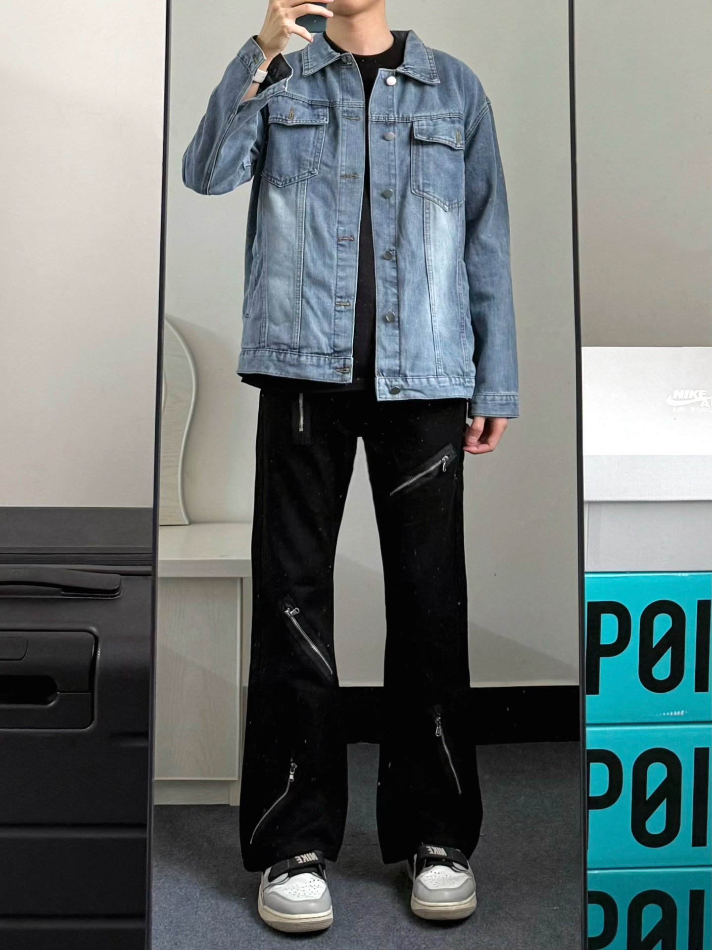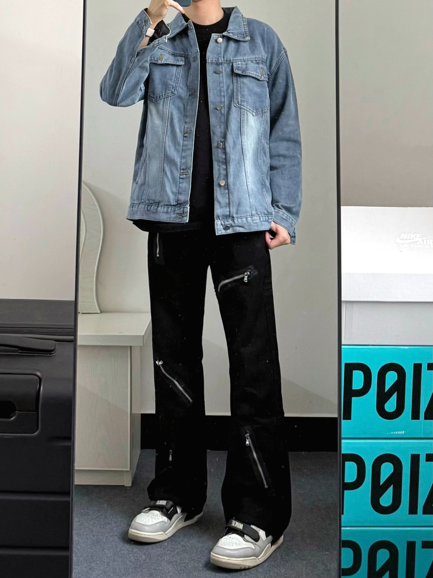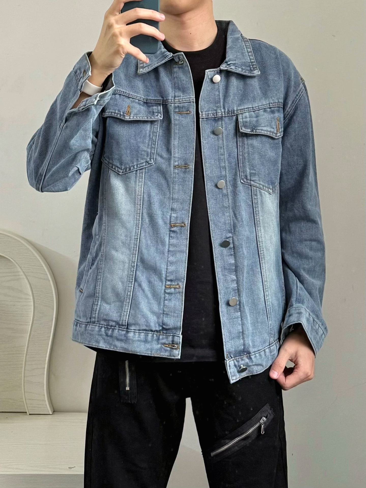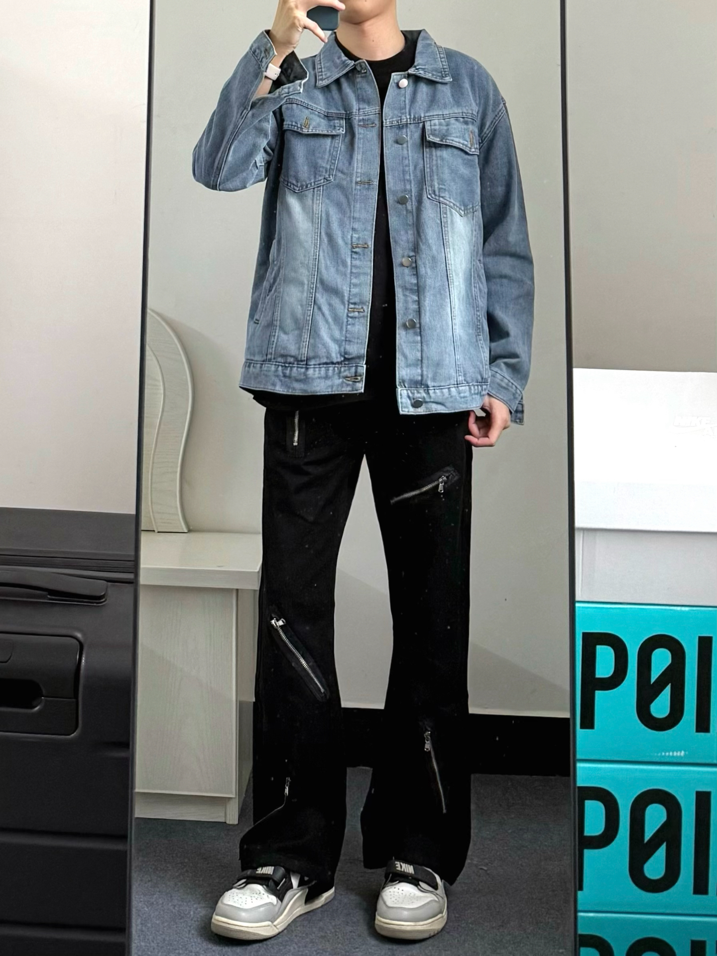 马上开学了,这天气就很适合穿牛仔外套👌 这件版型质感都在线👌搭配黑色牛仔裤就很帅