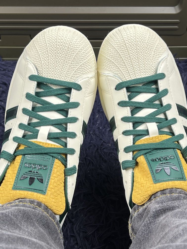 入手了这双Adidas 贝壳头, 配色是黄绿白,搭衣服还挺出彩😃😃 说真实体验哈,脚感算舒服,日常走路、逛个街,脚不会太累。鞋型经典,穿出去辨识度高,也算有点小个性。🤓🤓 鞋码的话我是买比平时小半码,穿起来刚刚好😀😀我按平时码数买,刚开始穿有些硬,得磨合几天就好了。 总体呢,喜欢复古风、追求有点辨识度的,能接受这些小缺点的,可以考虑🤔🤔 大家平时搭配复古风板鞋都喜欢怎么穿呢😇😇