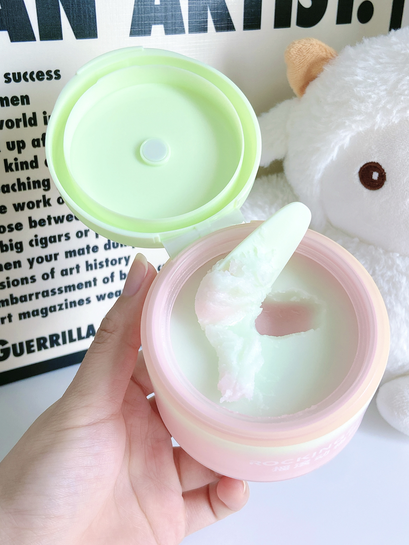 摇滚乐园新品夹心芭乐卸妆膏 简直长在我的审美上粉嫩粉嫩包装 颜值高!卸妆能力也是很强 油痘肌的我真的爱了 搭配磁吸小挖勺,方便又卫生 软糯的质地,上脸很舒服,揉搓几下就溶解 像T区容易出油地方重点打圈揉搓 用的过程中也不会感到闷肤 遇水秒乳化,清洗也不会对眼睛造成不舒服,不糊眼 洗完脸很清爽不会有油膜感 还带着淡淡的清甜芭乐香味