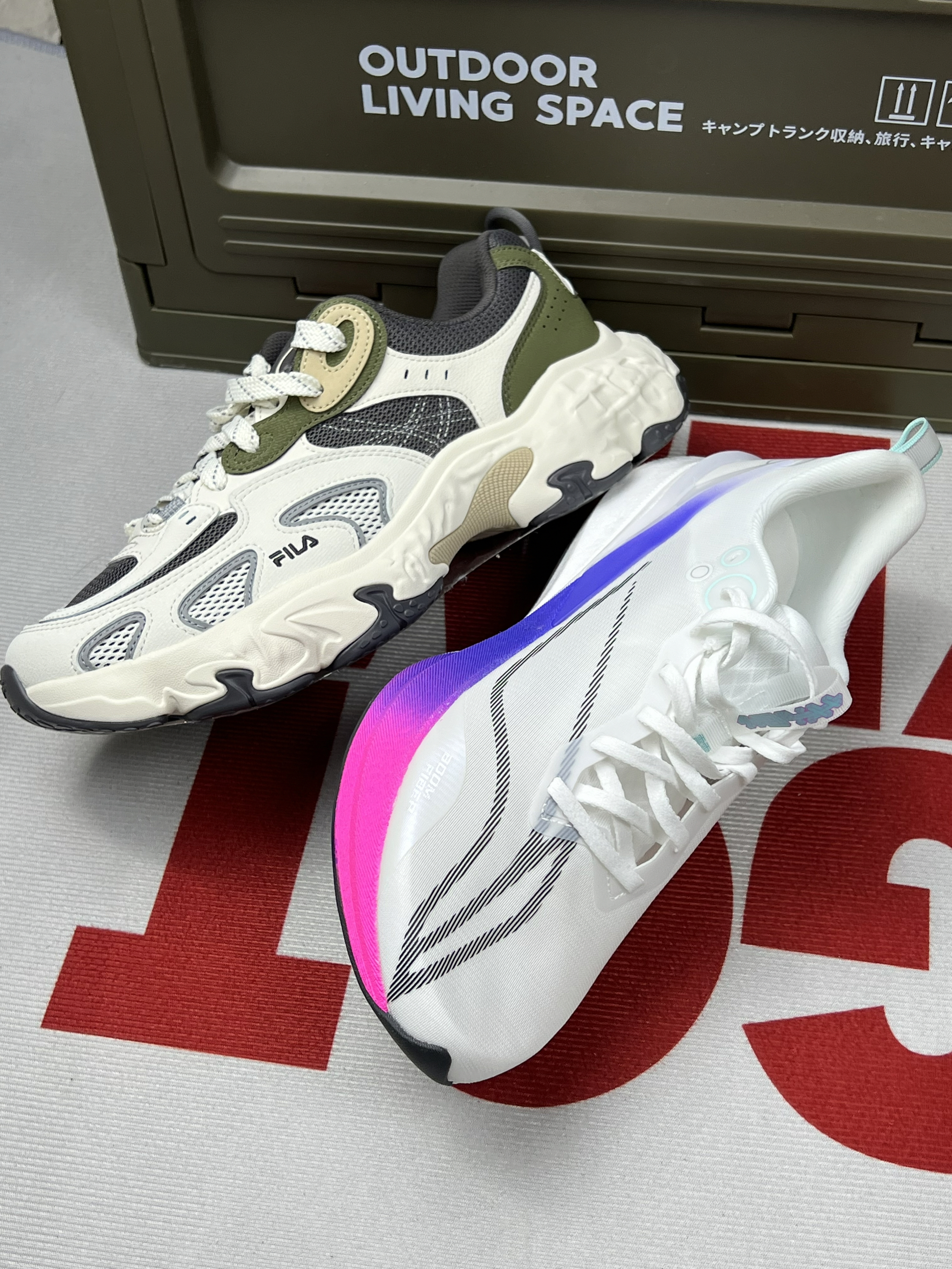 分享下最近穿的两双鞋👟 左边斐乐这双,配色复古好看,走路时鞋底的回弹感不错,长时间逛街脚也没特别累。但鞋型偏宽,脚瘦的人得选小一码,不然会晃荡。而且网面缝隙容易卡小石子,清理起来有点烦😅 右边这双,颜值很戳我,渐变底超吸睛,轻便度没话说,跑步时很跟脚。缺点是鞋面材质不太耐脏,沾点灰就明显,得经常擦。另外,鞋底防滑性一般,雨天或者光滑地面得小心摔跟头🤔 两双鞋都有亮点也有不足,看大家更在意啥啦,...