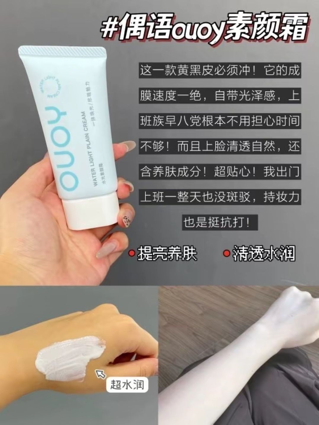 最近素颜霜风超大!作为懒人早八/通勤党,素颜霜真的是提气色神器~今天测评6款热门素颜霜,从平价到贵价,帮你避雷种草! **1. 偶语ouoy素颜霜** ✅ **适合**:学生党、黄皮暗沉肌 ✨ **亮点**:50元内性价比之王!乳液质地好推开,提亮明显不假白,带一点点遮瑕力,伪素颜效果自然。 ⚠️ **注意**:大油皮夏天可能需要压一层散粉。 **2. NARS光润素颜霜*...