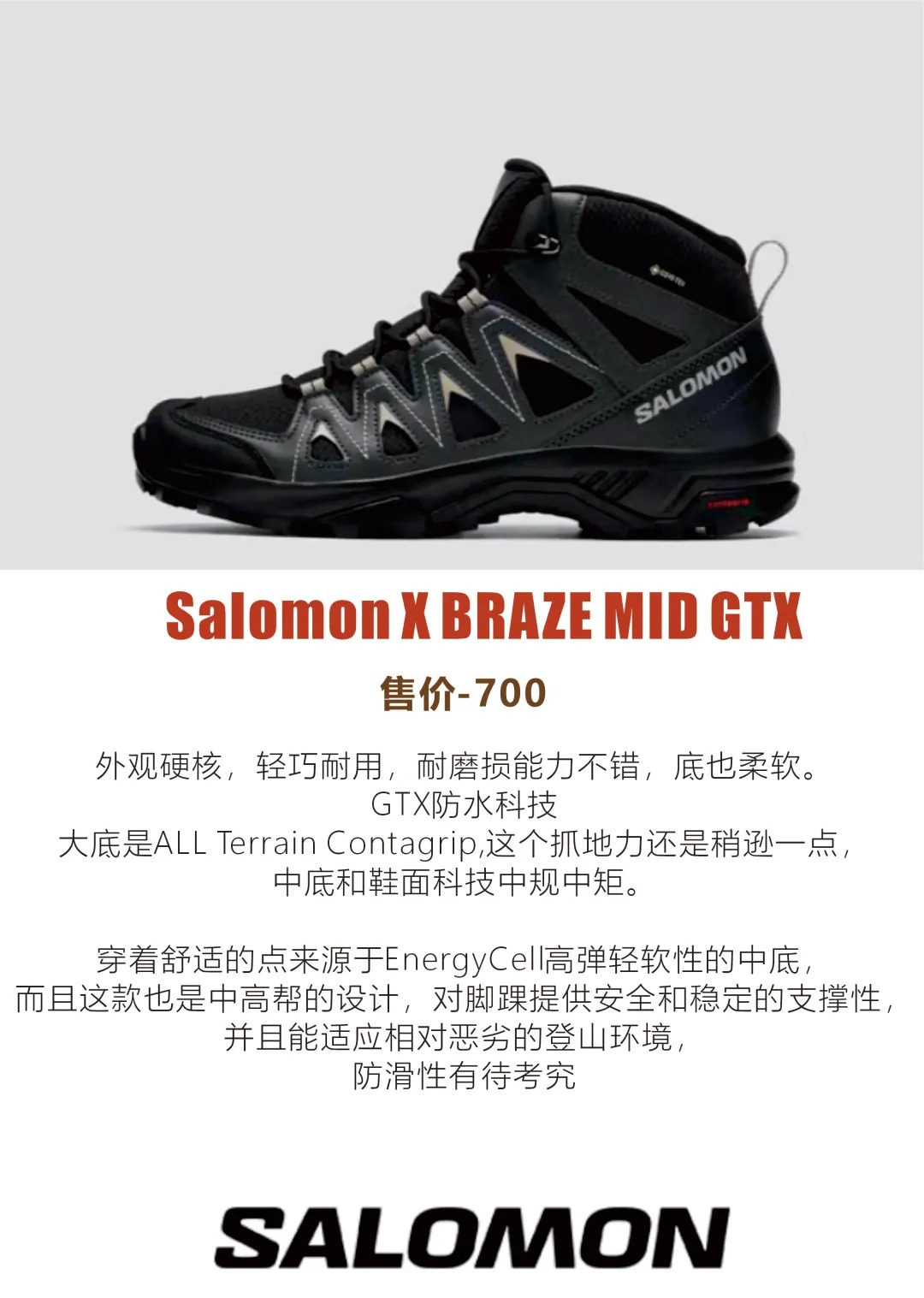 本篇笔记关联了Merrell/迈乐 MOAB 3 缓震轻量 抓地 防水 防滑 透气 牛皮 圆头 登山 徒步鞋 灰色、Salomon/萨洛蒙 X Braze GTX 耐磨 防水 防滑 抓地 包裹性 织物 稳定支撑 户外鞋 徒步鞋 黑色/灰色、Kailas/凯乐石 远征 4 FLT 防水 透气 防滑耐磨 舒适百搭 抓地 户外鞋 徒步鞋 木星等商品,为用户提供真实的使用体验和购买参考。