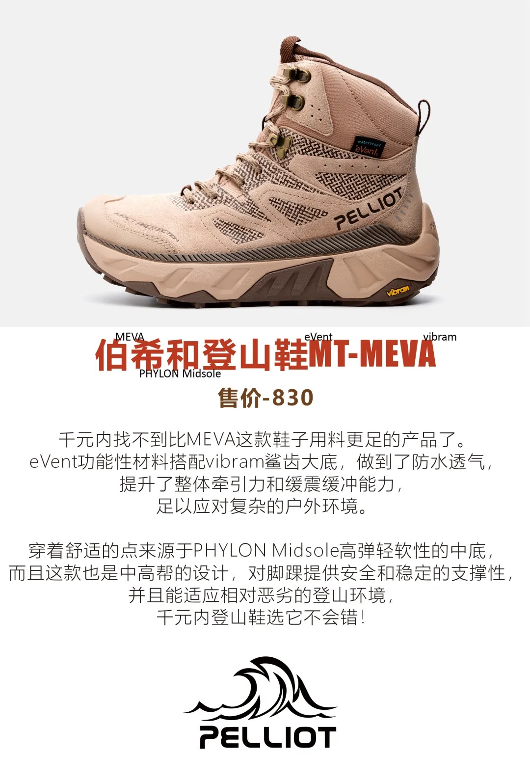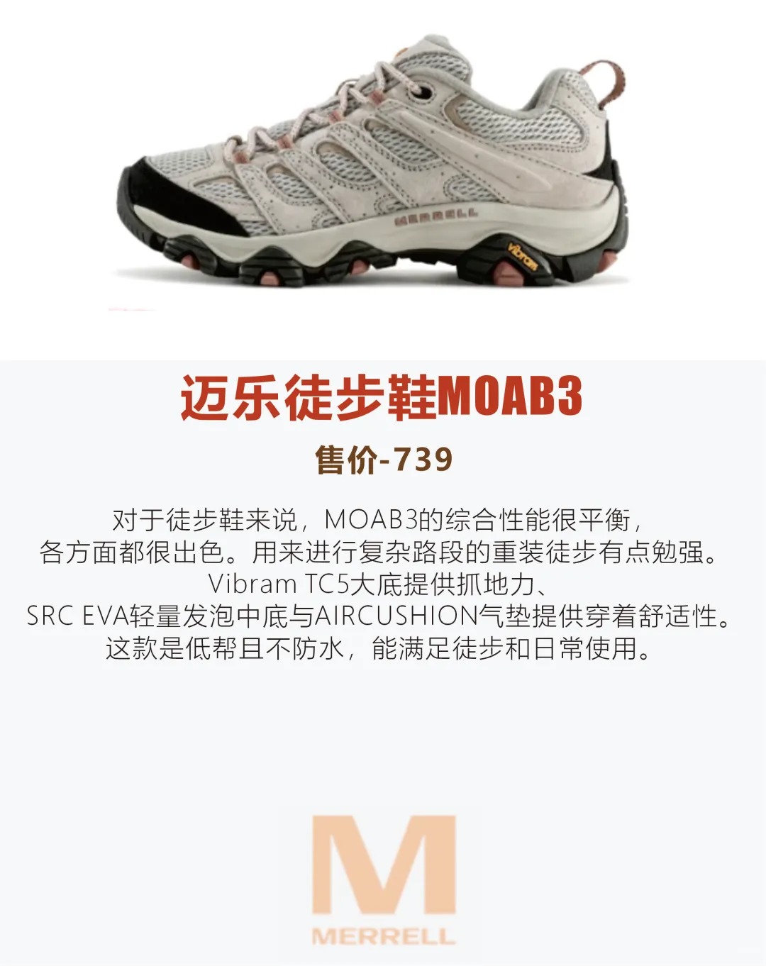 千元内登山鞋选购指南 性能四维度优先级:大底抓地力>防水性>中底缓冲>轻量化 六款高性价比实测推荐 1️⃣ 迈乐MOAB 3(¥739|低帮) 亮点:Vibram TC5大底+SRC EVA中底+AIRCUSHION气垫 场景:日常徒步|非重装复杂地形 短板:不防水|低帮防护弱 2️⃣ 伯希和MT-MEVA(¥830|中高帮) 亮点:eVent防水膜+Vibram鲨齿大底+PHYLON高弹...