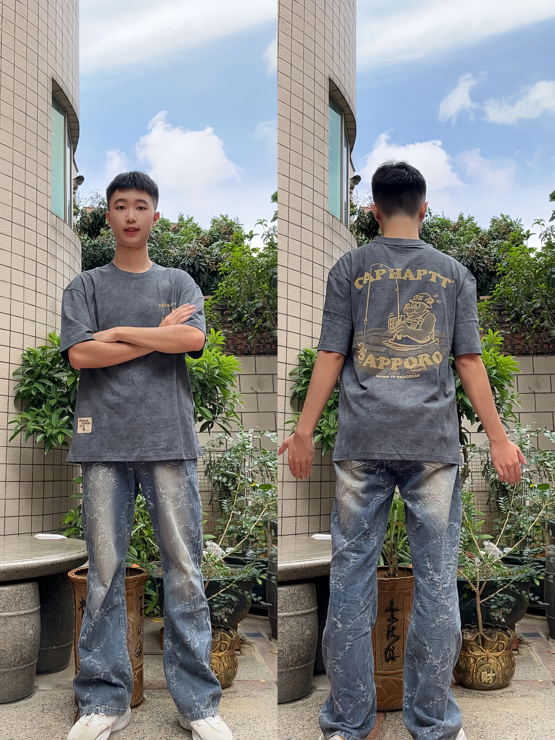 哈喽呀宝子们 今天穿的是前进牛家的衣服呀 做旧灰调自带复古氛围感,胸前精致小图案超有设计感,简约又不失细节~ 我175 120穿的是L码 宝子们可以参考一下哟