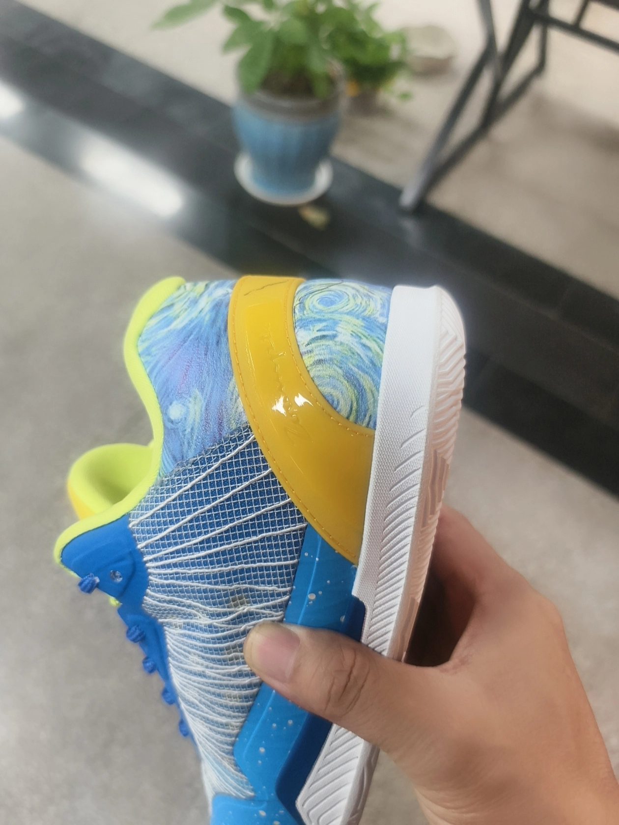 最近打球都穿这双,颜色超吸睛,像把星空踩在脚下。实战时抗扭性也不错👍,做急停等动作很稳。就是尺码感觉有点偏小,大家买的时候可以注意下~