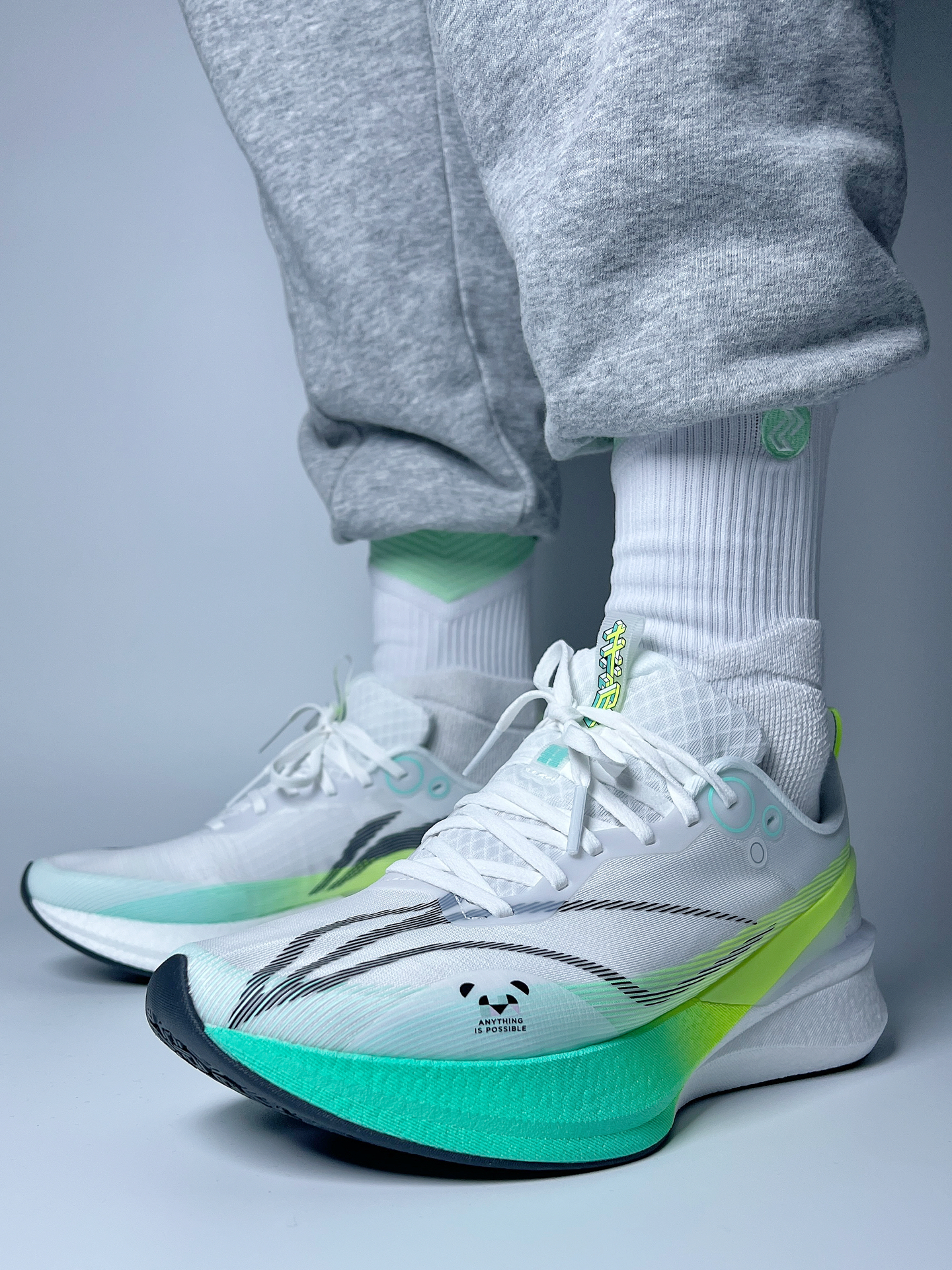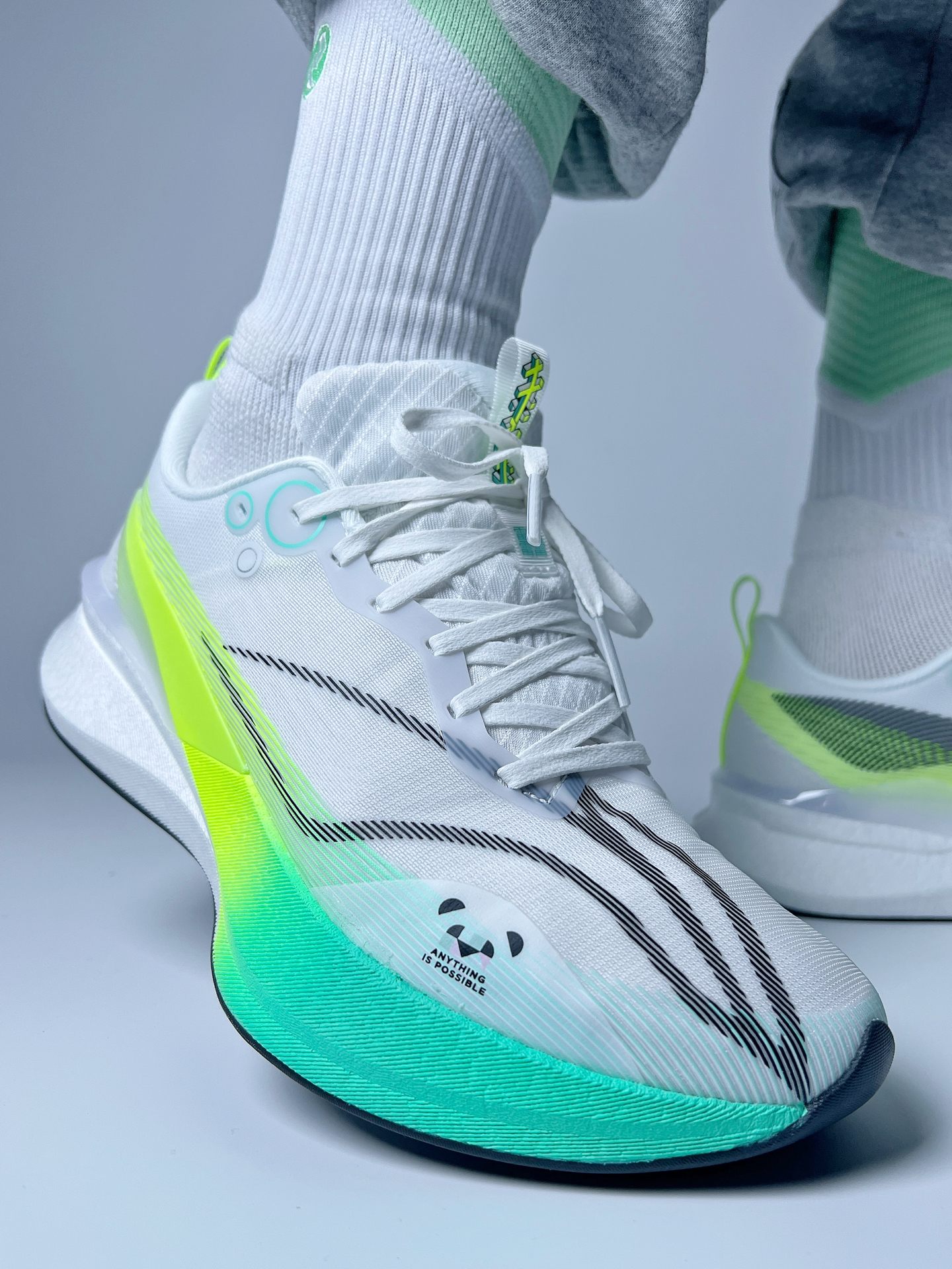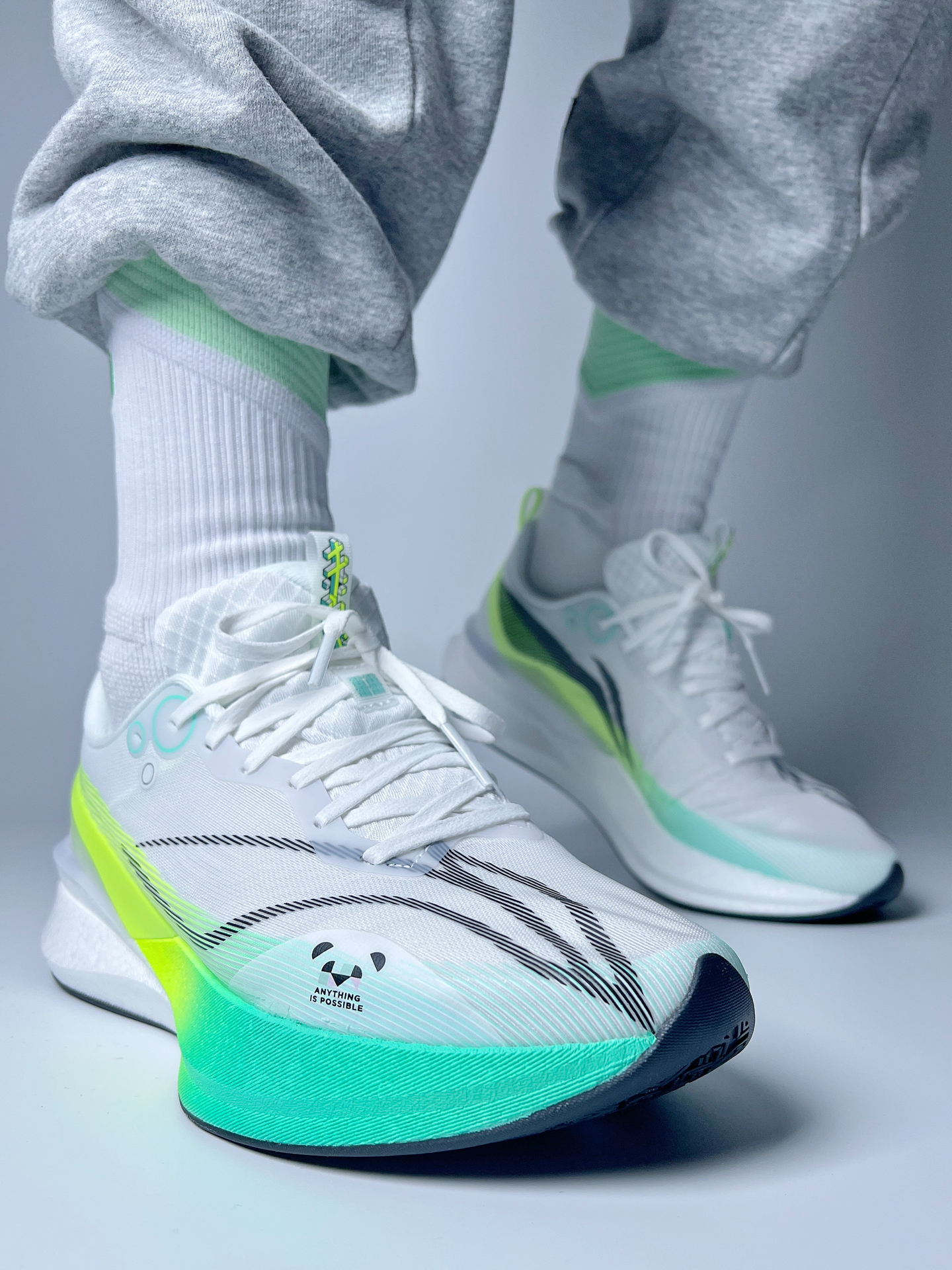 本期上脚分享的是这双赤兔8Pro 世运会联名配色 鞋子外观呢采用很清爽的白绿配色,与普通款最明显的区别就是,鞋头与鞋垫处有一个熊猫图案细节,呼应即将到来的成都世运会主题 配置方面为䨻丝鞋面与全掌䨻科技中底,中足内置了一块TPU稳定片,鞋子脚感挺韧弹的,驾驭门槛不高,缓震适合体重160斤以内的人群穿着 尺码方面呢,鞋子码数正常,按正常尺码选择就行,不挑脚型 #韭菜的上脚频道 #李宁赤兔8pro...