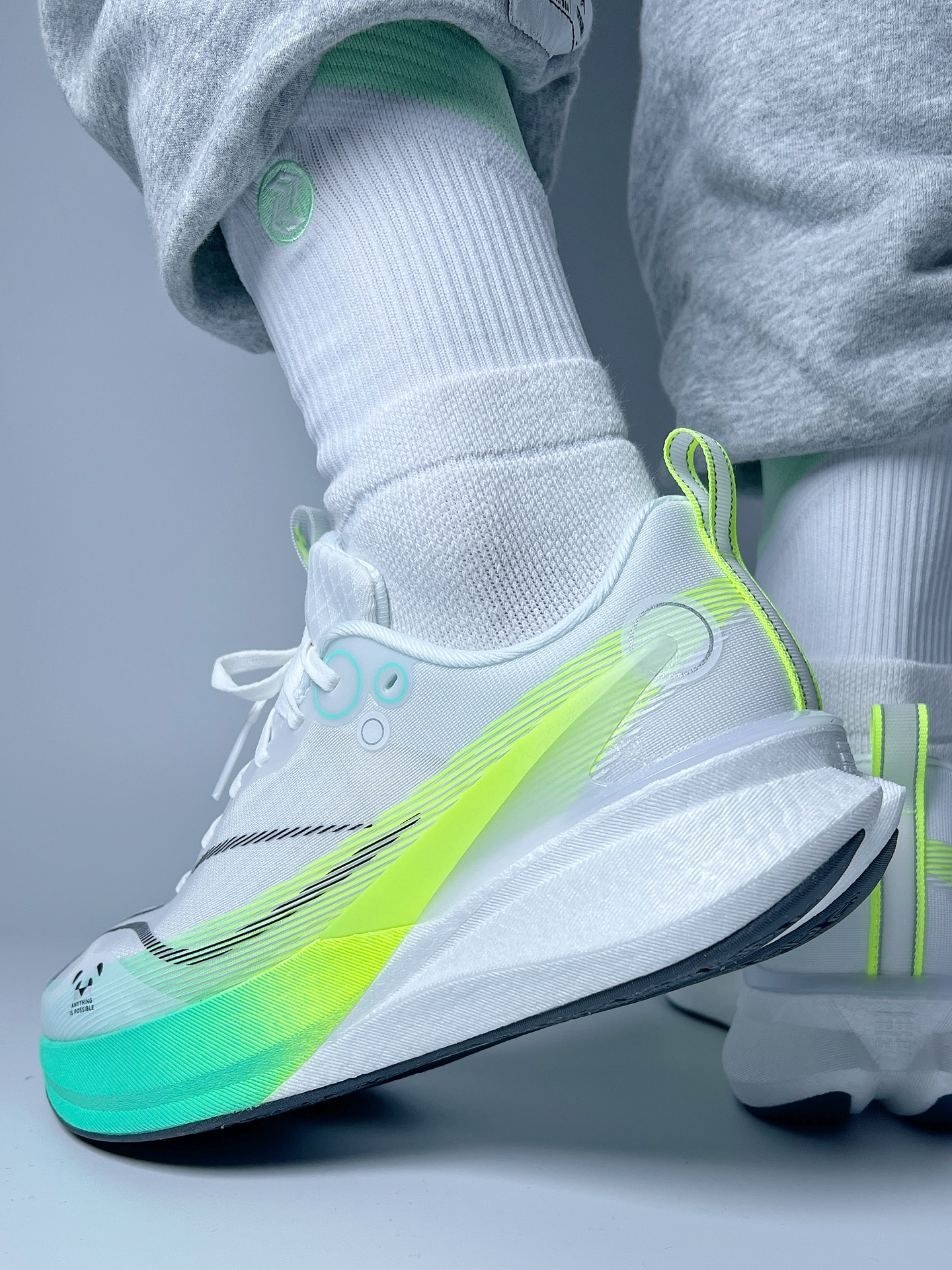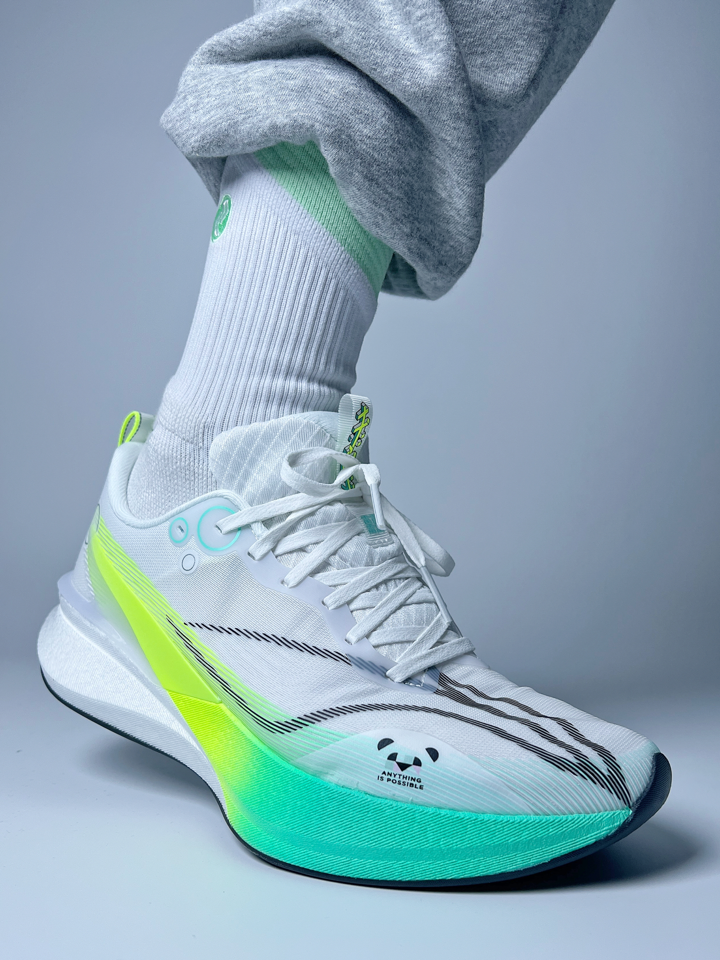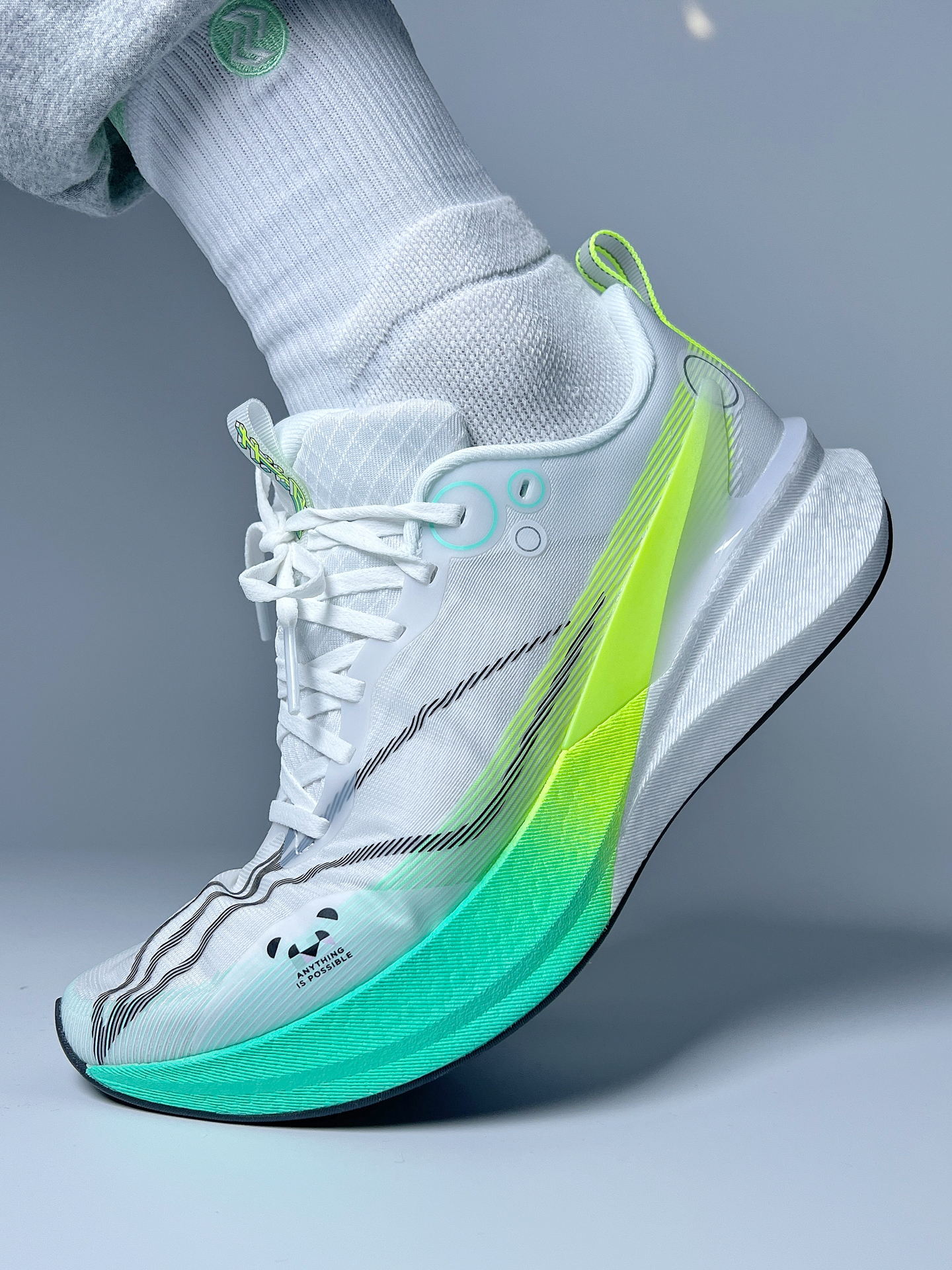 本期上脚分享的是这双赤兔8Pro 世运会联名配色 鞋子外观呢采用很清爽的白绿配色,与普通款最明显的区别就是,鞋头与鞋垫处有一个熊猫图案细节,呼应即将到来的成都世运会主题 配置方面为䨻丝鞋面与全掌䨻科技中底,中足内置了一块TPU稳定片,鞋子脚感挺韧弹的,驾驭门槛不高,缓震适合体重160斤以内的人群穿着 尺码方面呢,鞋子码数正常,按正常尺码选择就行,不挑脚型 #韭菜的上脚频道 #李宁赤兔8pro...