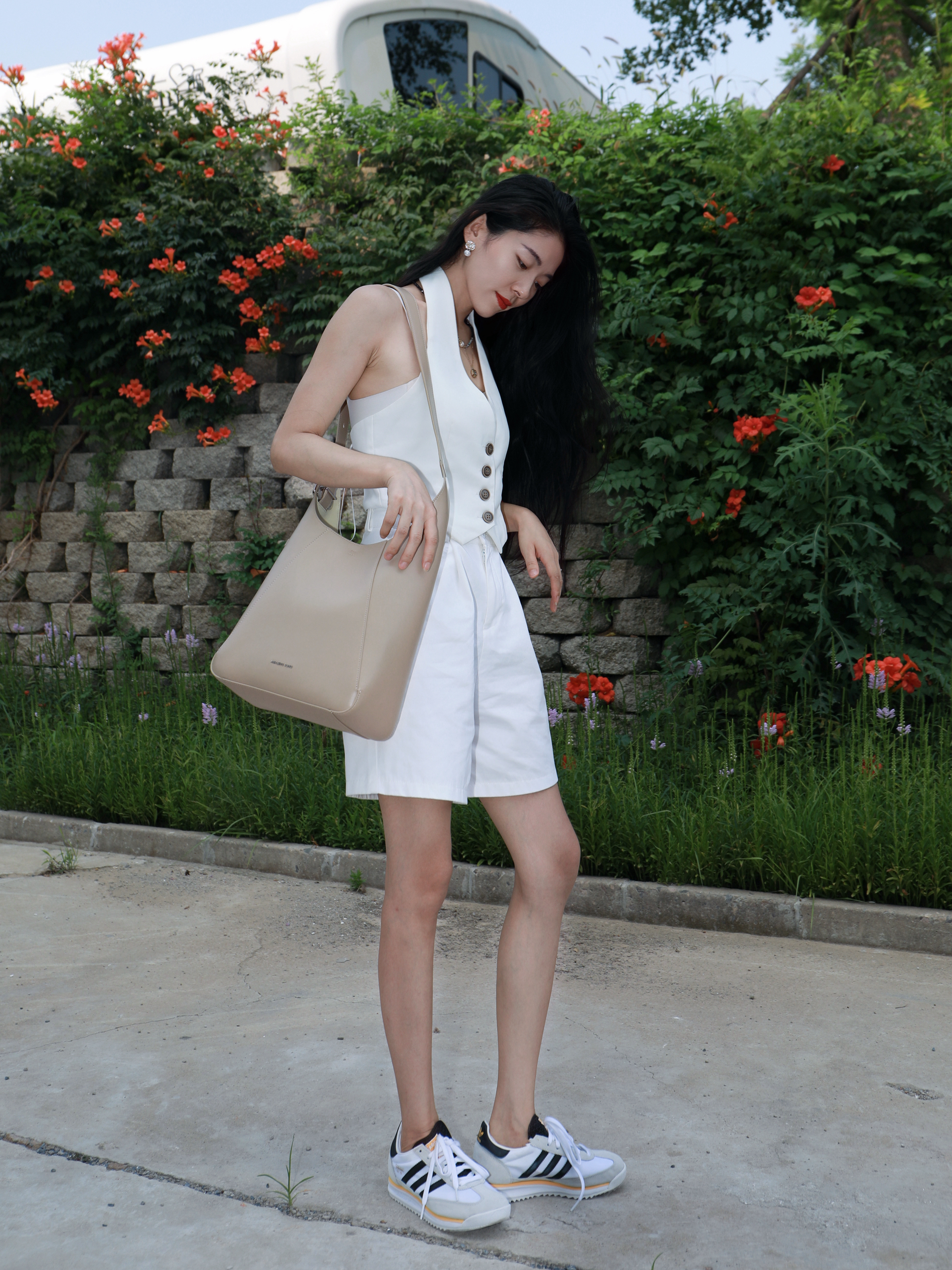 如果天气好的话~ 那就出门玩儿✌️ 来公园吸吸氧,招猫逗狗 看花看草看美女🥹 今天是甜中带辣的老钱女孩 简约白色吊带配白色短裤🩳 跨上质感棒极了的包💼 不用过多的搭配,这感觉就很好👍 Ps~包的质感有点棒🎊 通勤约会,或者逛街都适用 最近工作压力山大,每天被KPI追着跑 我也去追着山风跑一跑吧🥹 给自己一个漫无目的散步的下午🤓