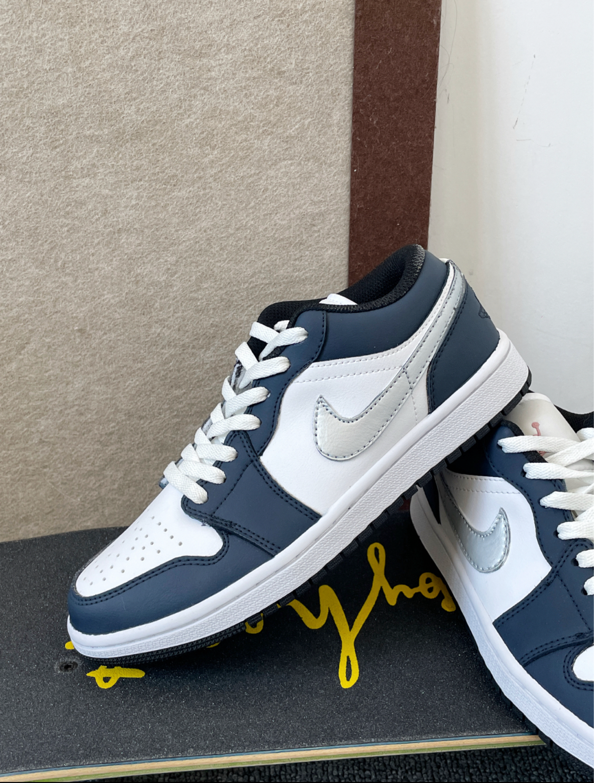 本篇笔记关联了Air Jordan 1 板鞋 运动休闲鞋 复古潮流支撑合成革 大童/灰色/蓝色/白色 等商品,为用户提供真实的使用体验和购买参考。