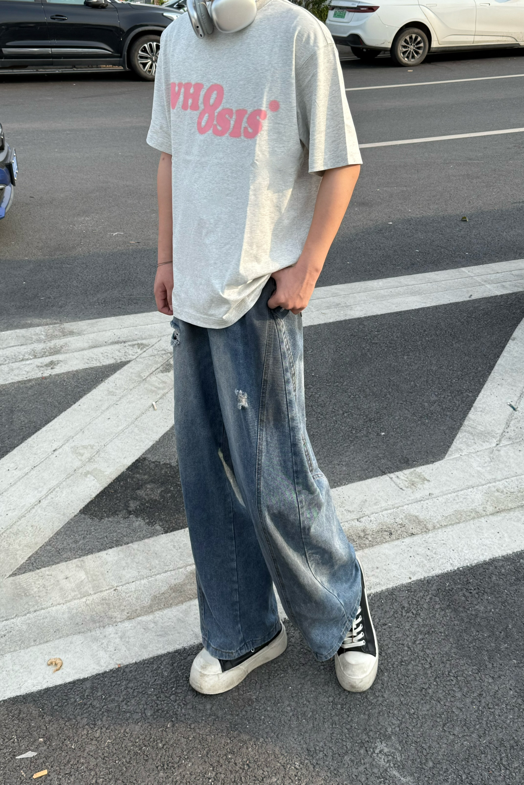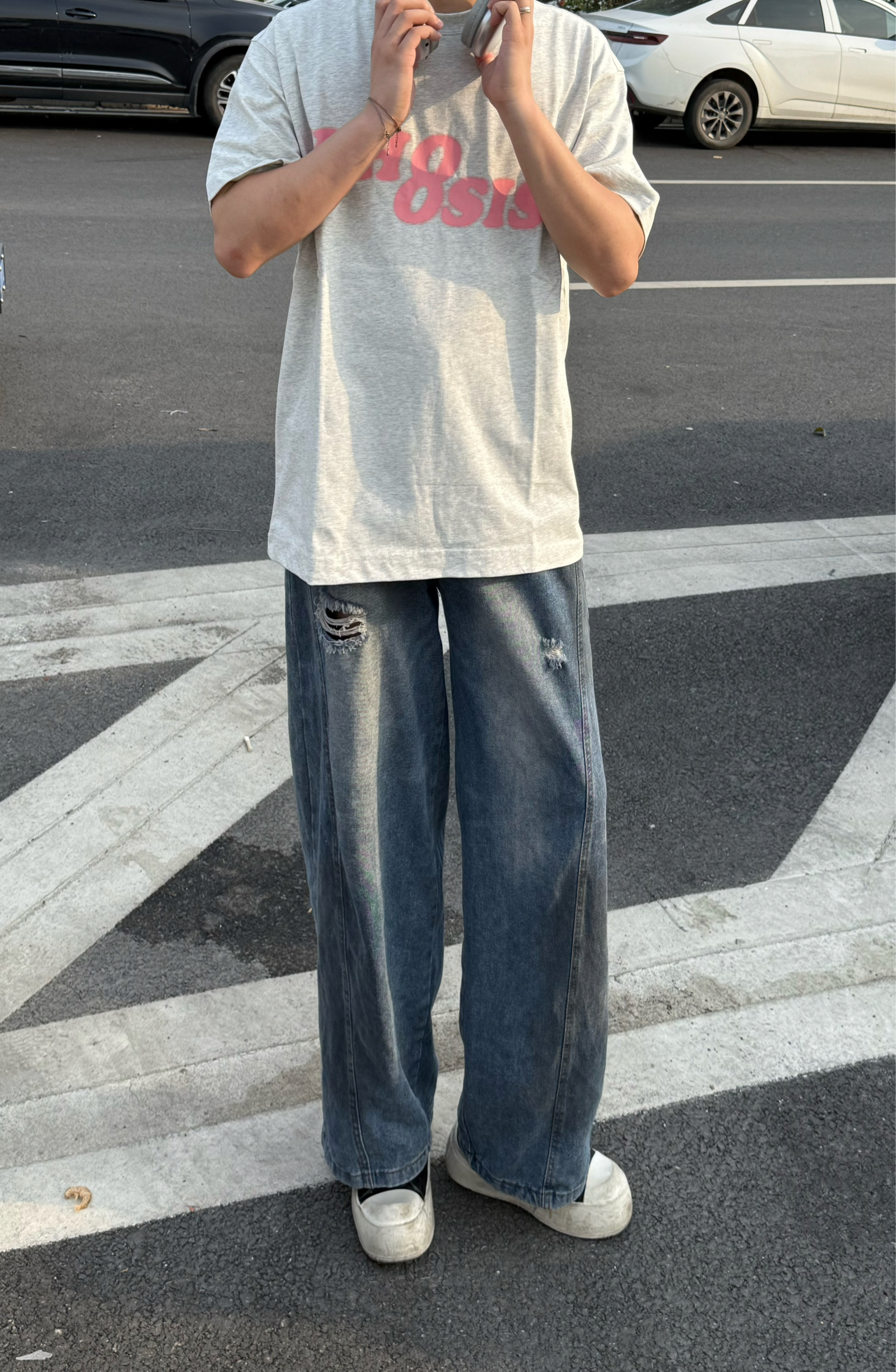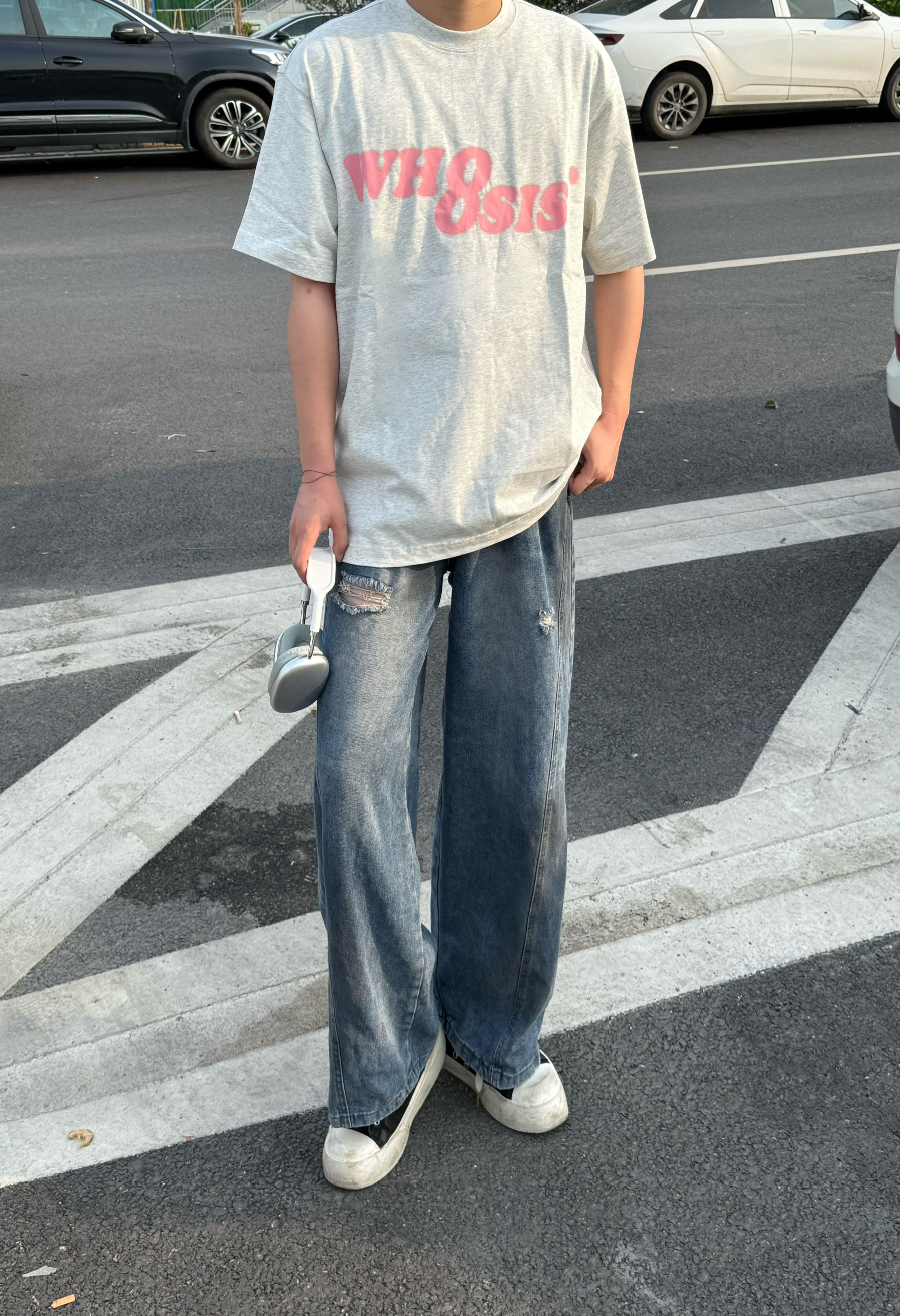 身高|体重:180/60 XL --- 👕 WHOOSIS 家这款新幻影卡通T恤真的超级舒适的一件简约款T恤衣服是比较宽松的类型上身很休闲而且透气比较好不会觉得闷简单得logo搭配让衣服整体看起来不会太过单调下身再搭配一件牛仔裤整体青春干净日常穿搭就很👌