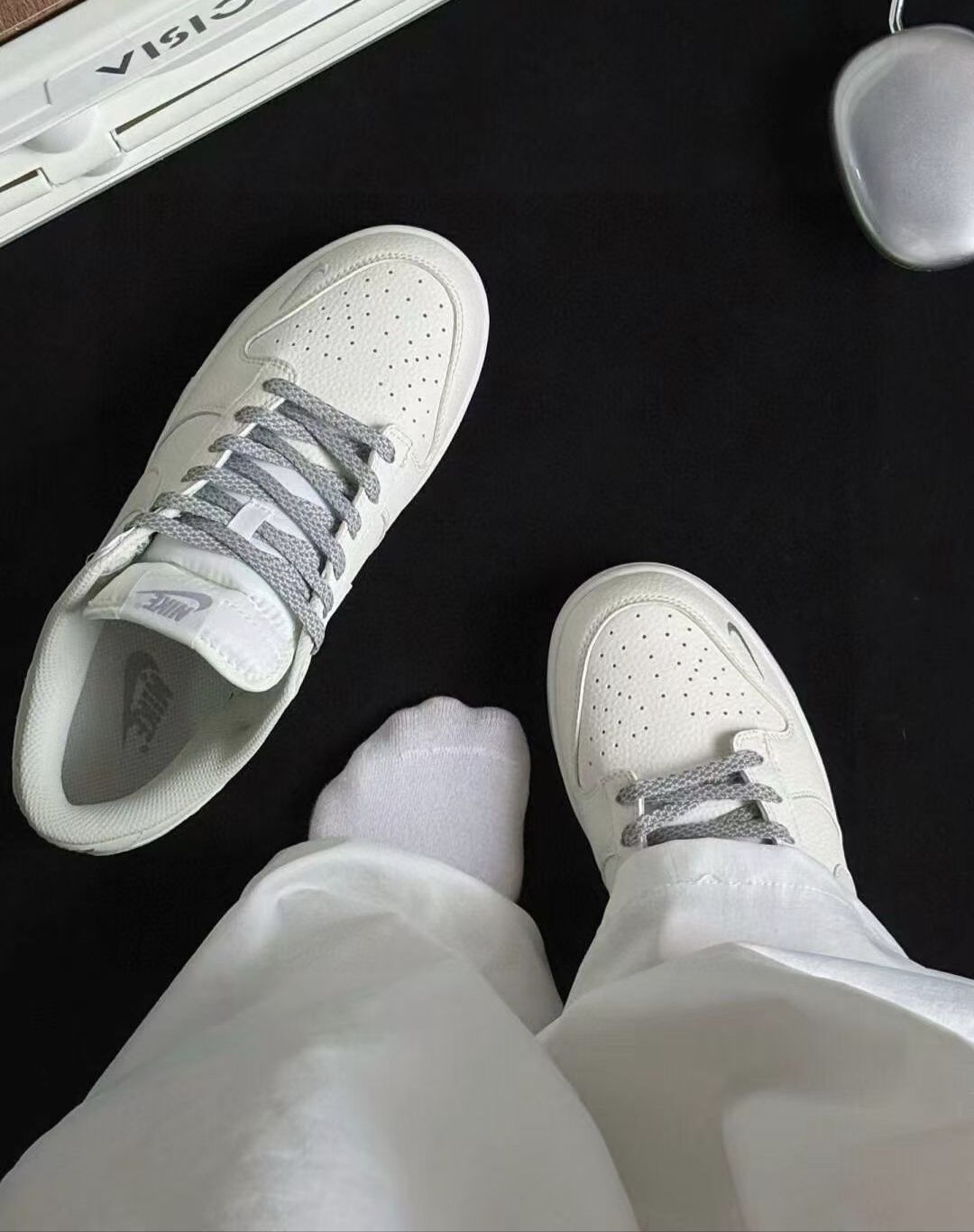 上脚小三勾Dunk的那一刻直接被勾住!奶白鞋身+三个错位钩子太会了,低调中藏着小心机,搭啥都有股“不经意的潮”~ 试过配直筒牛仔裤卷边露脚踝,钩子若隐若现超抓眼;换百褶裙+长袜学院风拉满,甜酷平衡得刚刚好;甚至搭运动裤都不违和,慵懒感拿捏了!鞋型超显脚小,暴走一天脚感在线,不像有的板鞋硬得像砖头😂 最绝的是它的“百搭容错率”——哪怕今天穿搭没灵感,套上它都能自动加分,朋友说我最近气质都变了...