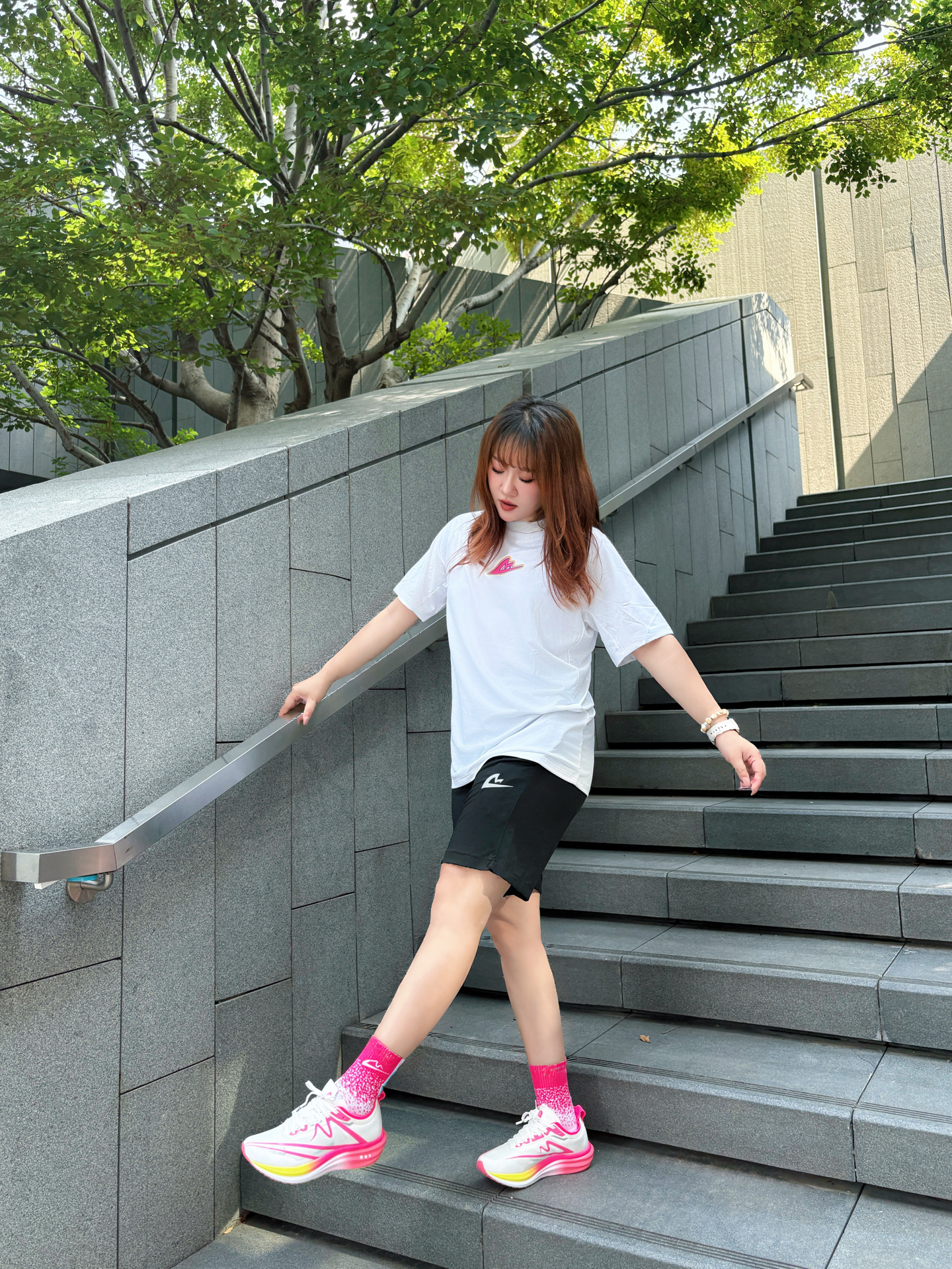 被追着问的跑步穿搭✨ 配色我hin爱~ 白T+黑速干短裤 经典不出错 蜜桃粉配色的鞋子直接把时尚感拉满💥 / 这双竞速跑鞋太绝! 碳板+全掌材料 减震防滑💯 跑步稳又轻快 日常穿也hin适合~ 液态大底 耐磨防滑 比橡胶底片要要加轻且耐磨 防滑性能也不错~ 全新猫爪碳板升级 更宽更厚 更抗扭! / 白、黑、蜜桃粉撞色 活力又时髦 运动or出街都能slay全场~ 随手一拍都是时尚大片感📷 轻松...