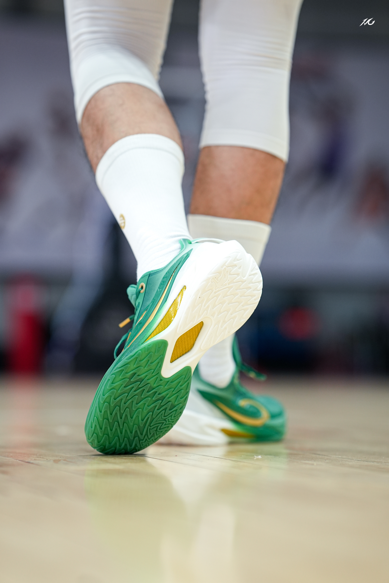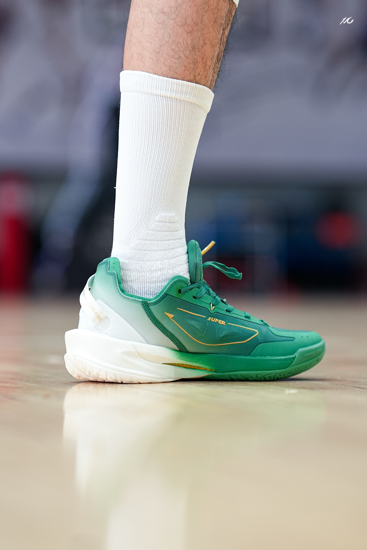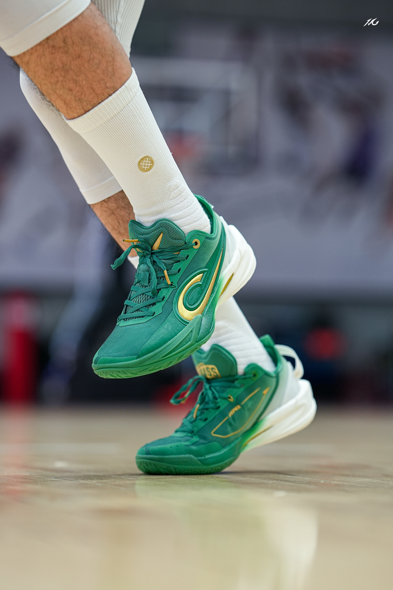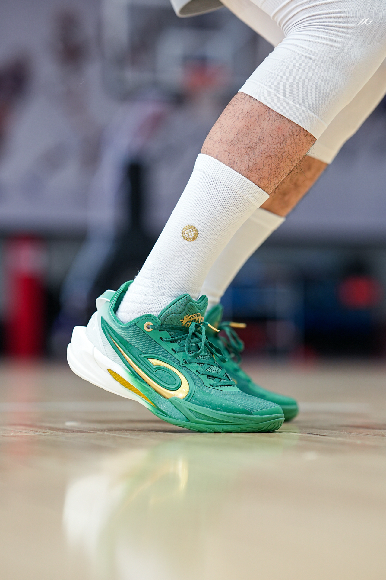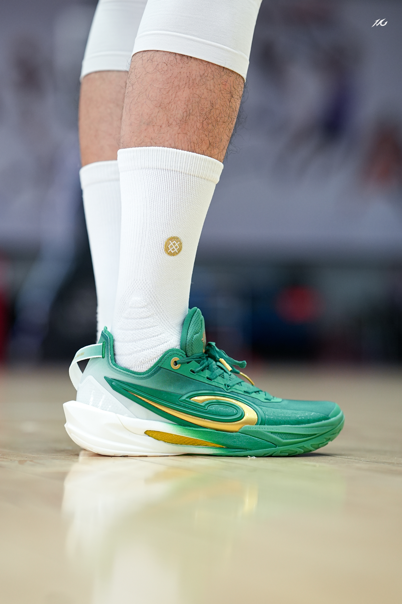 上脚一双锋刺RISE2和超级草根的联名! 绿色代表草根生长,金色代表奔袭的梦想! 值得一提的是我比较喜欢金色的碳版,质感很高级! 这个配色你们觉得好看么? #新鞋零时差 #2025年中球鞋大盘点 #锋刺rise2新品发布会现场直击