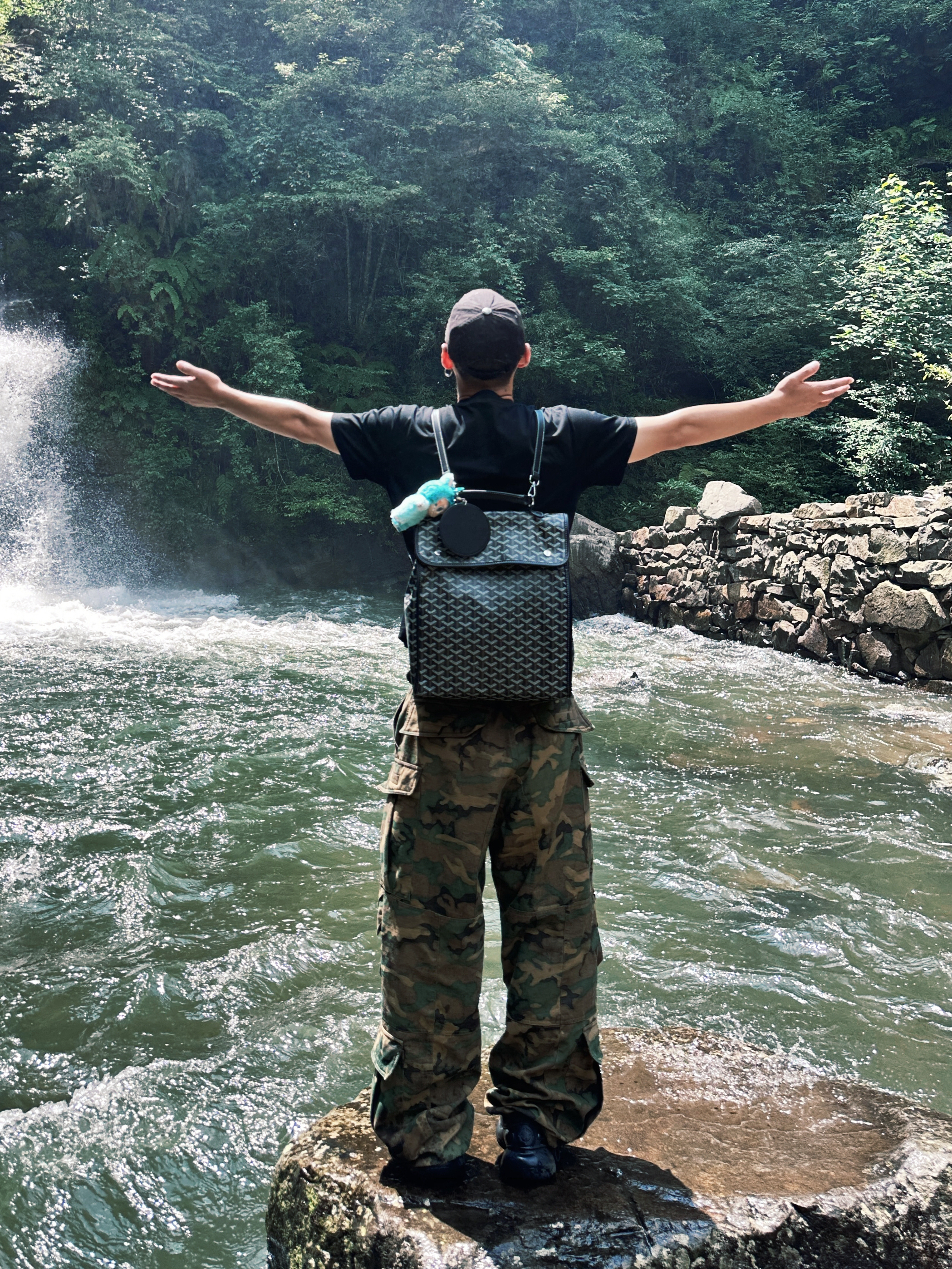 夏天就需要到山里去,凉快! 一件黑色短袖,迷彩长裤都不是问题! 有一说一,狗牙的这款双肩确实好背,潮流属性也是满满的! 你值得拥有!