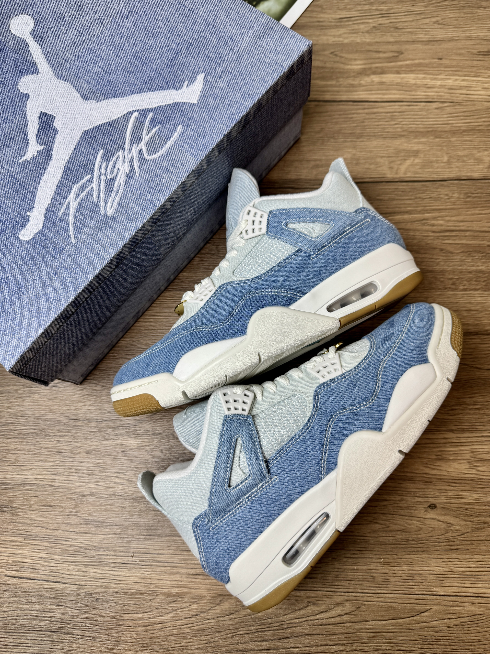🤔各位小伙伴,最近又被我发现一双高颜值的AJ4鞋款,那就是这款酷似李维斯与AJ4联名的AJ4 TEX“Worn Blue”牛仔蓝配色! 🤨首先,水洗单宁深浅拼色自带复古滤镜,牛仔裤脏旧感意外高级,金色鞋带扣和缝线细节一加,质感拉满。日常随便套条阔腿裤或工装裤都出片,夏天清爽短裤也可以,秋冬可以搭配复古风格,妥妥万能鞋型! 😍另外,鞋面换成双层牛仔布,侧边网眼改成缝线设计,比传统AJ4皮面透气不少,...