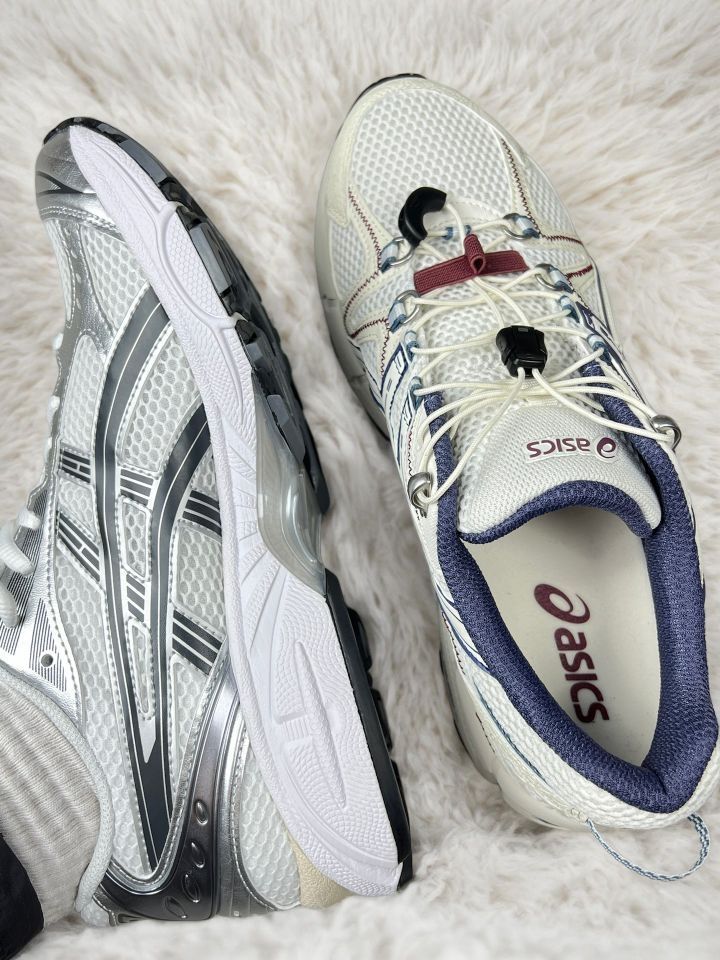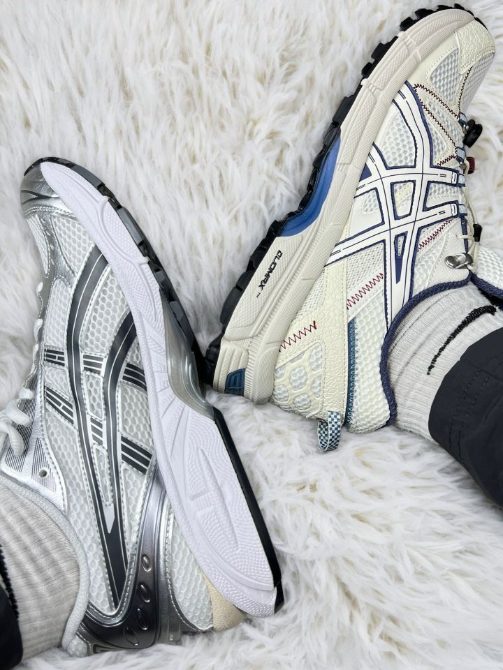 这两双亚瑟士跑鞋是我的宝藏装备!左边银白配色简约利落,右边蓝白交织复古感拉满。网面材质透气,长时间跑步也不闷脚。gel 科技缓震超赞,每次踏上跑道,都像踩在云朵上,助力我轻松迈开步伐,不管慢跑还是快走,它们都稳稳陪伴,是运动路上超靠谱的伙伴~