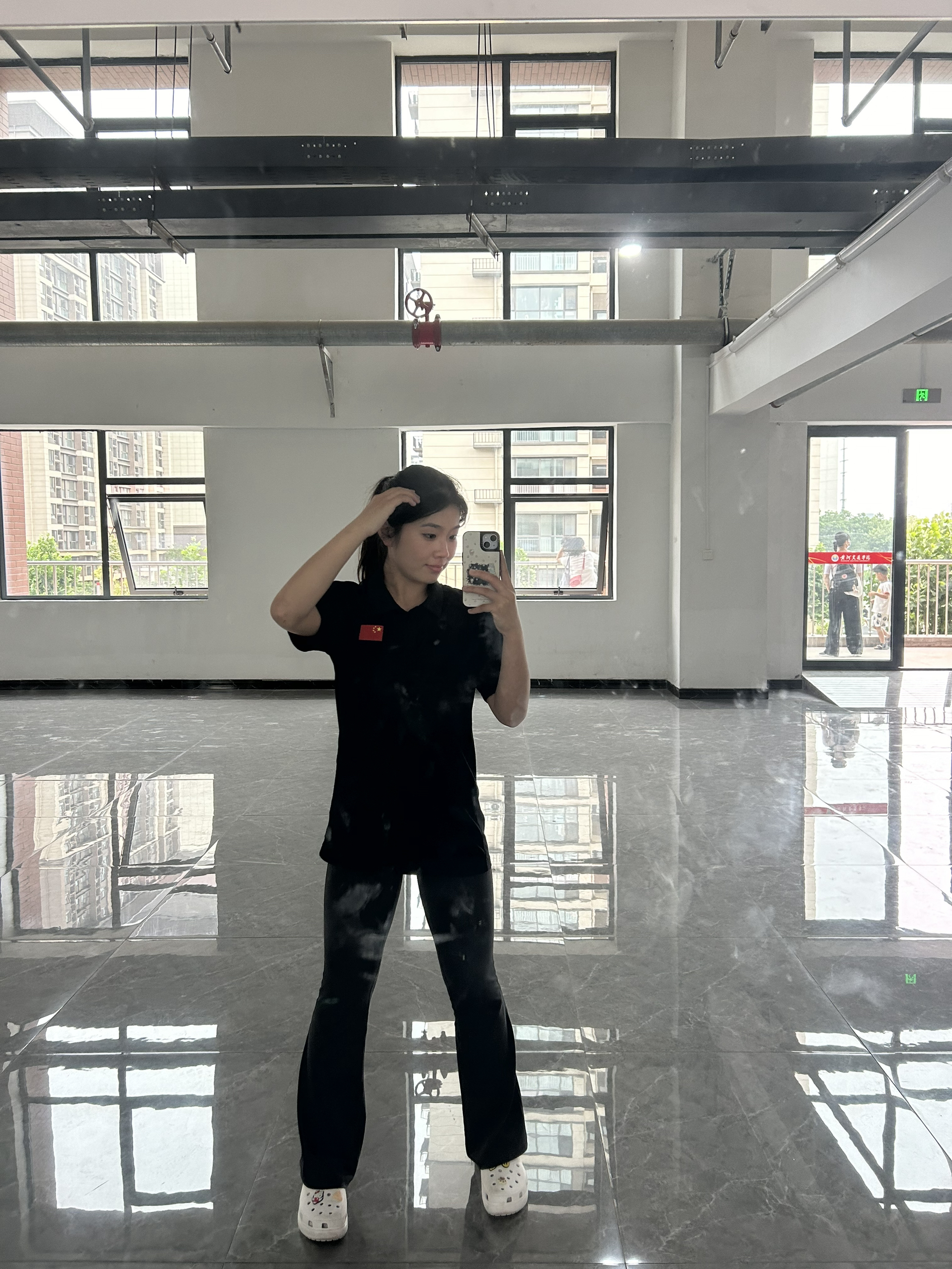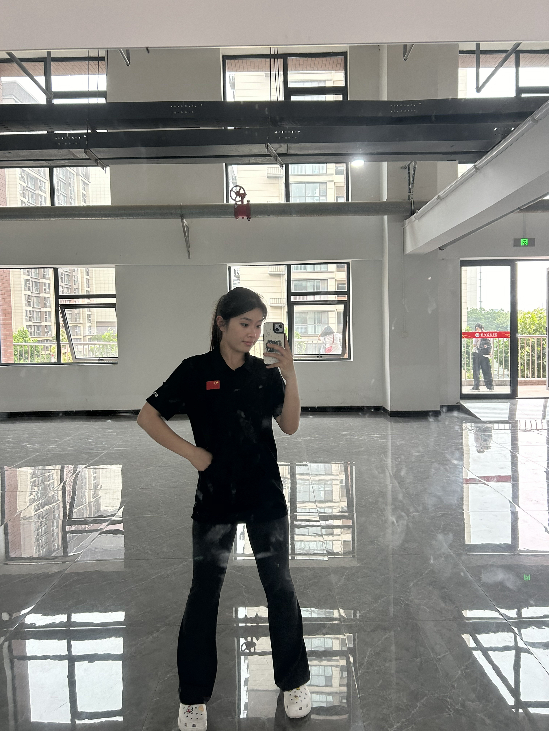 今天分享一身超有精气神的look✨ 上衣选了带🇨🇳 小国旗的黑色polo衫,简约又自带气场,运动时穿很利落,日常出街配个项链也能秒变街头酷girl~ 下装搭黑色微喇裤,修饰腿型一绝,走路带风的感觉谁懂!把裤脚微微盖住鞋子,视觉上拉长腿部线条,小个子也能穿出大长腿既视感🦵 鞋子穿的是洞洞鞋,看似随意实则暗藏小心机,运动完换它超方便,透气又百搭,踩上去像踩在云朵上☁️ 运动or日常穿都很适配,...