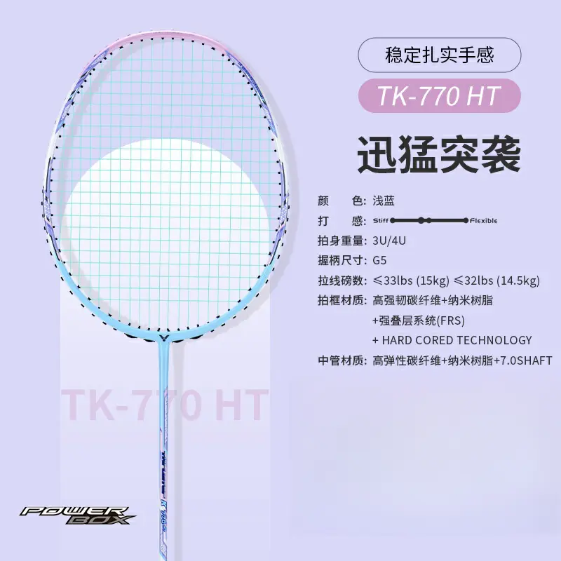本篇笔记关联了VICTOR/威克多 突击系列 TK-770HT 战魂 进攻型 进阶级 杆硬 拍头重 耐打 全碳素 羽毛球拍 萱草紫等商品,为用户提供真实的使用体验和购买参考。