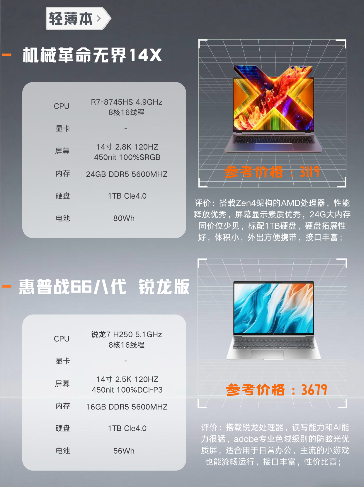 本篇笔记关联了HP/惠普 星Book Pro14 酷睿版 2024款 14英寸 笔记本 高刷屏 学习 高性能 纤薄精巧 超轻薄 强劲续航 银色、HP/惠普 战66 七代 锐龙版 2024款 14英寸 笔记本 长续航 高清屏 高性能 银色、MECHREVO/机械革命 无界15X 锐龙版 2024款 15.3英寸 笔记本 高色域 轻薄 高性能 高刷 灰色等商品,为用户提供真实的使用体验和购买参考。