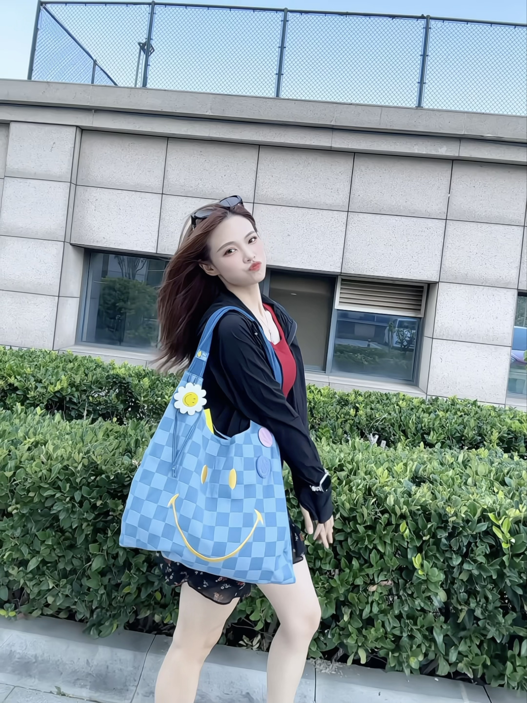 这个夏天🌿被LEE的这个棋盘格牛仔蓝包包治愈了! 蓝色系自带清凉滤镜🧊,搭配棋盘格帆布牛仔,再加上可可爱爱的笑脸配件,把慵懒氛围拉满~ 大容量托特包型通勤逛街都很🉑! 装得下遮阳伞+防晒衣+冰美式,肩带加宽这个设计好加分啊! 随意搭白T/碎花裙都像自带海风感🌊,分分钟出片📸!