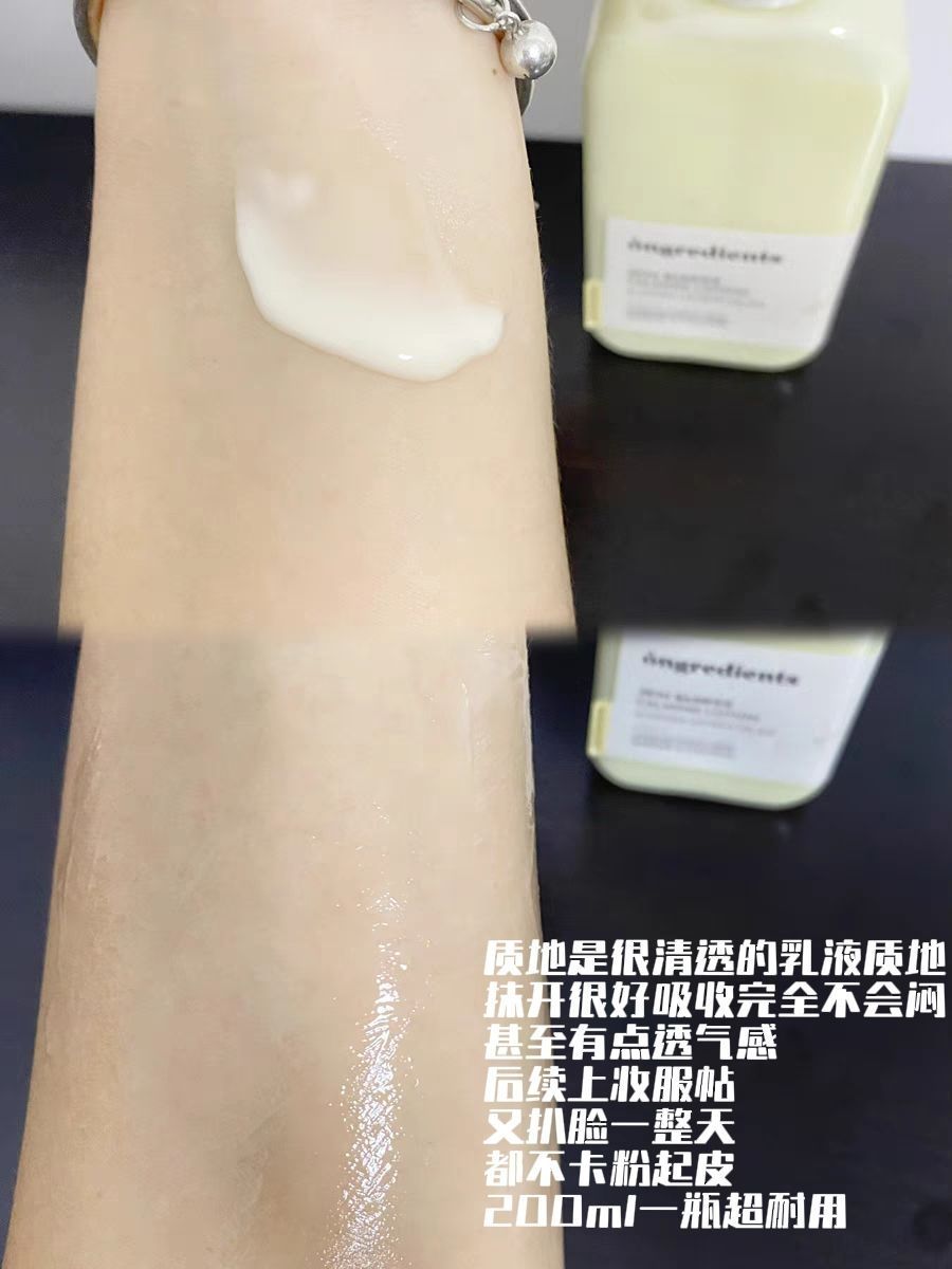 质地是很清透的乳液质地抹开很好吸收完全不会闷甚至有点透气感后续上妆服帖又扒脸一整天都不卡粉起皮200ml一瓶超耐用 这款乳液太惊艳了!质地像融化的冰淇淋,一抹就化开,清爽不闷痘。吸收快得惊人,涂完皮肤摸起来软软嫩嫩,一点不黏枕头。保湿力超在线,秋冬用一整天脸都润润的,换季泛红也悄悄压下去了。成分温和,敏感肌用着超安心,性价比绝了,空瓶立马回购!