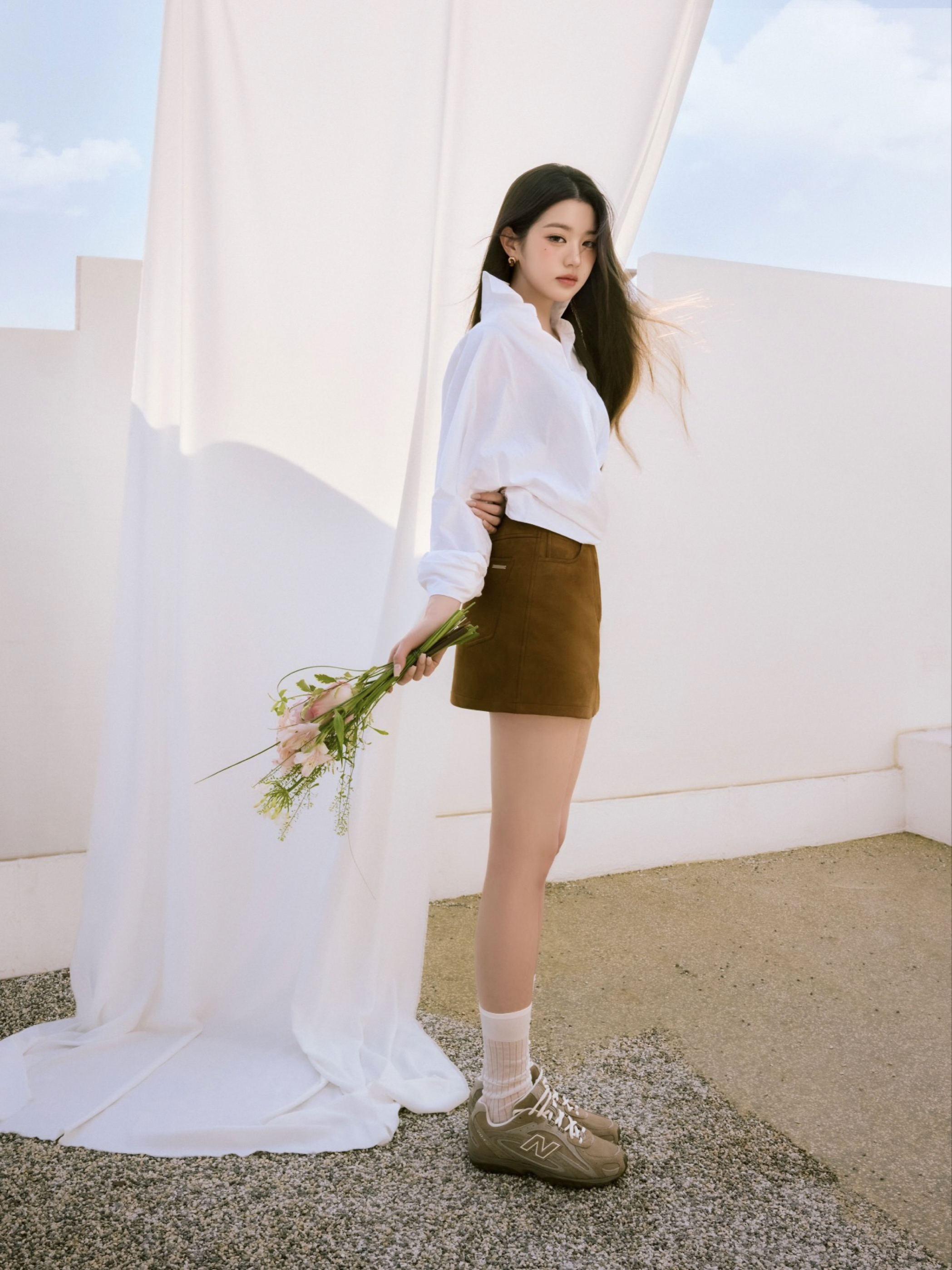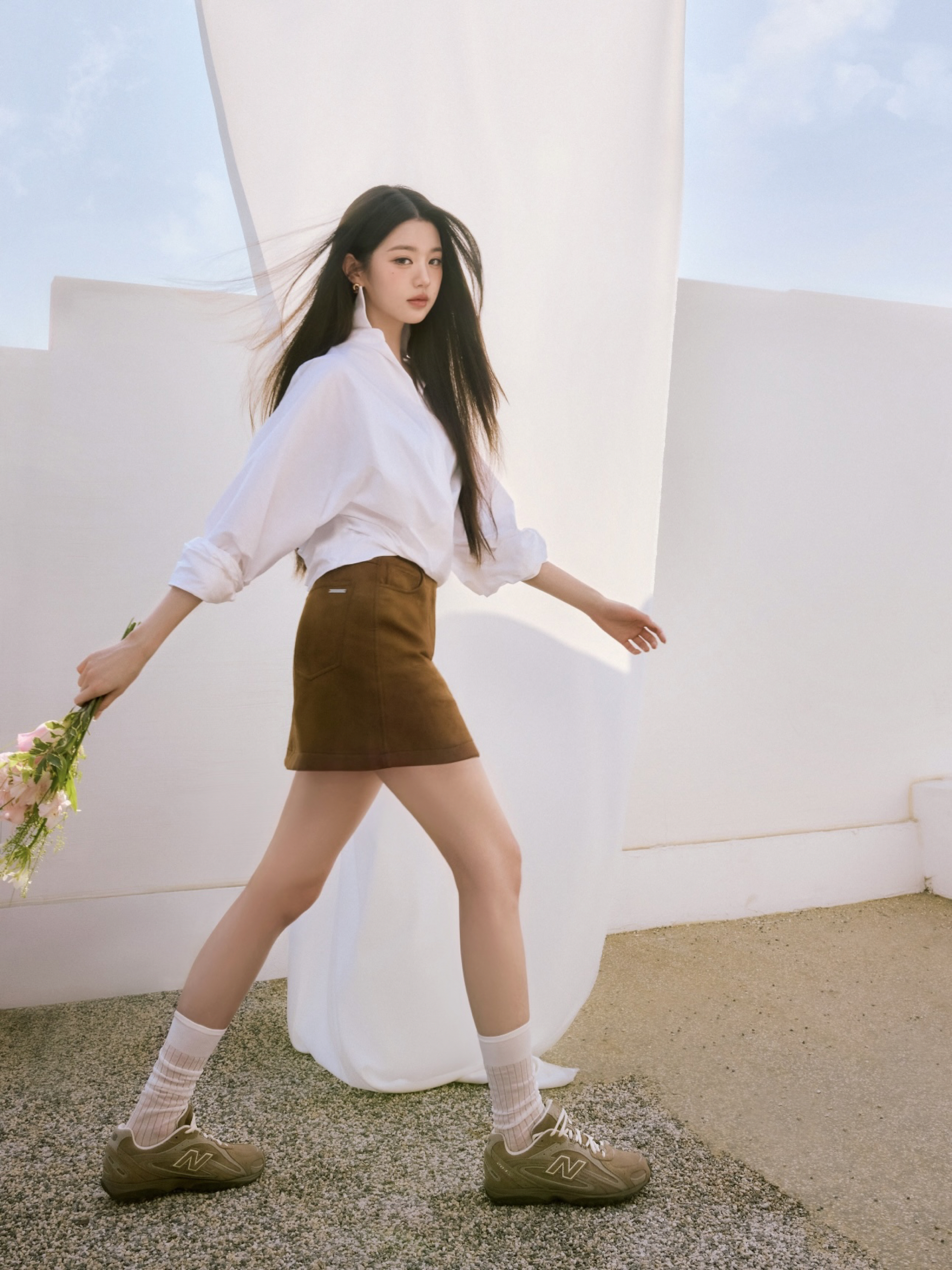 颜值即正义✨元英妹妹的穿搭一直都很绝! 浅灰色的鞋身,搭配经典的“N”字logo,简约又不失复古感 这种低调又高级的配色,真的是百搭神器 无论是搭配短裙👗 ,露出纤细的脚踝,还是配上休闲的运动裤、牛仔裤👖,都能轻松拿捏时尚感,出街回头率直接拉满!