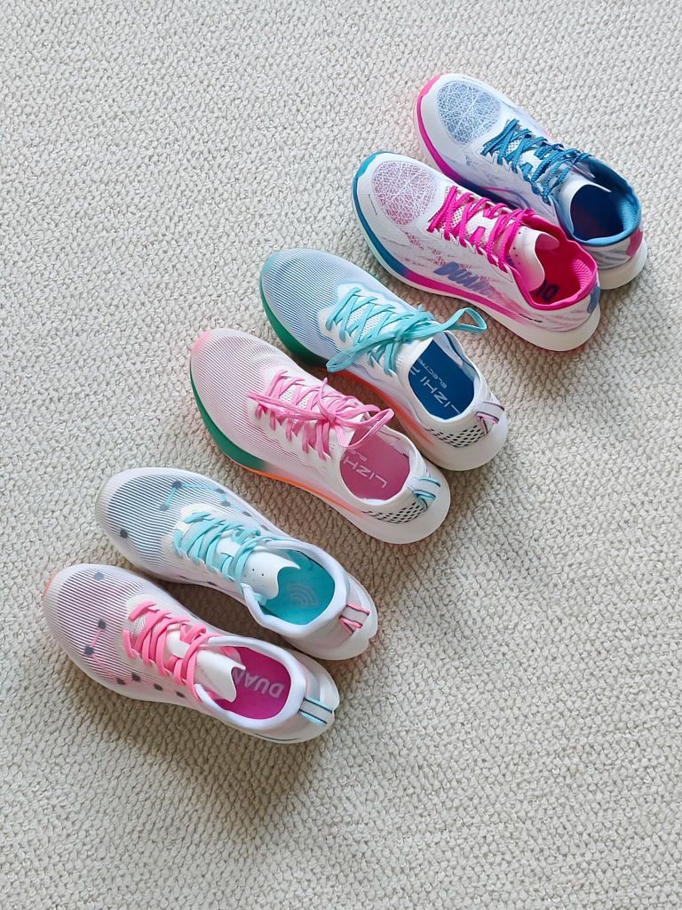 介个配色滴跑鞋👟我尊嘟拒绝不了 夏日多巴胺👧🏻妥妥的~ 颜色😍和夏天适配敲高 鞋底挺软哒 穿起来舒服的嘞😆 不会磨脚🦶 尺码标准 鞋舌也不会太歪 穿上好康
