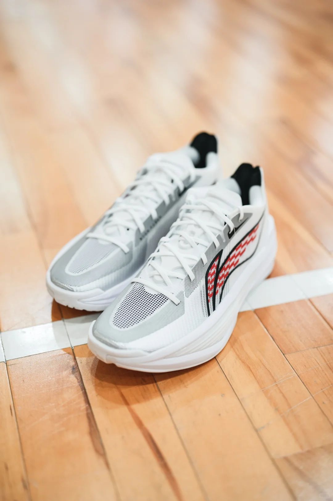 灰白基调简约大气,侧边红黑格纹元素瞬间点亮视觉,时尚感拉满。透气网面设计,让双脚告别闷热 ,在球场上尽情挥洒汗水。出色的缓震和支撑性能,助力每一次起跳、急停与变向,无论是实战对抗还是日常穿搭,都能轻松驾驭,绝对是篮球爱好者不可错过的宝藏球鞋! #篮球鞋推荐 #实战球鞋 #时尚运动风