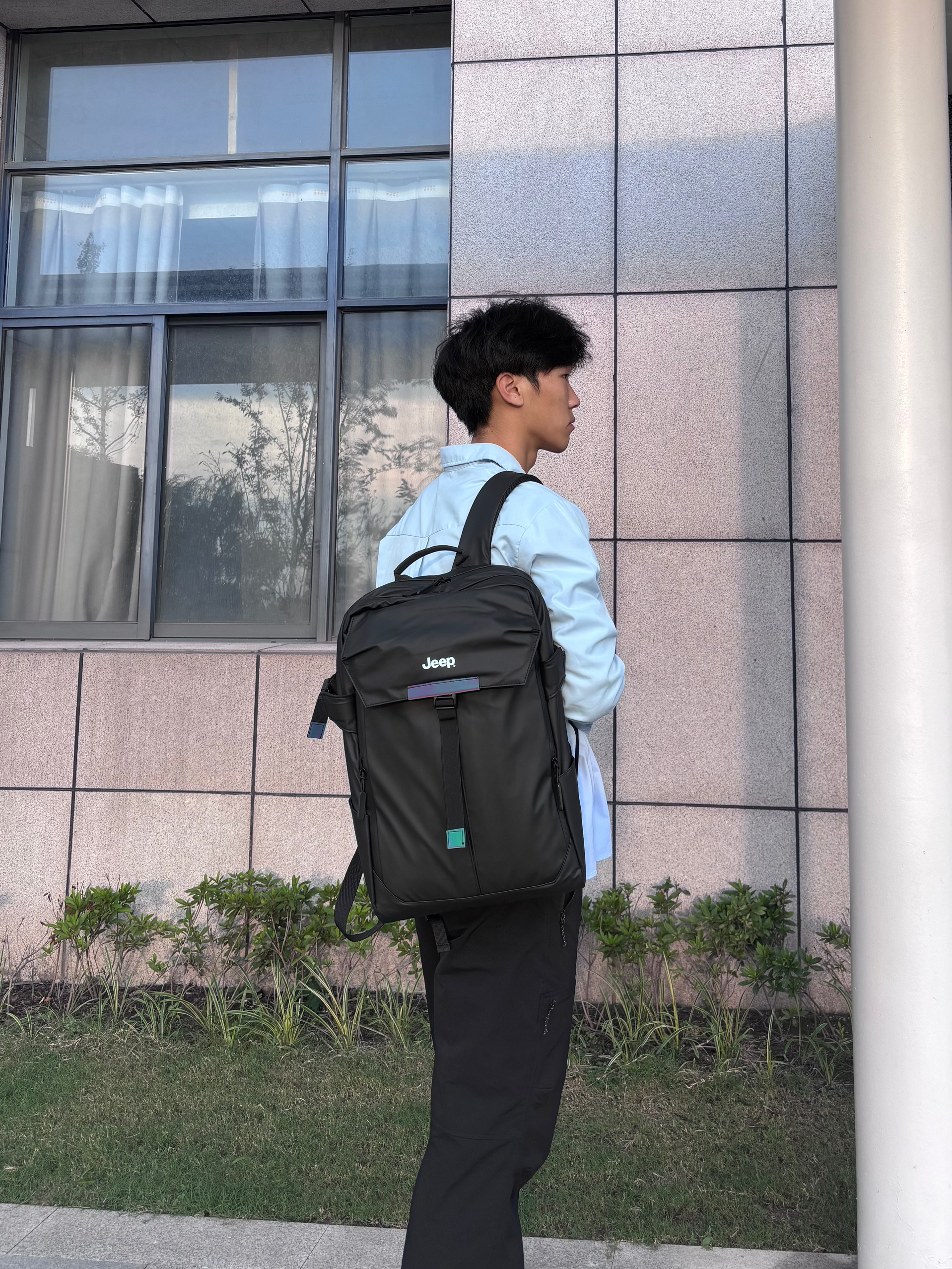 快开学了,发愁买谁家的书包 于是下单了 Jeep 家的电脑包 又能装又帅,背包整体是pu皮质,防水和颜值共存 背去上课、上班、户外都不违和 背带设计合理 清洗上也很方便 日常通勤、学生党、户外玩家都能冲 实用性拉满又不土气
