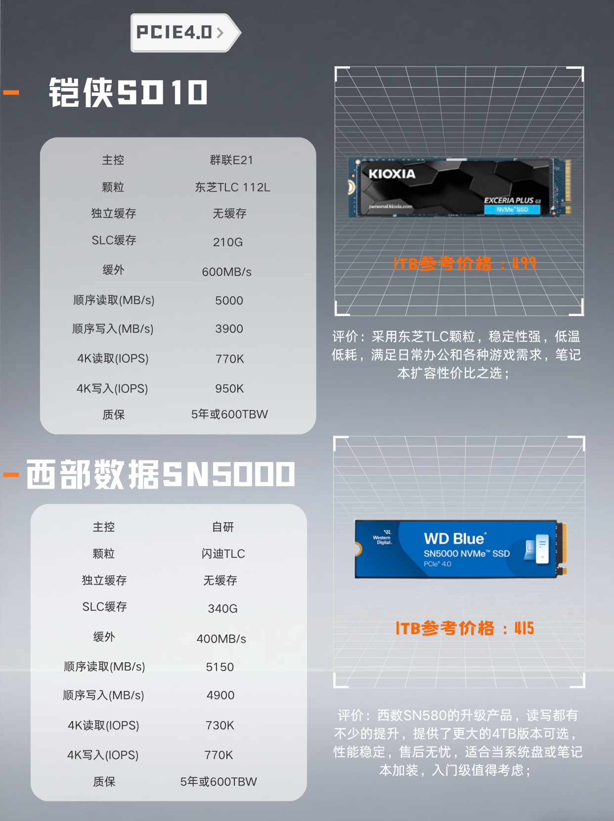 8月几款5.0固态大降价最低5开头就能拿下!5.0固态硬盘的时代要来了🔥,固态硬盘4.0和5.0怎么选呢?整理了几款性价比高的固态,大家按照预算和需求入手~ ✅PCIe 4.0 1️⃣铠侠SD10 稳定性强,低温低耗,满足日常办公和各种游戏需求,笔记本扩容性价比之选; 2️⃣西部数据SN5000 性能稳定,售后无忧,适合当系统盘或笔记本加装,入门级值得考虑; 3️⃣雷克沙战神 国产高速固态性...