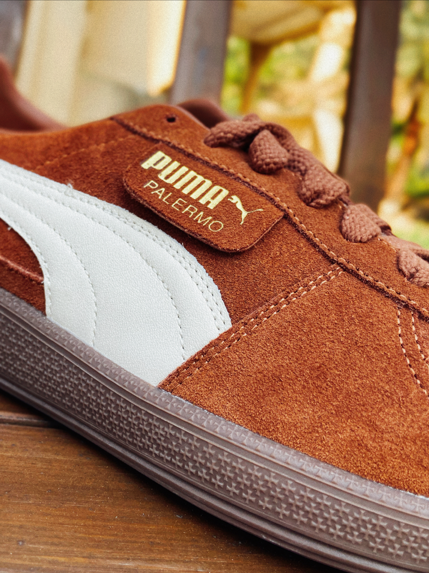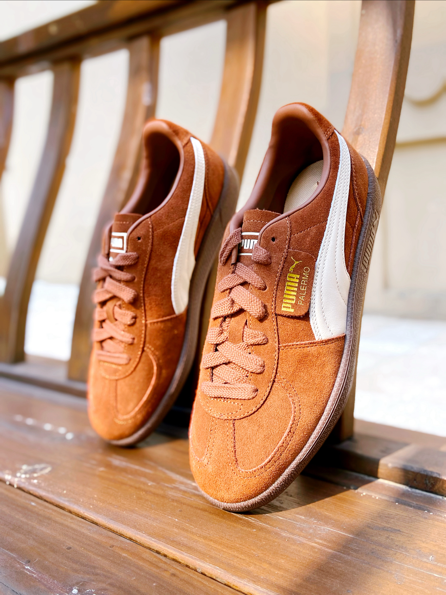 转眼就立秋了 🍂 要说入秋鞋柜里必不可少的鞋子 那一定得是美拉德板鞋了 ~ #PUMA 的这双 Palermo 我是一眼心动 通体棕色的鞋面加白色跑道 logo 点缀 再搭配麂皮+皮革拼接的材质 复古氛围满满的同时 质感也很棒 上脚有着不错的脚感 棕色日常来说也很好搭配 通勤、休闲穿搭,这双都是蛮不错的选择! 你的入秋鞋子是什么呢? #长期主义鞋子 #今日分享一双puma #彪马宝藏...