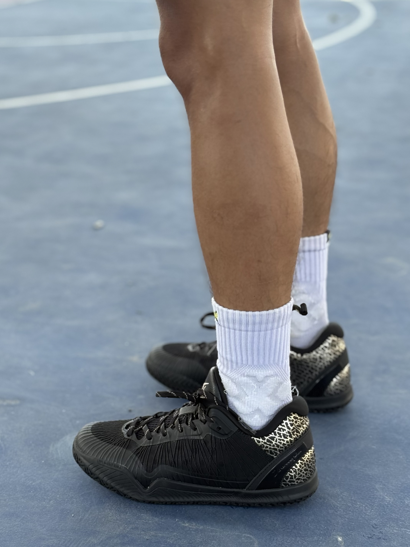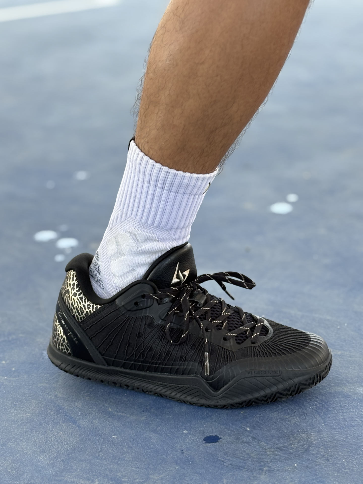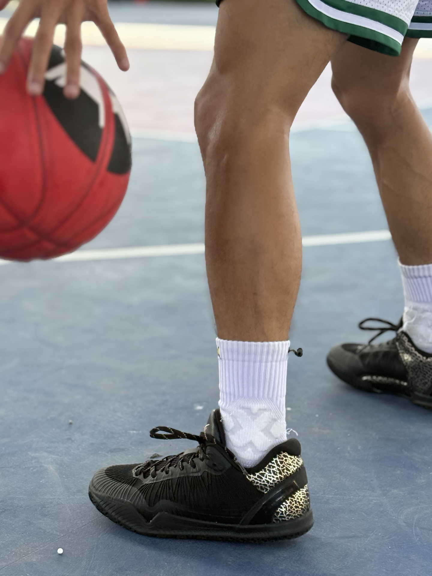 今天给大家上脚这双 #石一童 二代黑金豹配色 鞋身黑色➕上后跟豹纹设计,设计感十足,整体的鞋型鞋楦做得比以前好很多啦! 前后掌气垫带来的脚感,我觉得穿起来还是比较明显的,性价比蛮高的! #石一童黑金豹 #石一童二代 #石一童旗舰店 #实战篮球鞋上脚 #来晒晒你的石一童二代