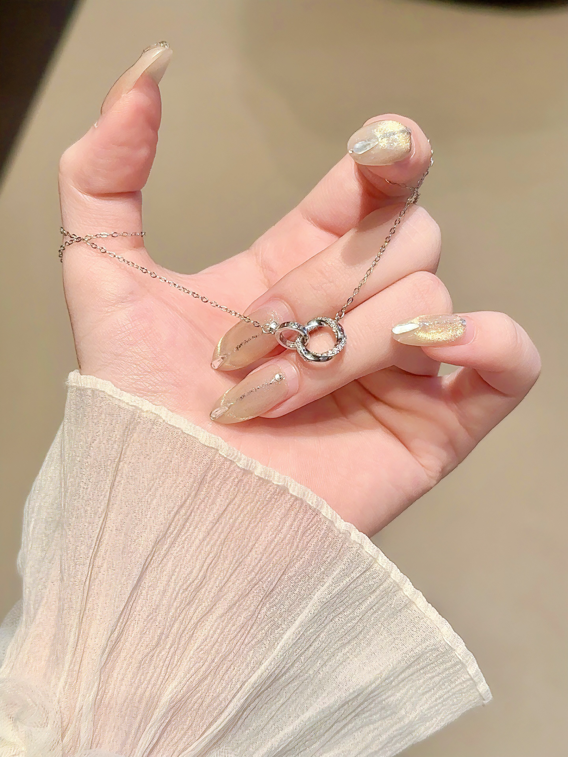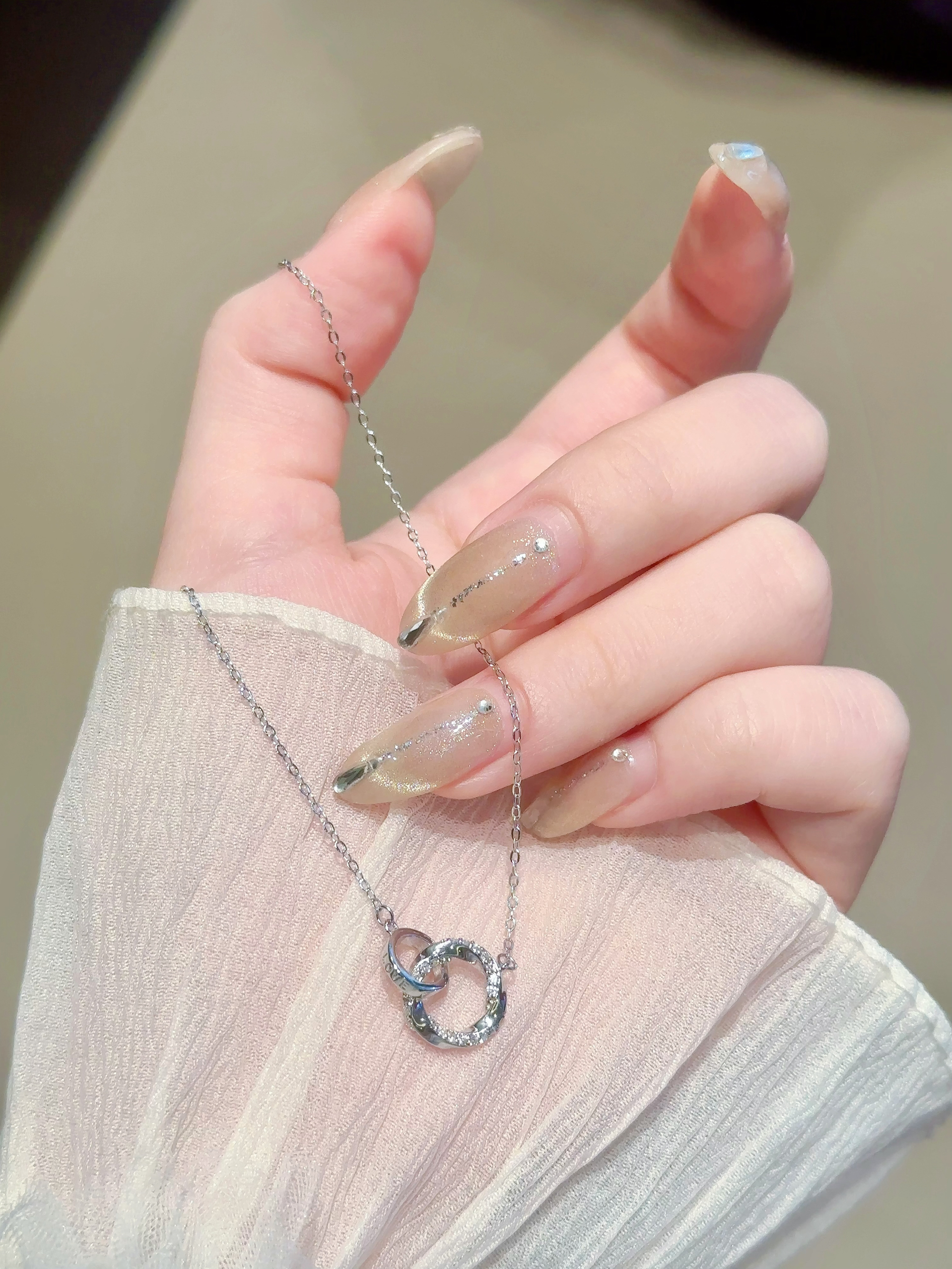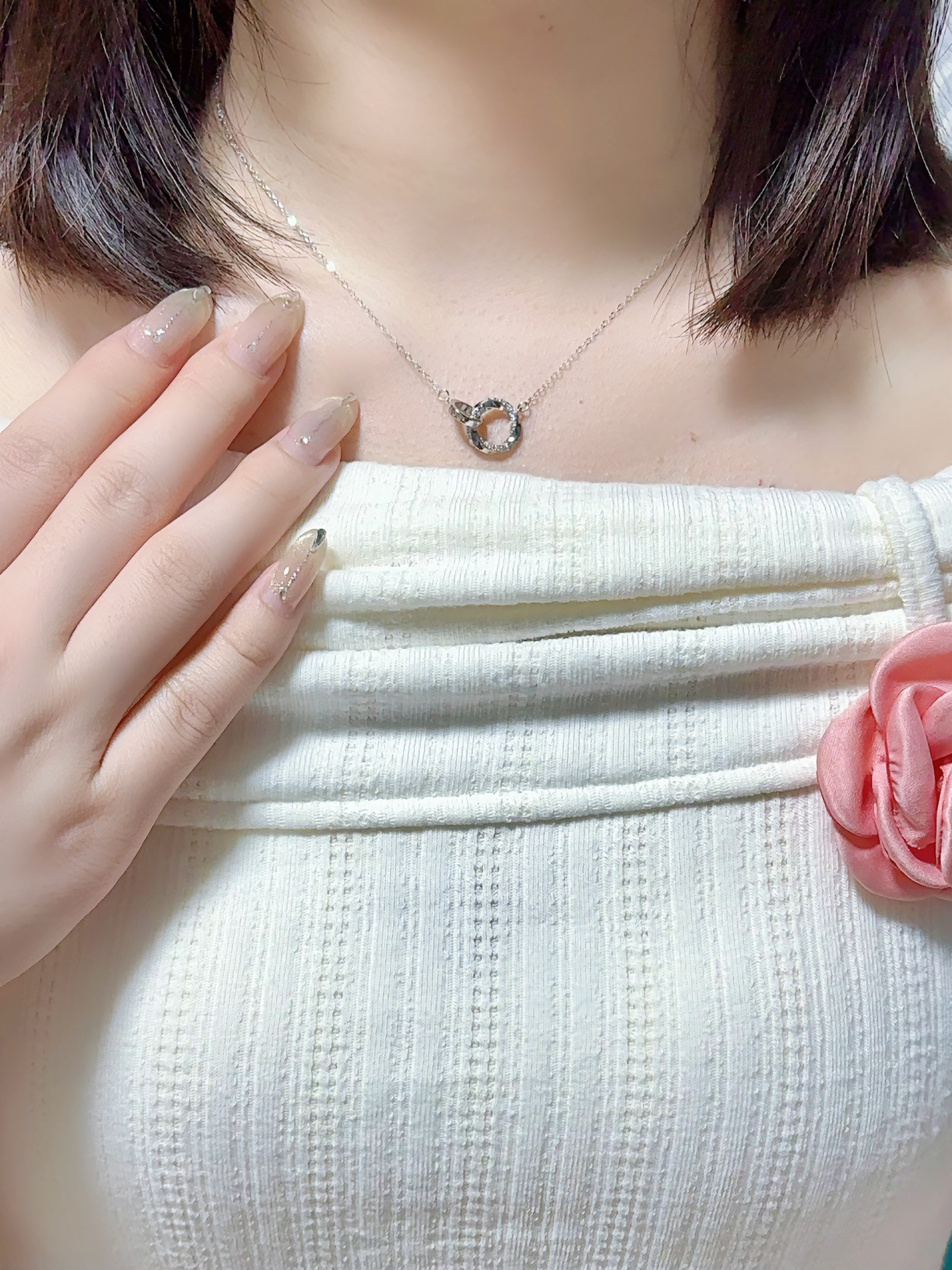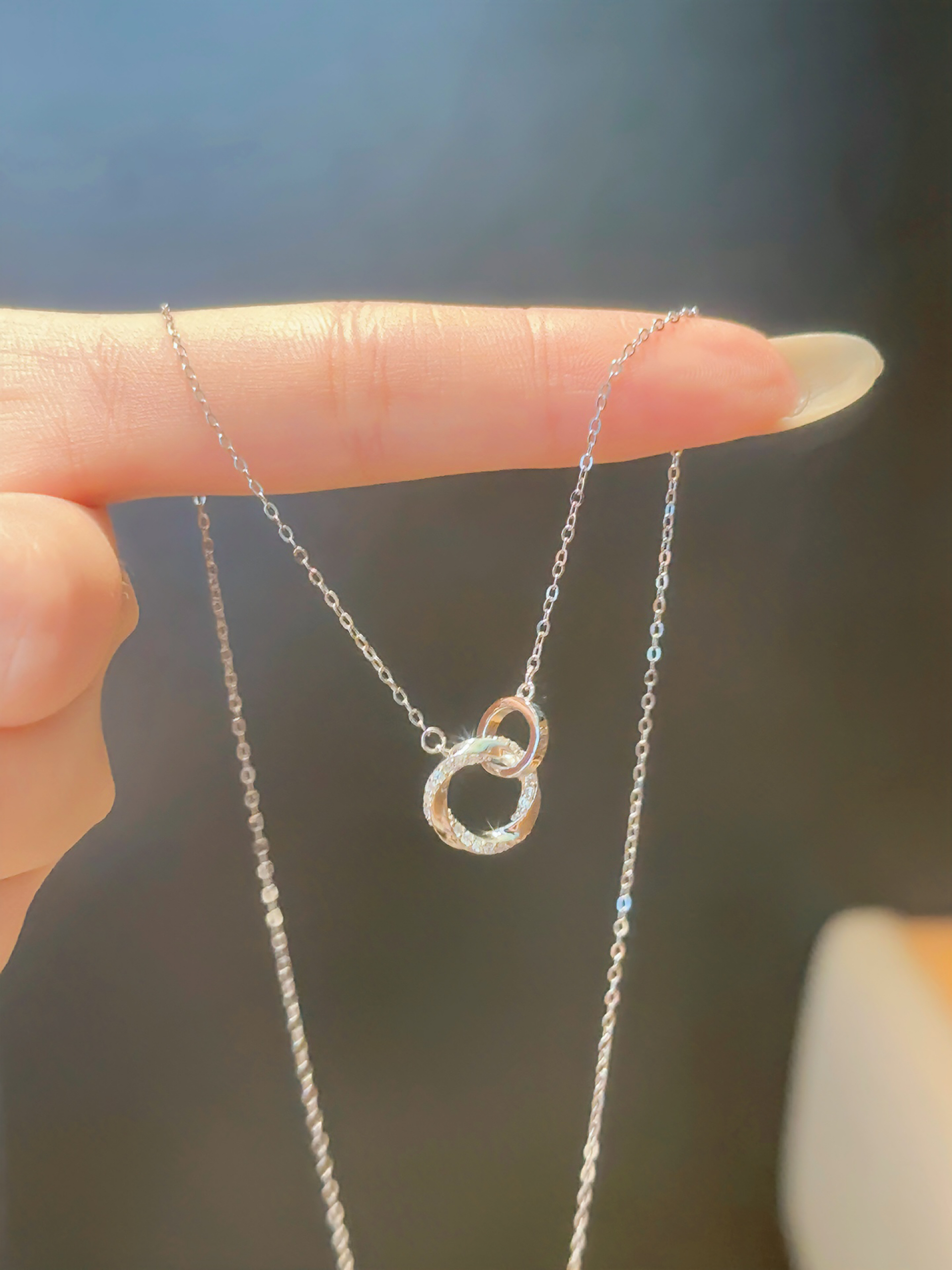 甜甜的项链我先戴为敬啦 介个莫比乌斯环设计吼独特耶 环环相扣我们俩的心❤️~ 实物敲精致的 S925纯银的质感hin好🤍 七夕送礼这恋爱仪式感不就来了嘛🎁